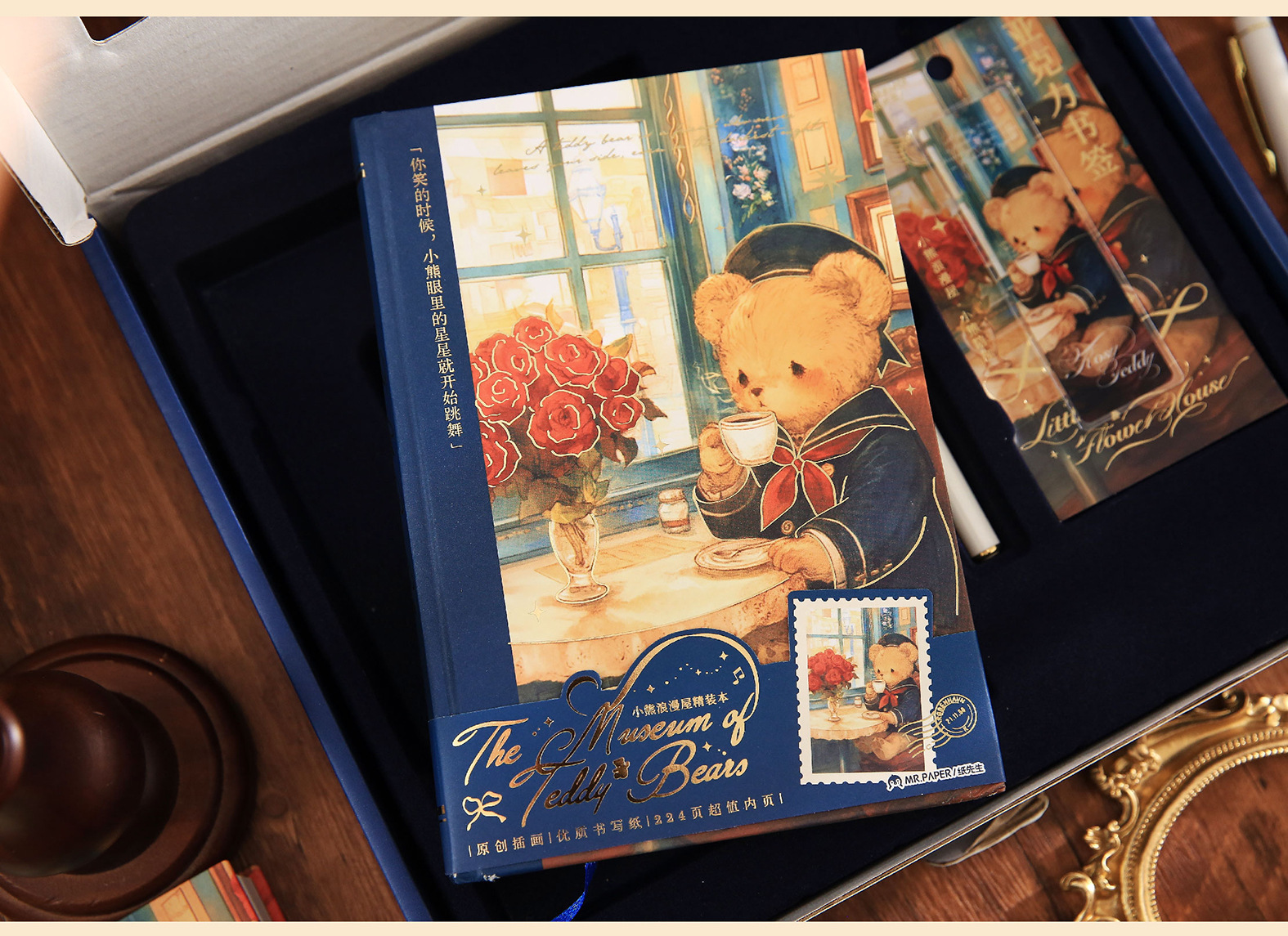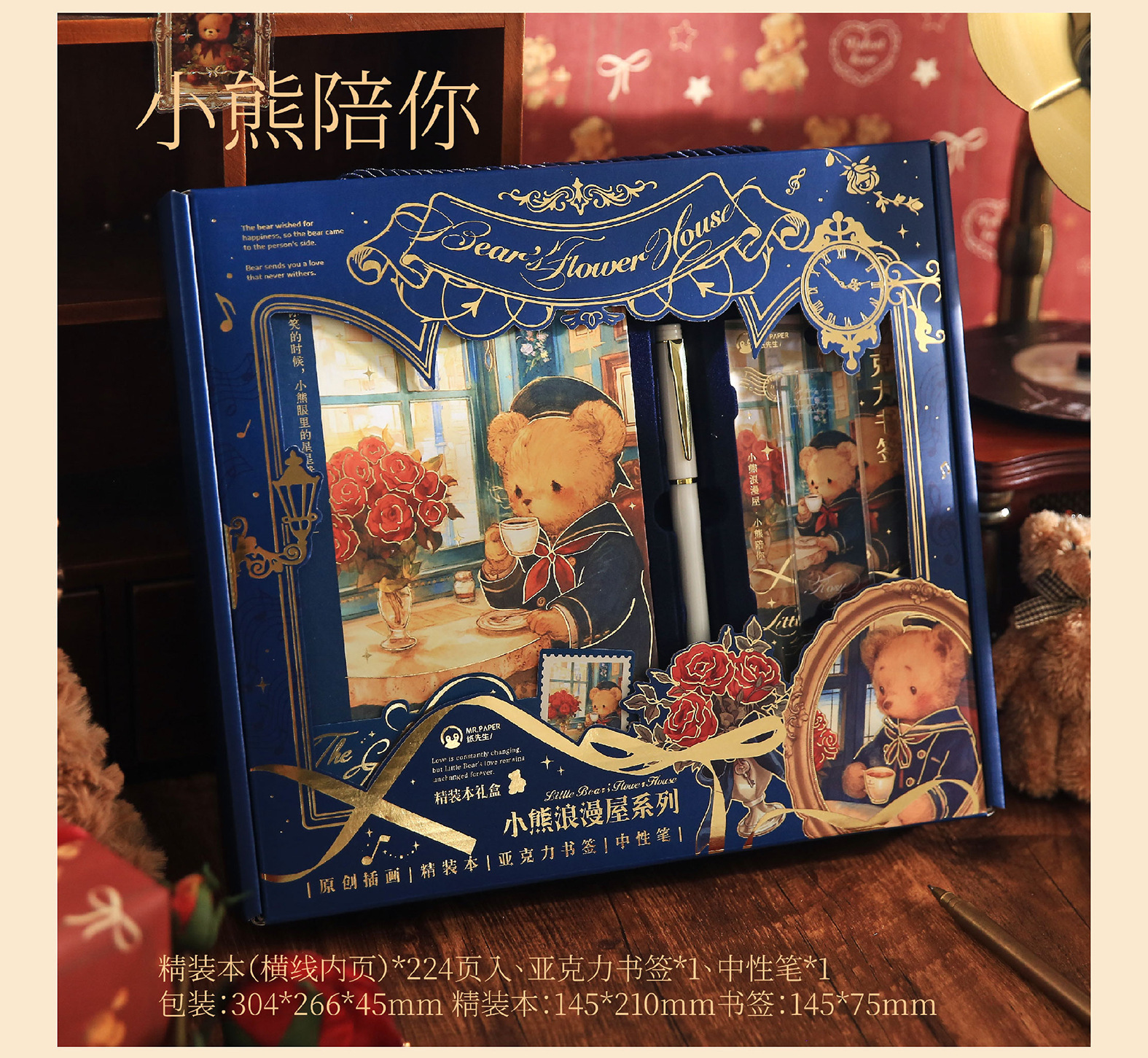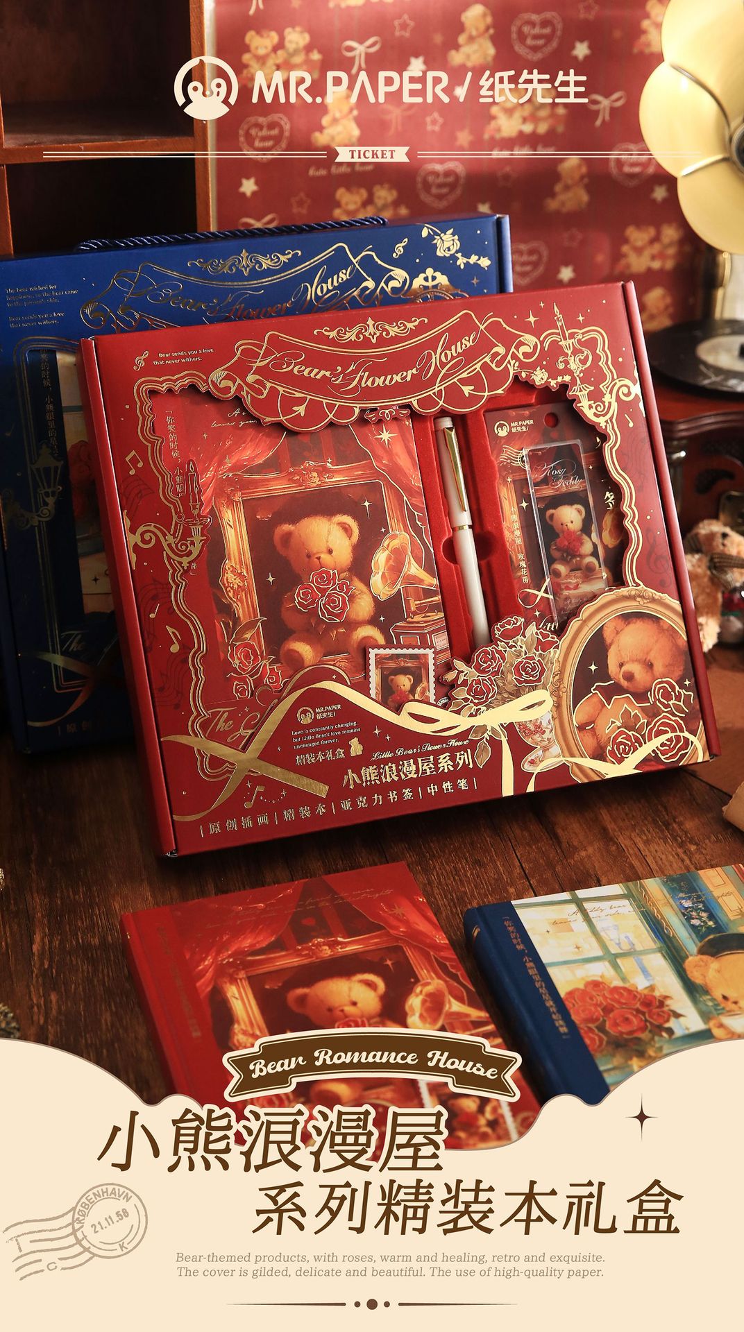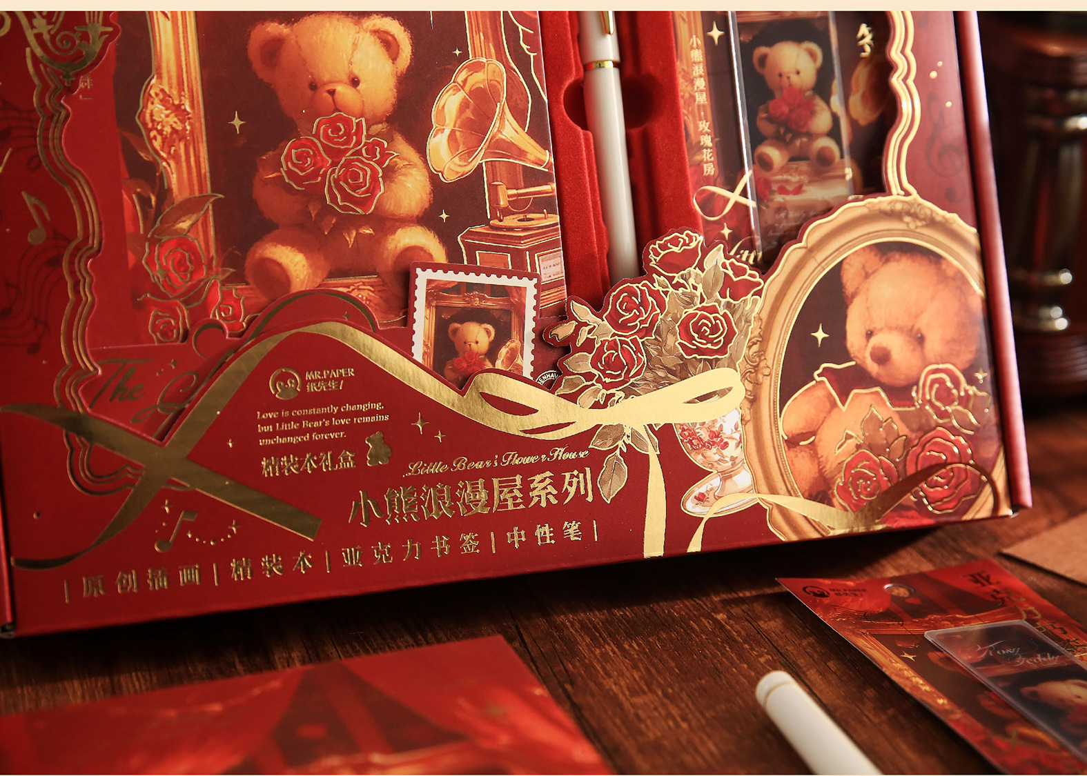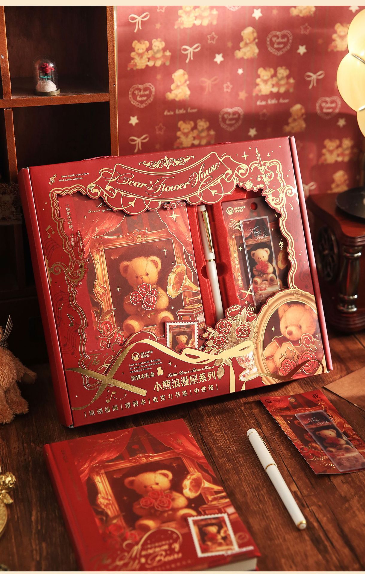 Mr. Paper Caja de regalo de tapa dura Little Bear Romantic House Juego de bloc de notas para estudiantes de dibujos animados Cuaderno de papelería de alto valor