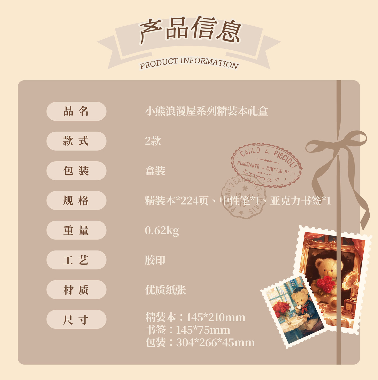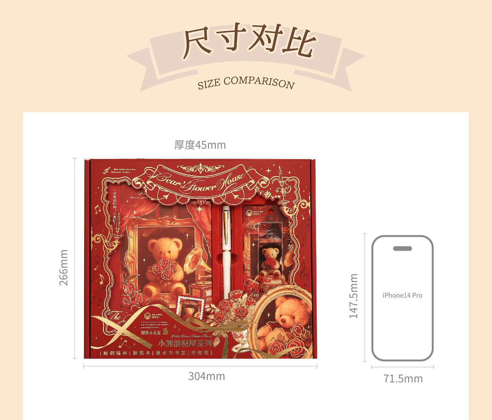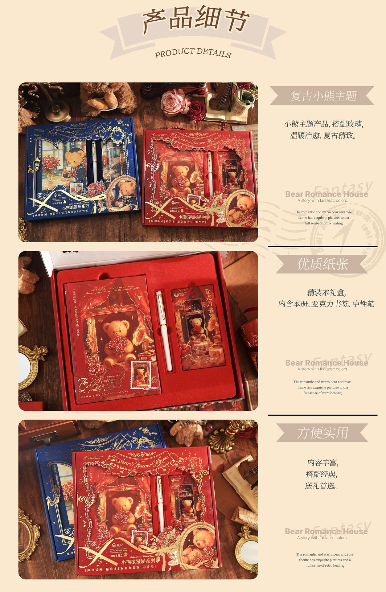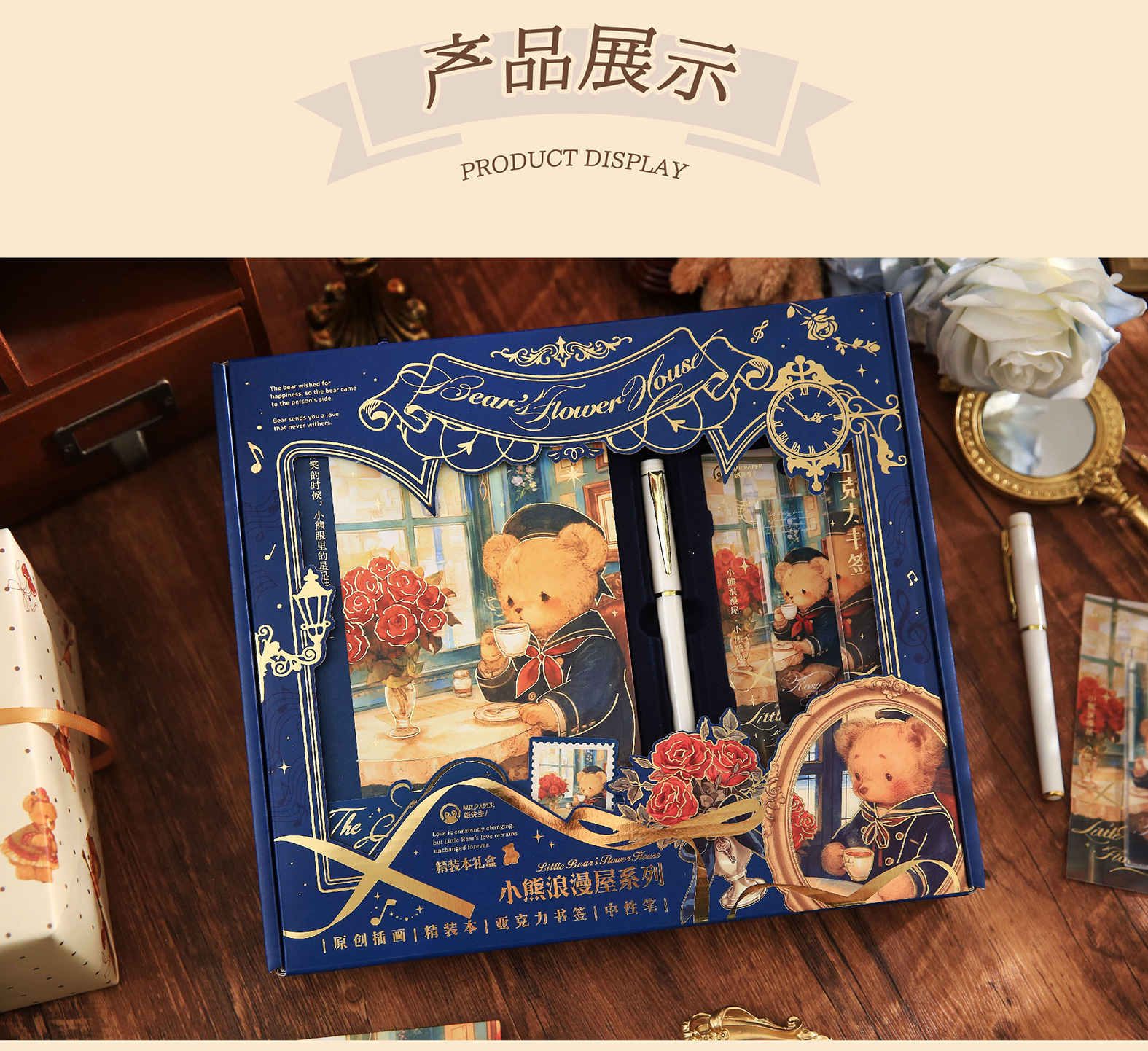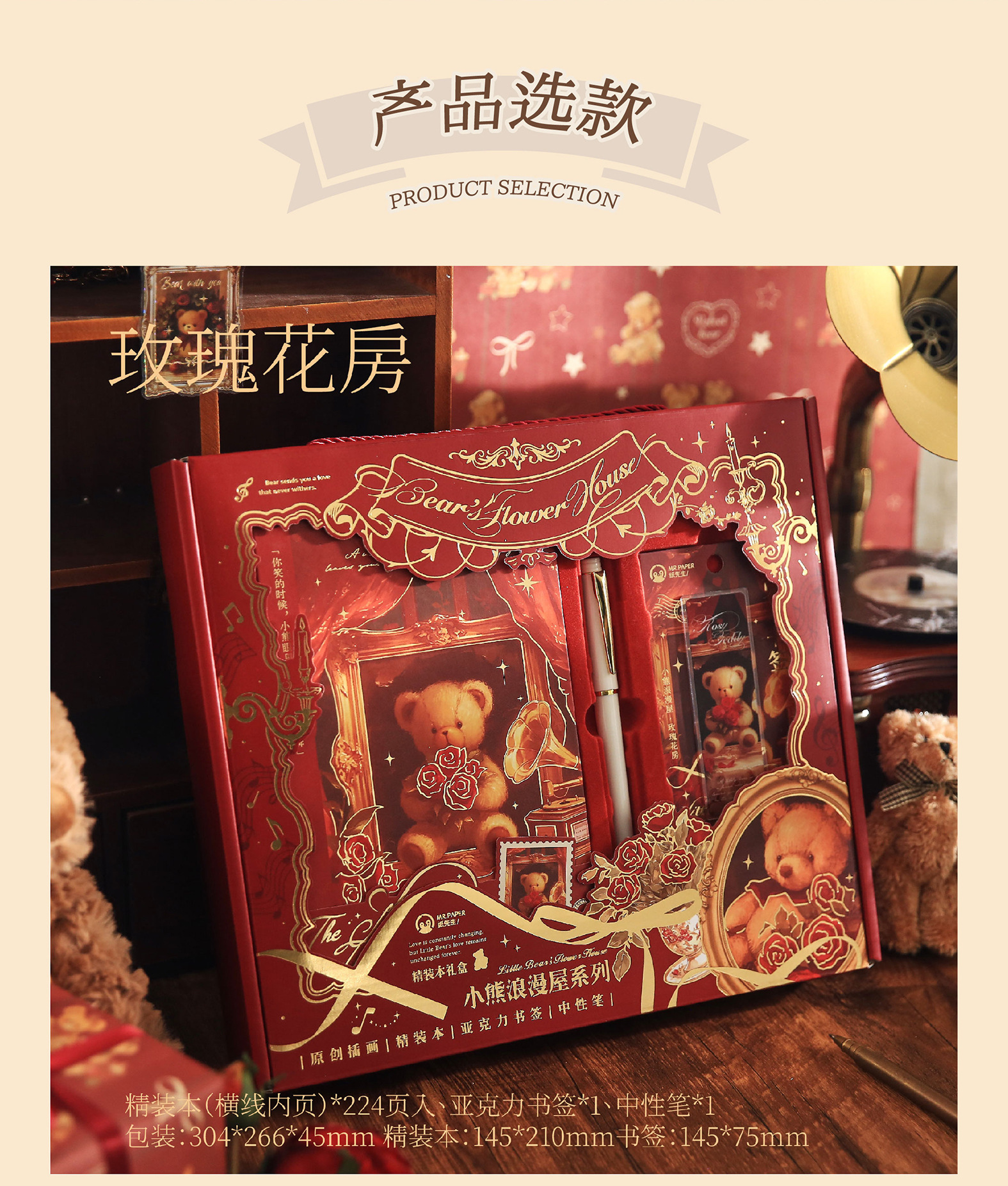 Mr. Paper Caja de regalo de tapa dura Little Bear Romantic House Juego de bloc de notas para estudiantes de dibujos animados Cuaderno de papelería de alto valor