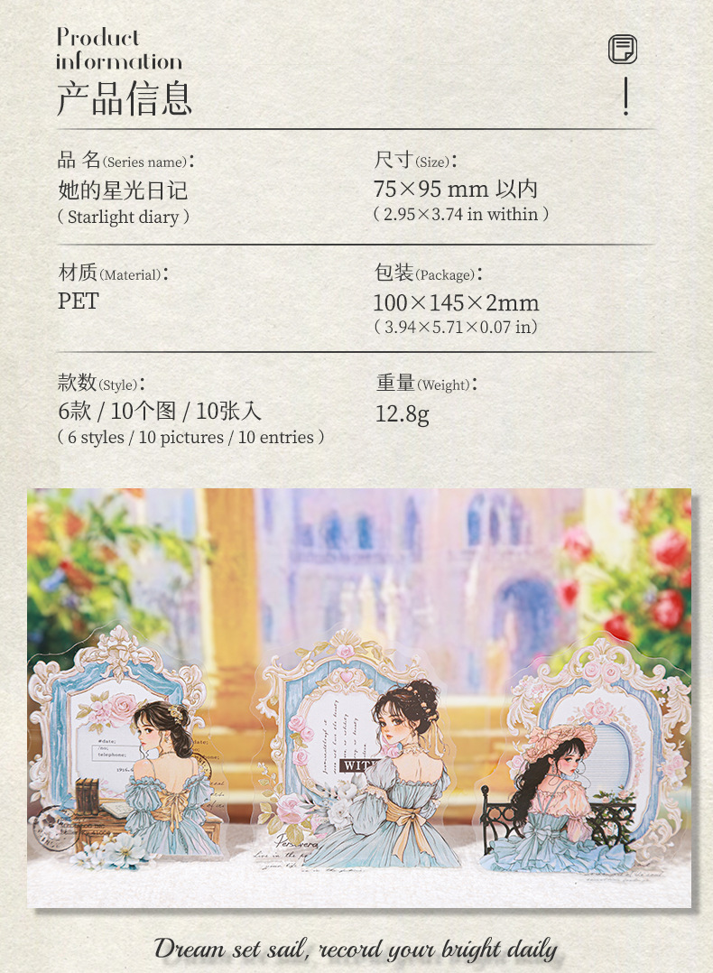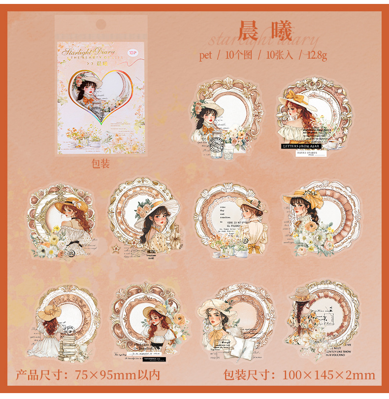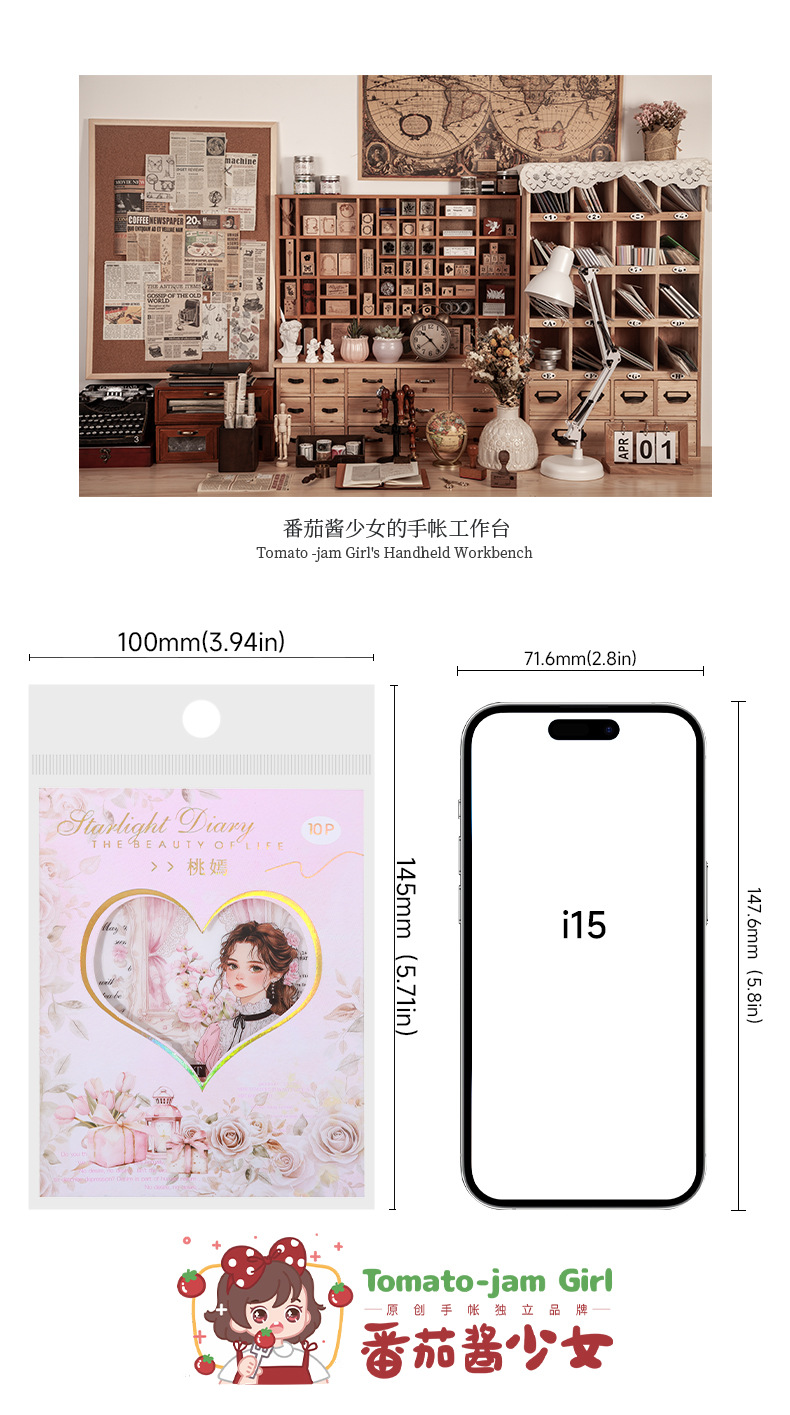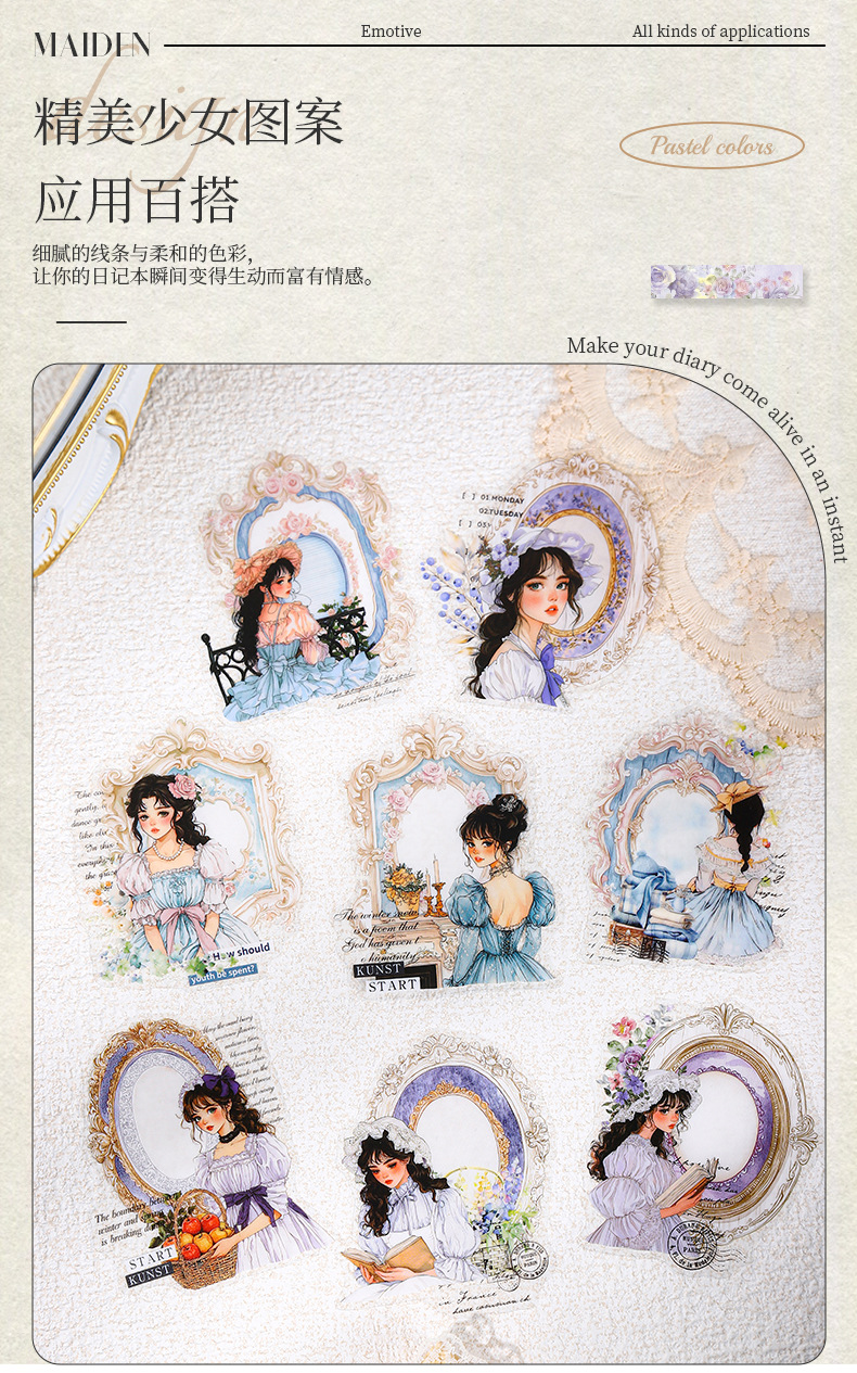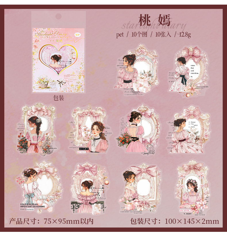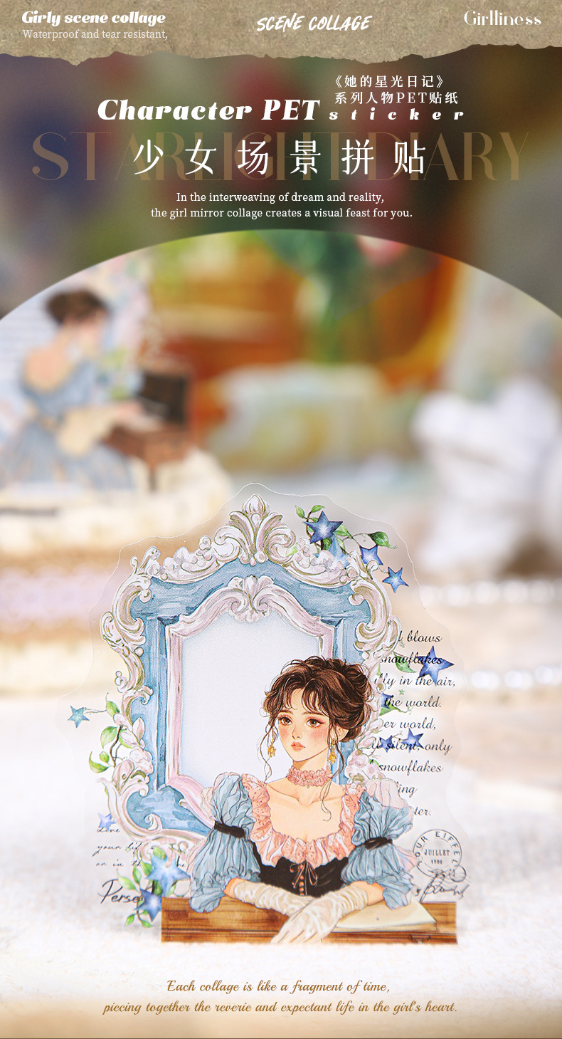 Etiqueta engomada PET del personaje de Ketchup Girl, su serie de diario de estrellas, etiqueta engomada de película de corte decorativa de cuenta vintage