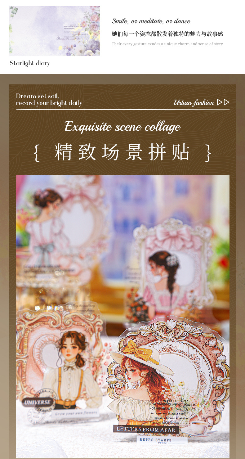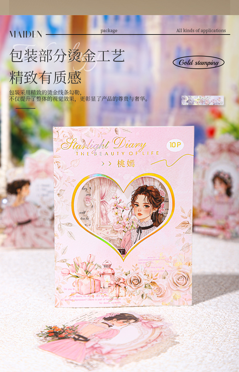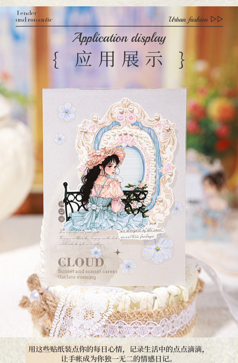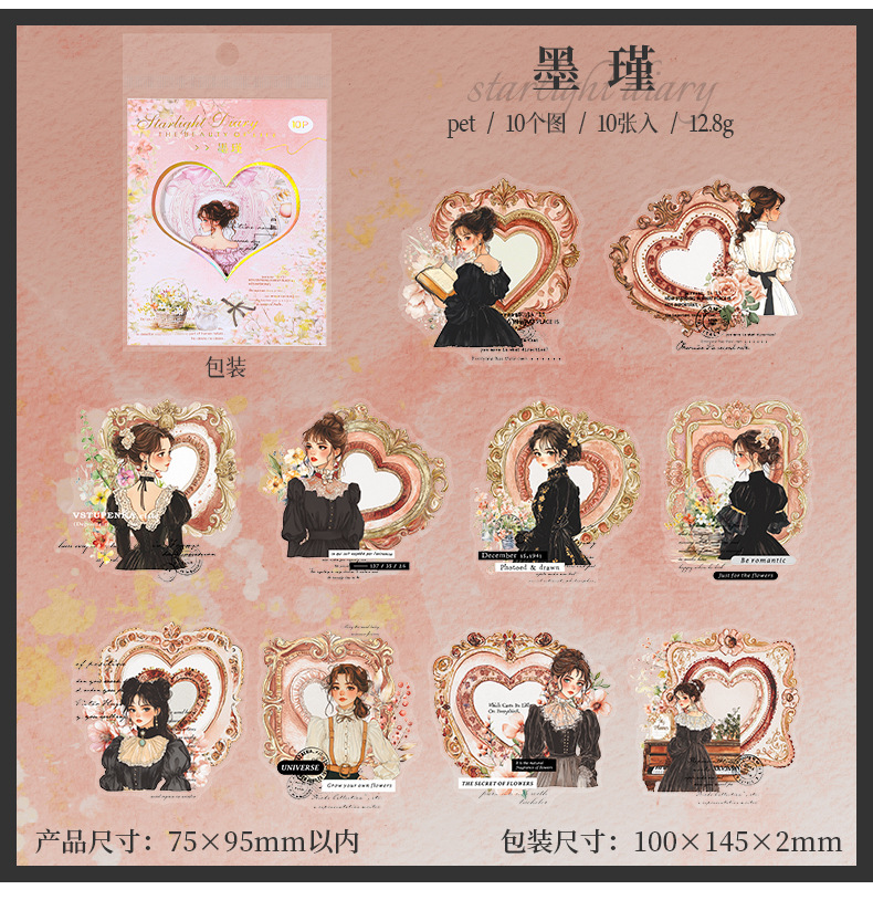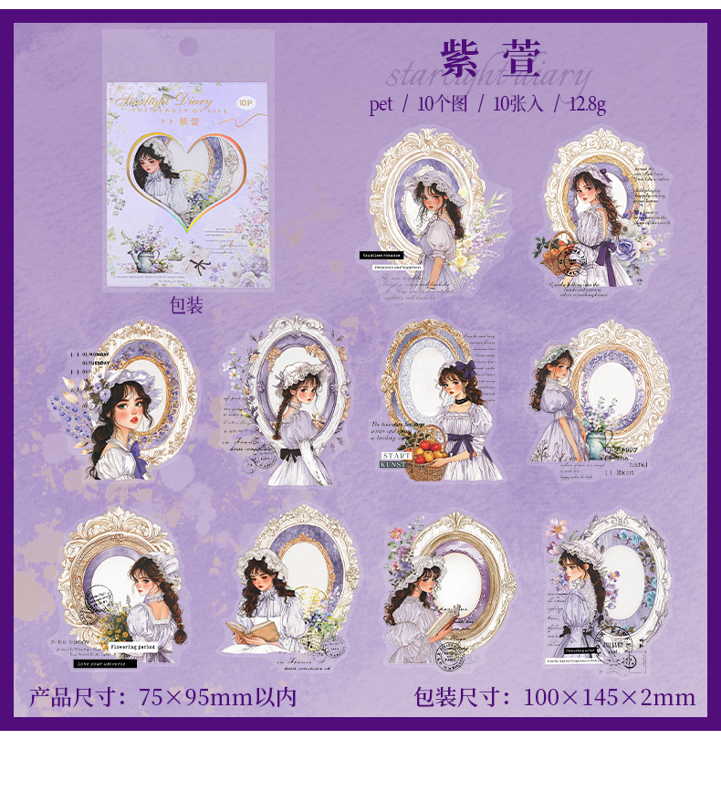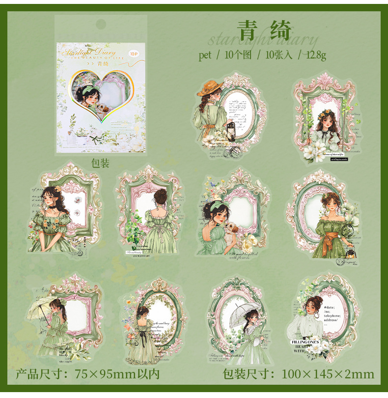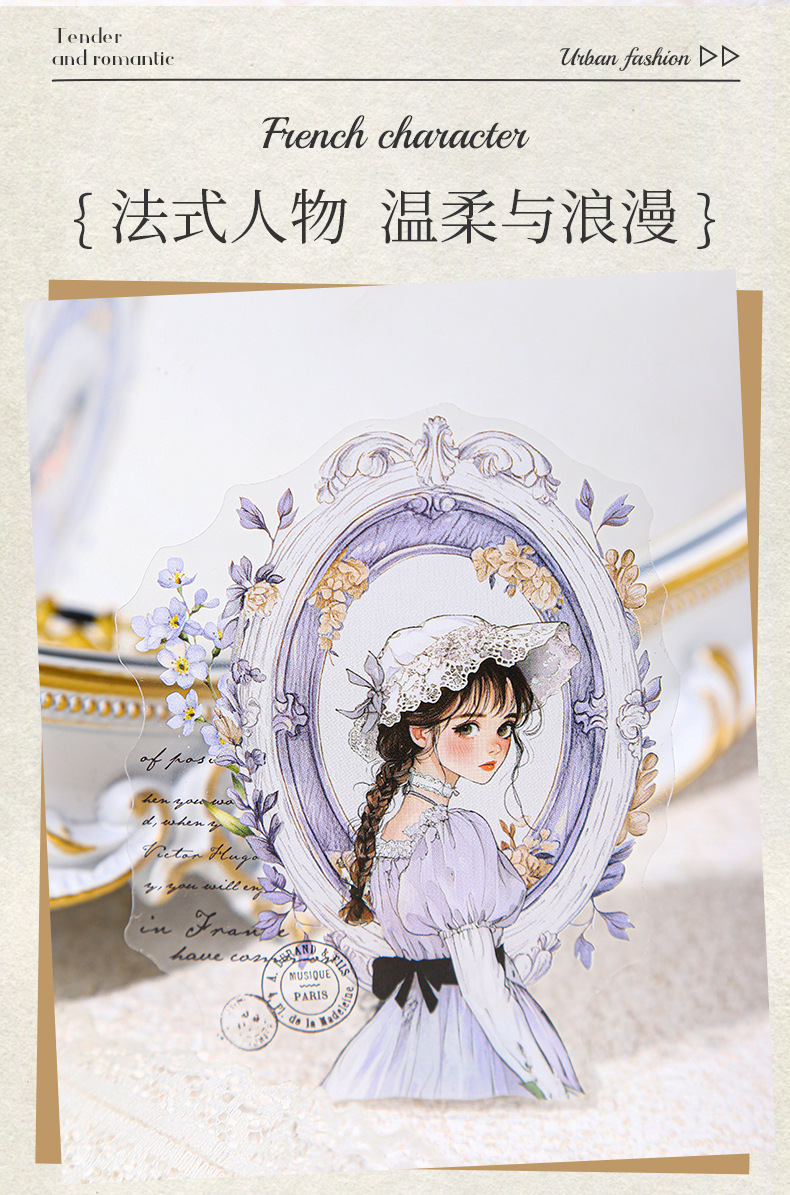 Etiqueta engomada PET del personaje de Ketchup Girl, su serie de diario de estrellas, etiqueta engomada de película de corte decorativa de cuenta vintage