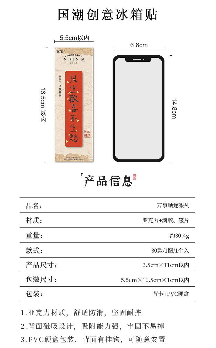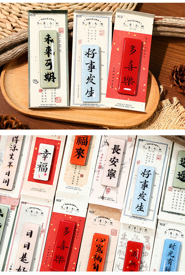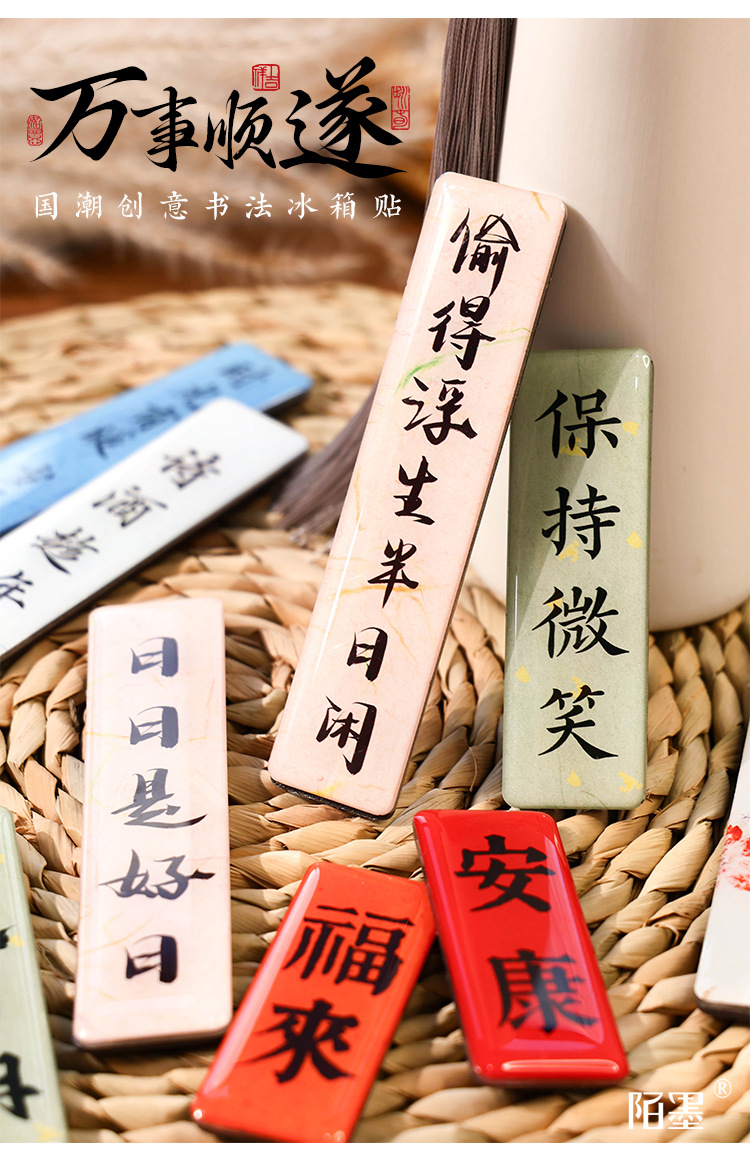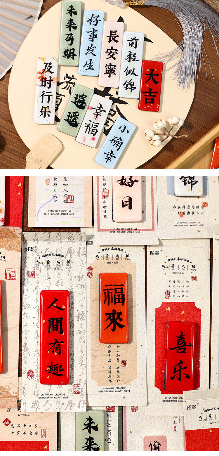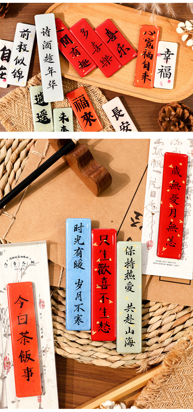 Mo Mo Guofeng bendición de texto pegatinas de refrigerador sucesivamente serie creativa caligrafía acrílica pegatinas de refrigerador magnético