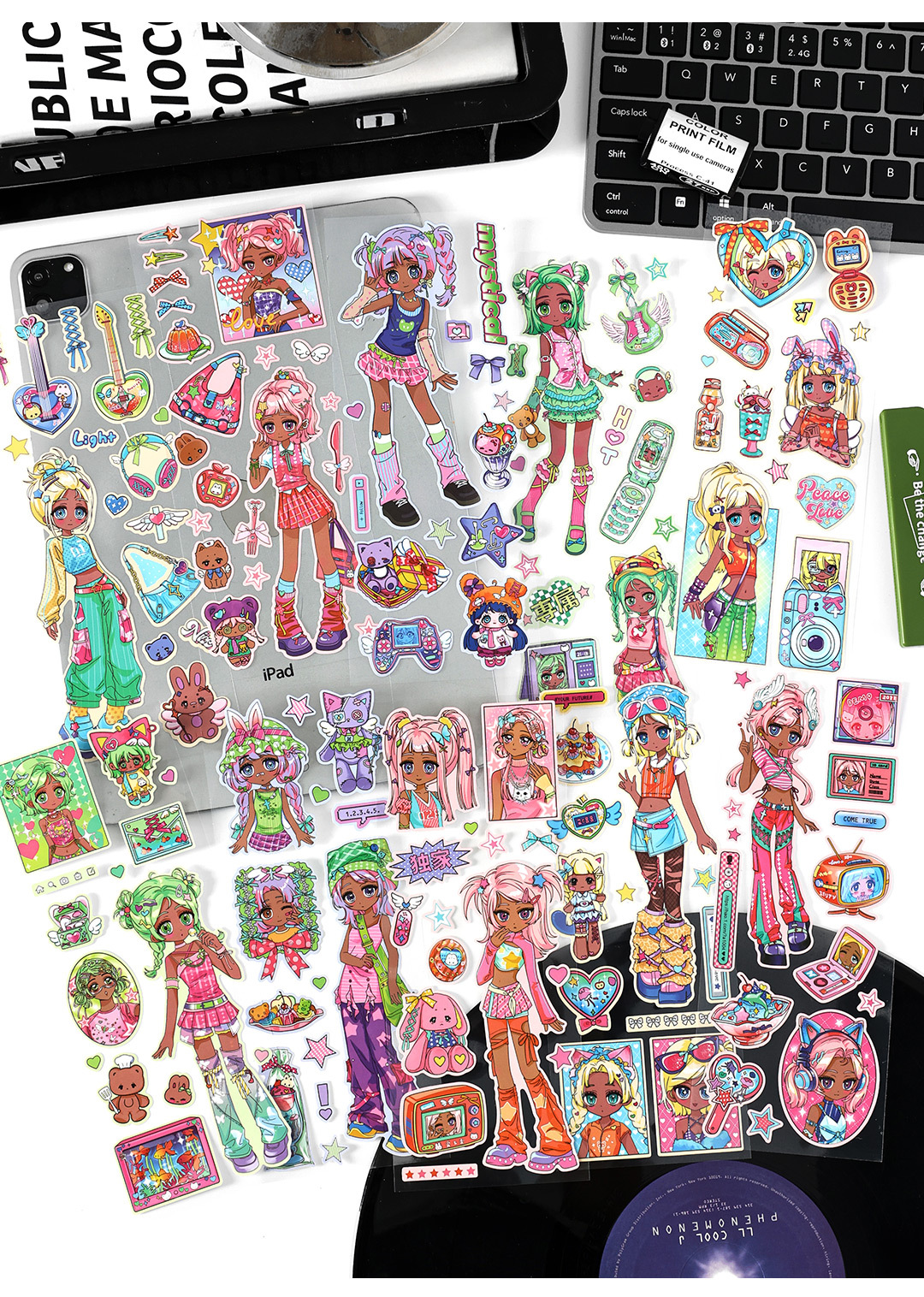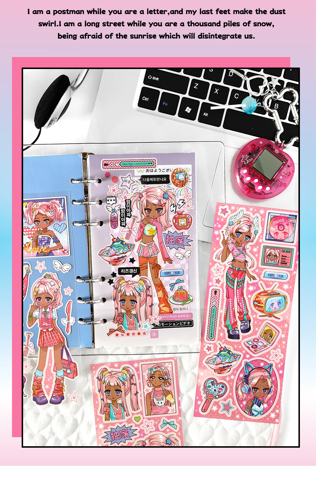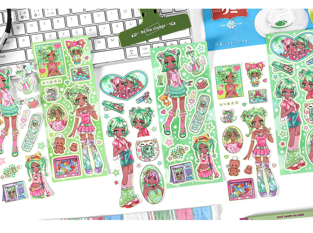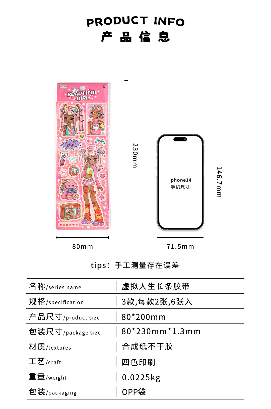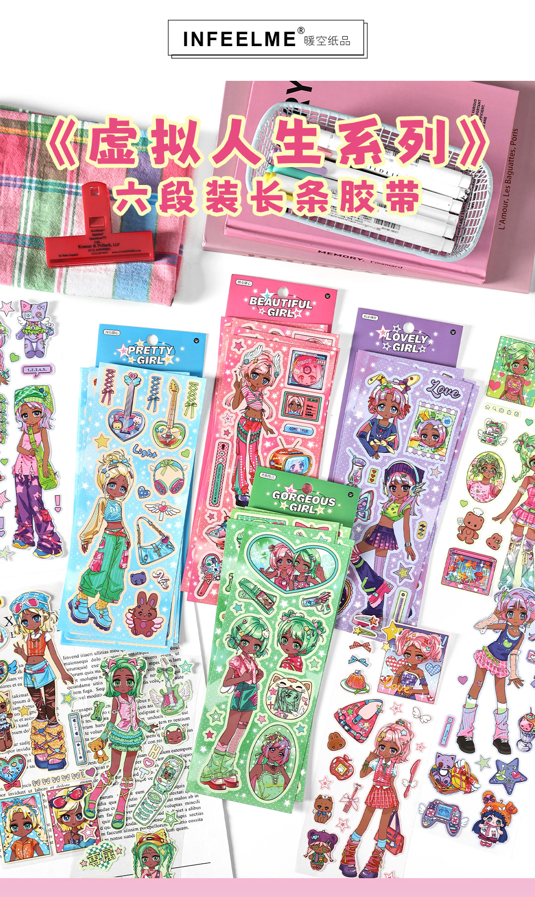 Infeel.me Papel sintético adhesivo seis piezas de cinta adhesiva personaje de vida virtual pegatinas decorativas