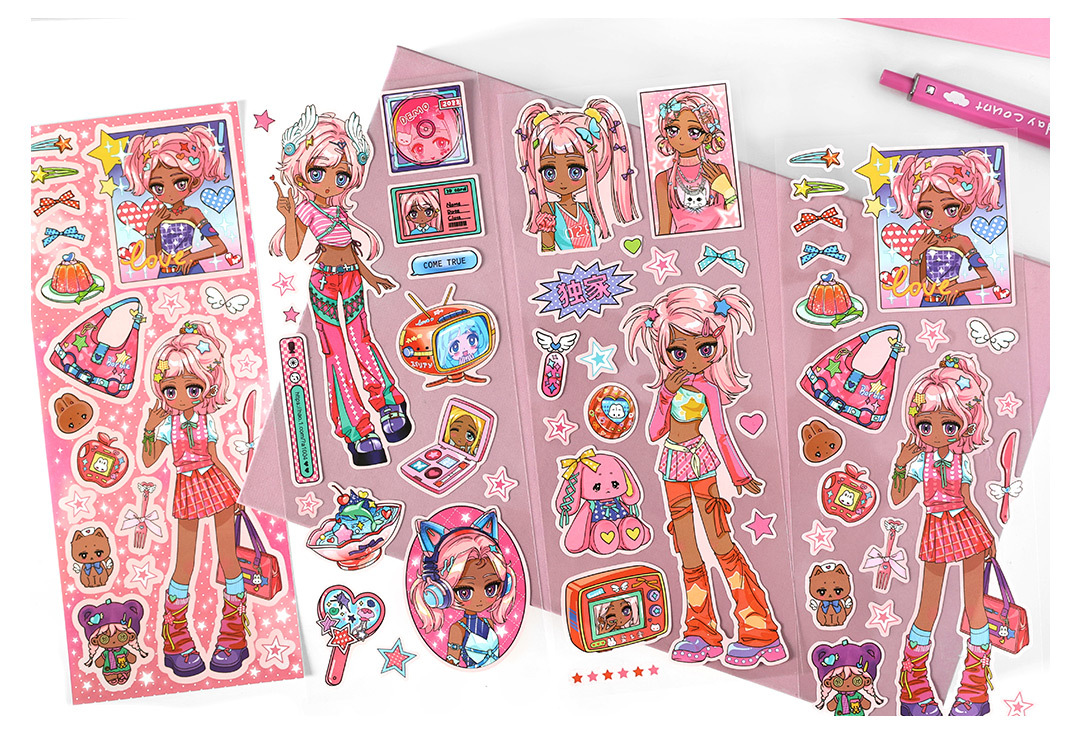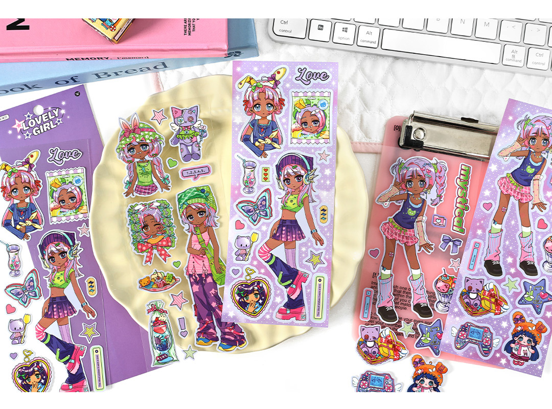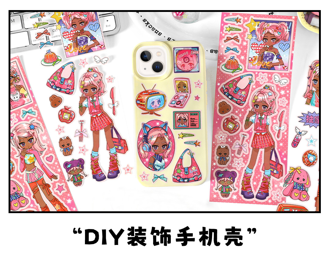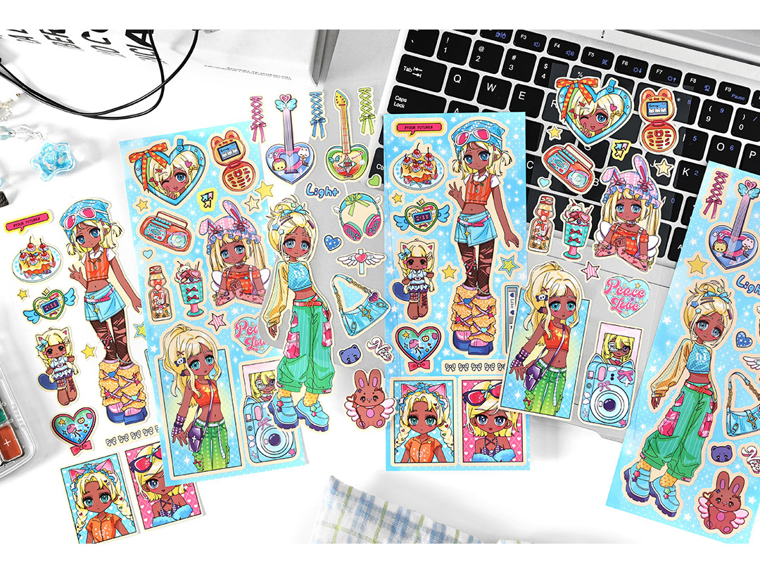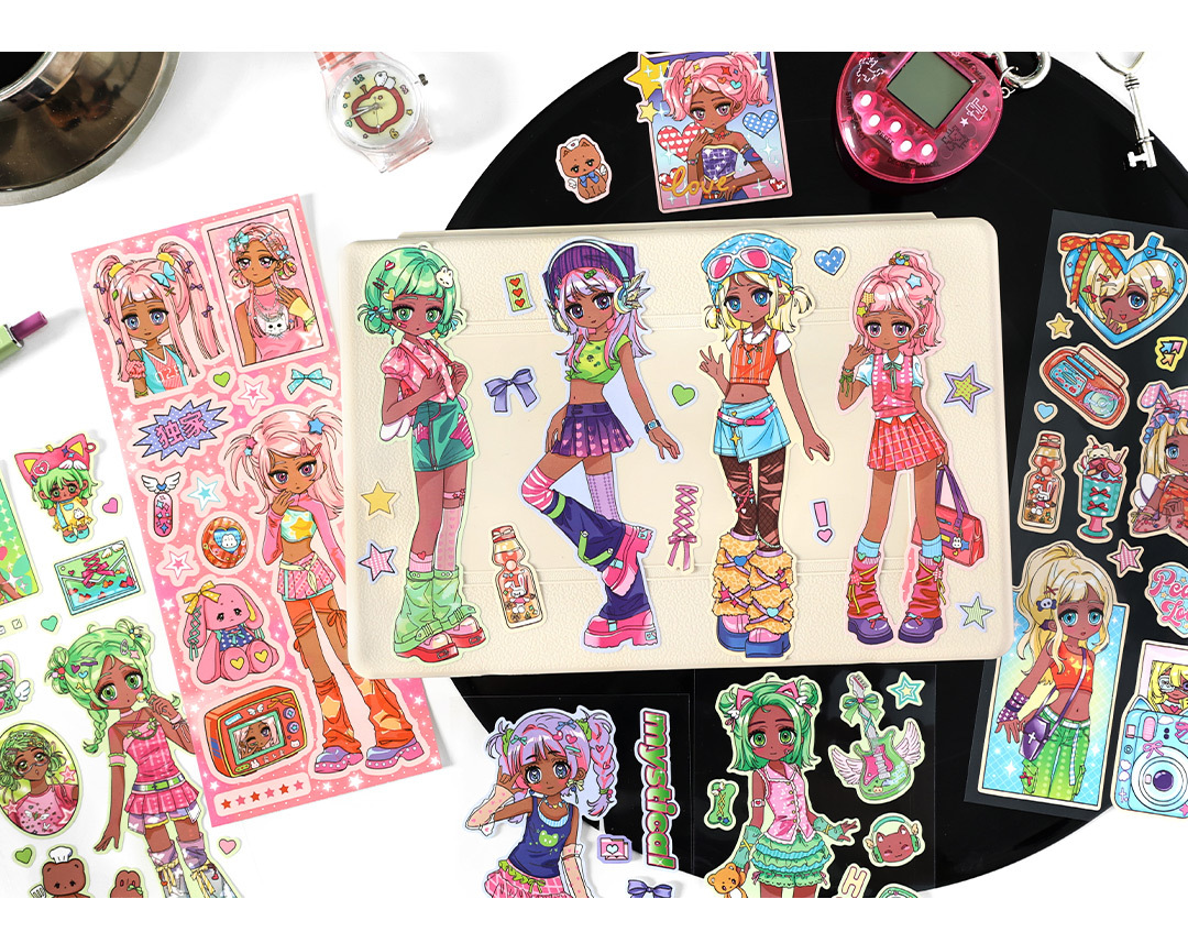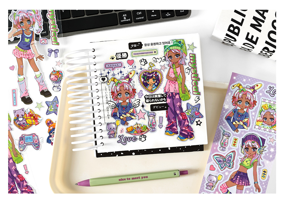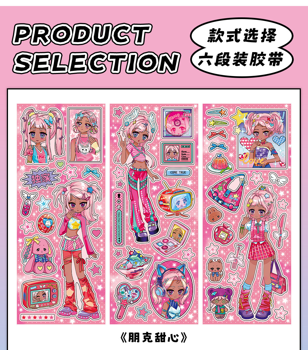 Infeel.me Papel sintético adhesivo seis piezas de cinta adhesiva personaje de vida virtual pegatinas decorativas