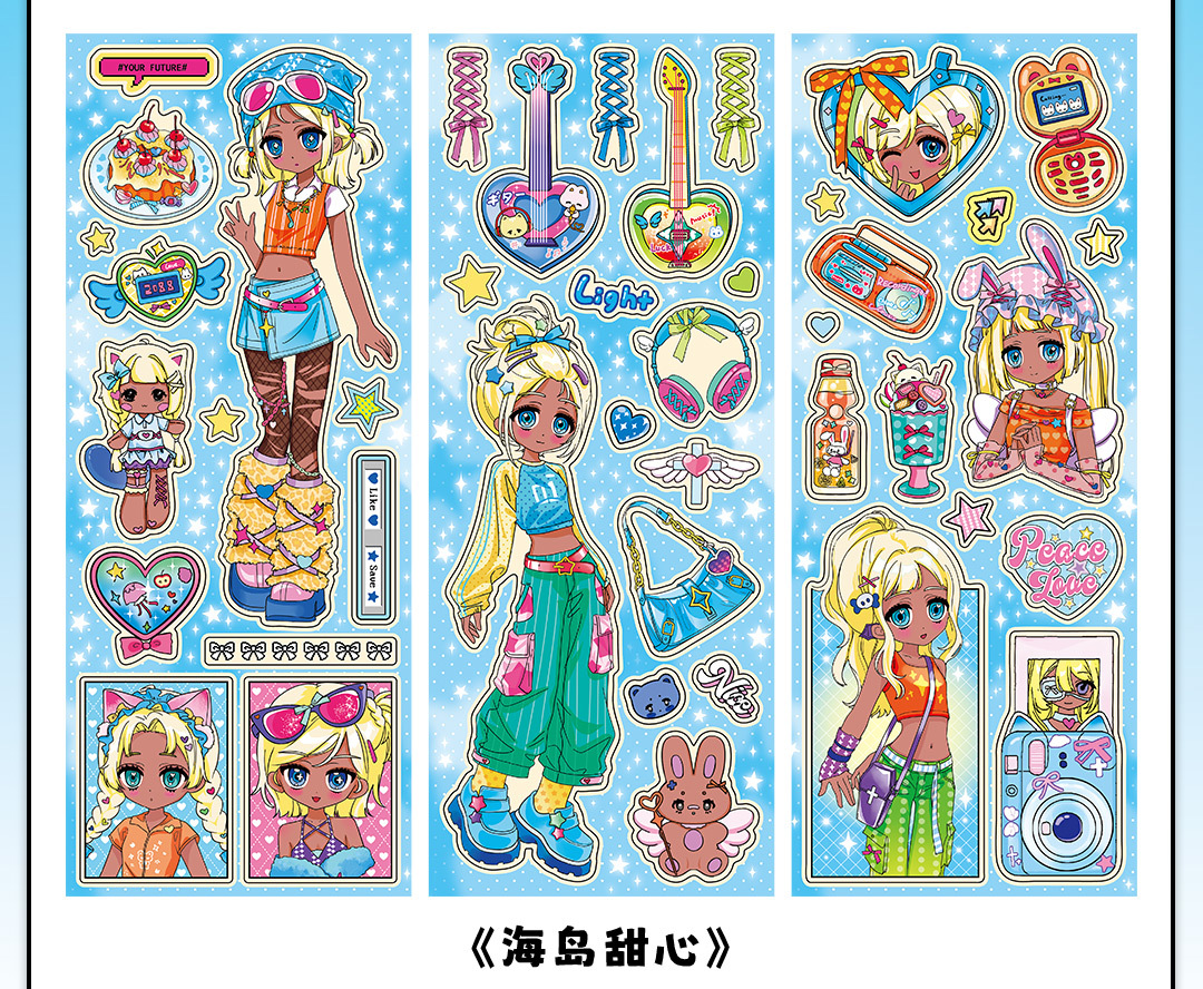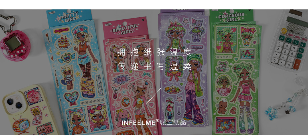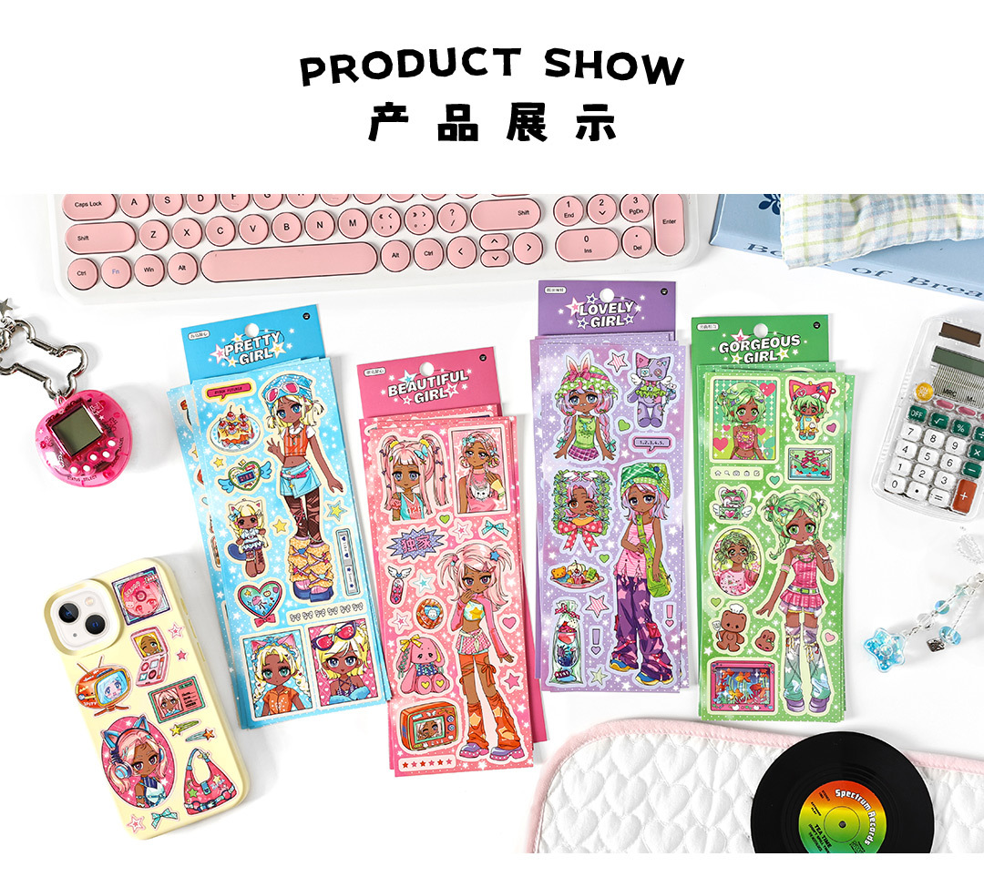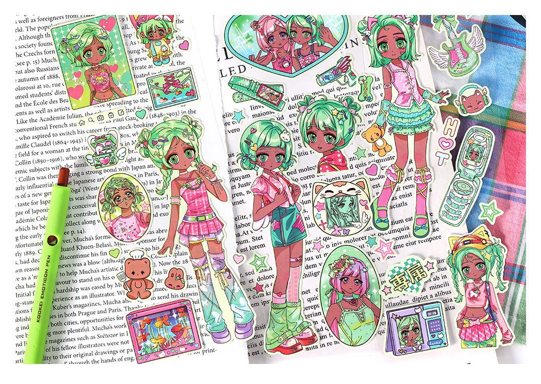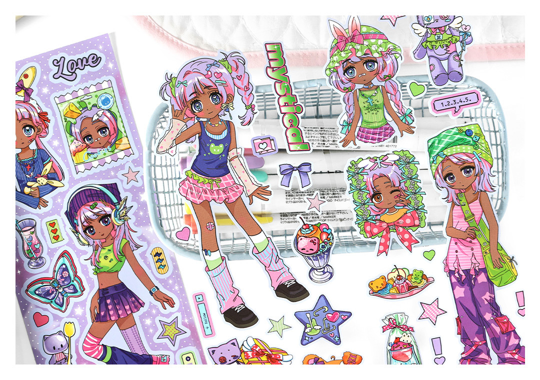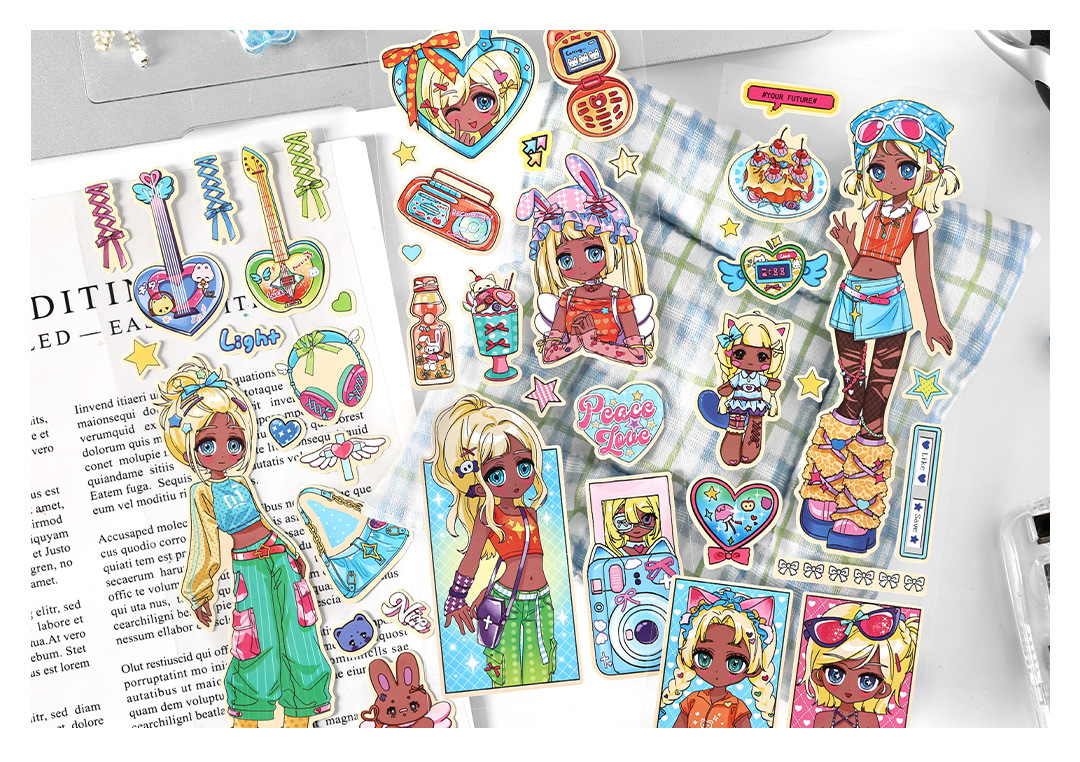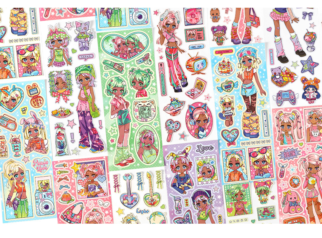 Infeel.me Papel sintético adhesivo seis piezas de cinta adhesiva personaje de vida virtual pegatinas decorativas