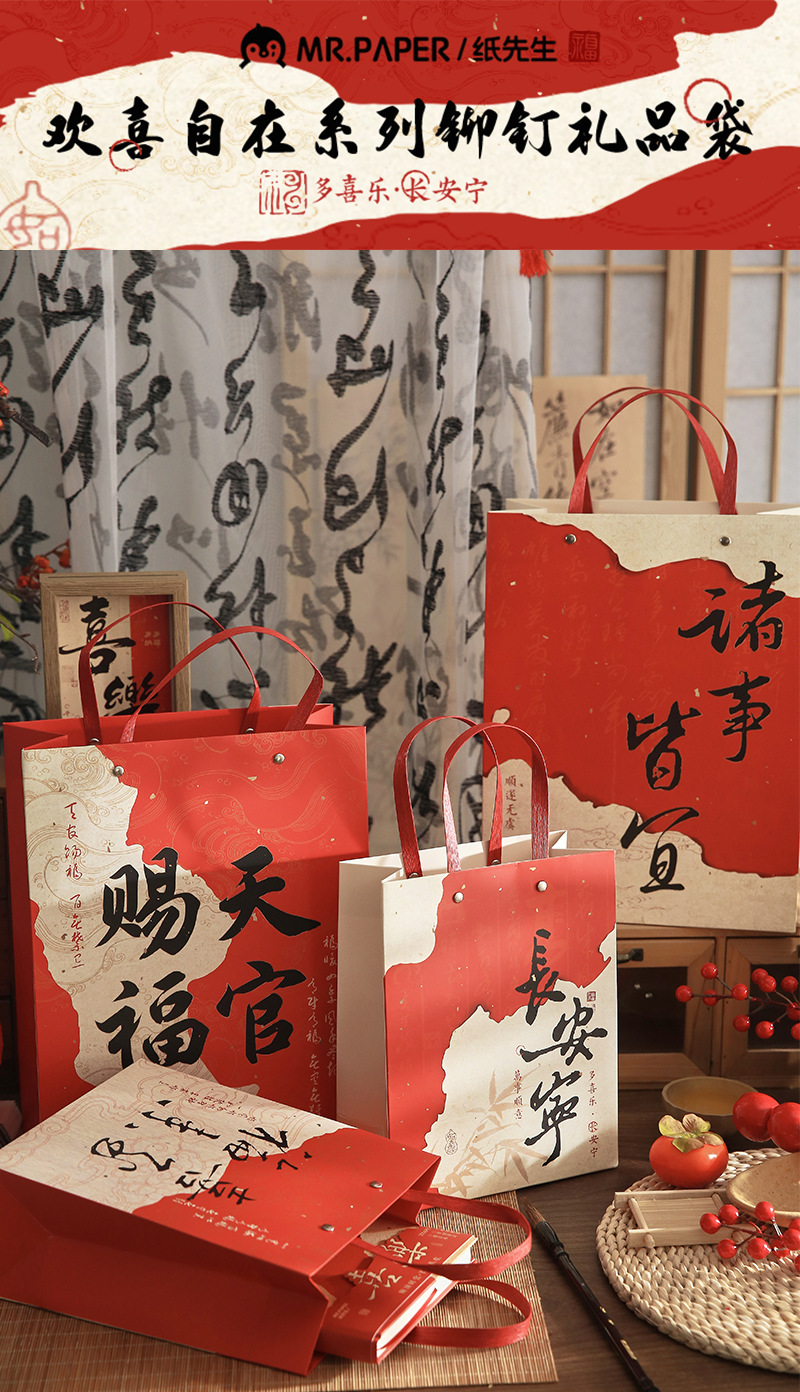 Papel Sr. Remaches bolsa de regalo feliz serie de bendiciones de texto de regalo de embalaje de bolsa de almacenamiento