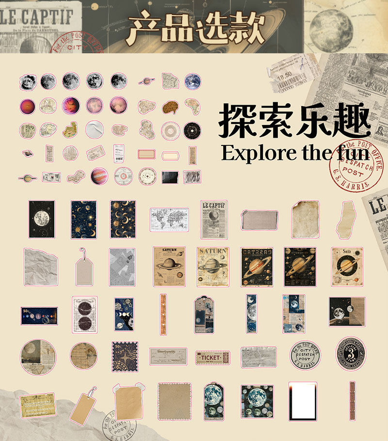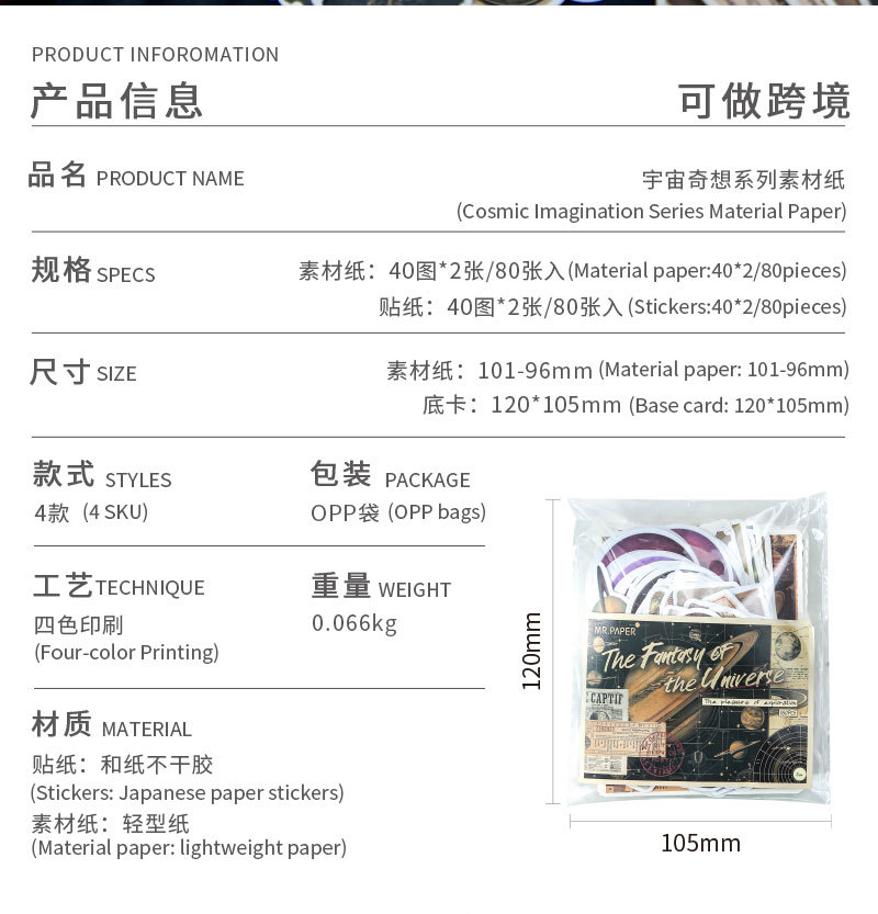 Papel Sr. material transfronterizo paquete de fantasía universal serie de texto retro collage material de decoración de cuentas 160