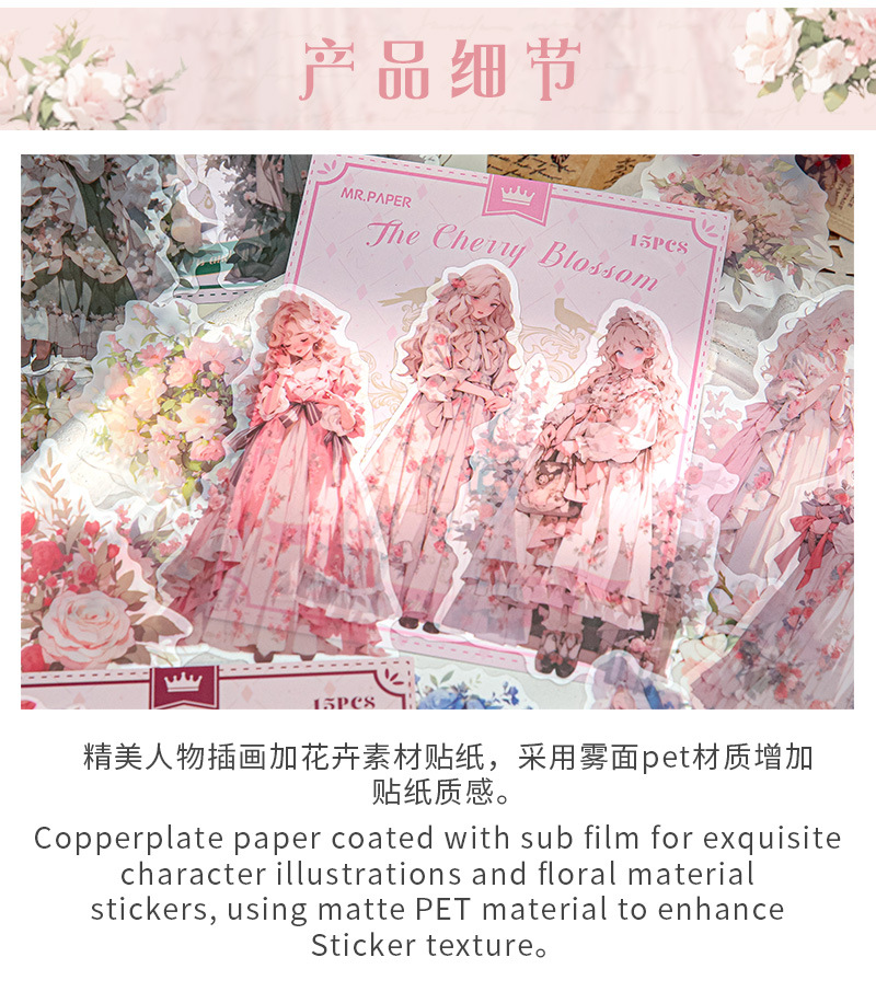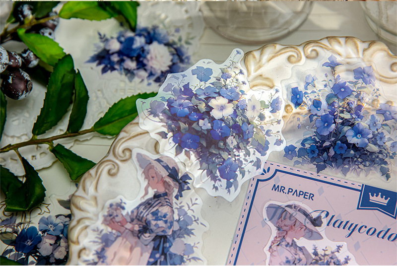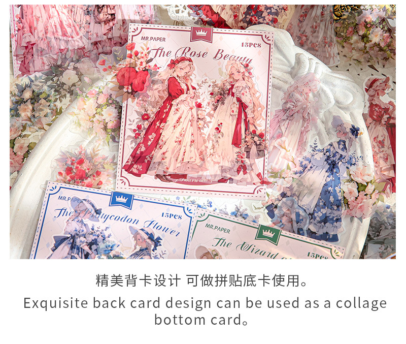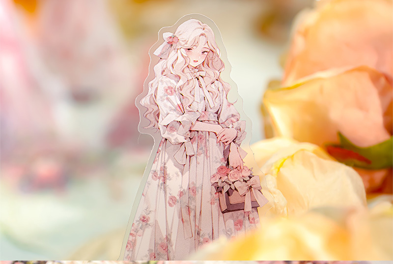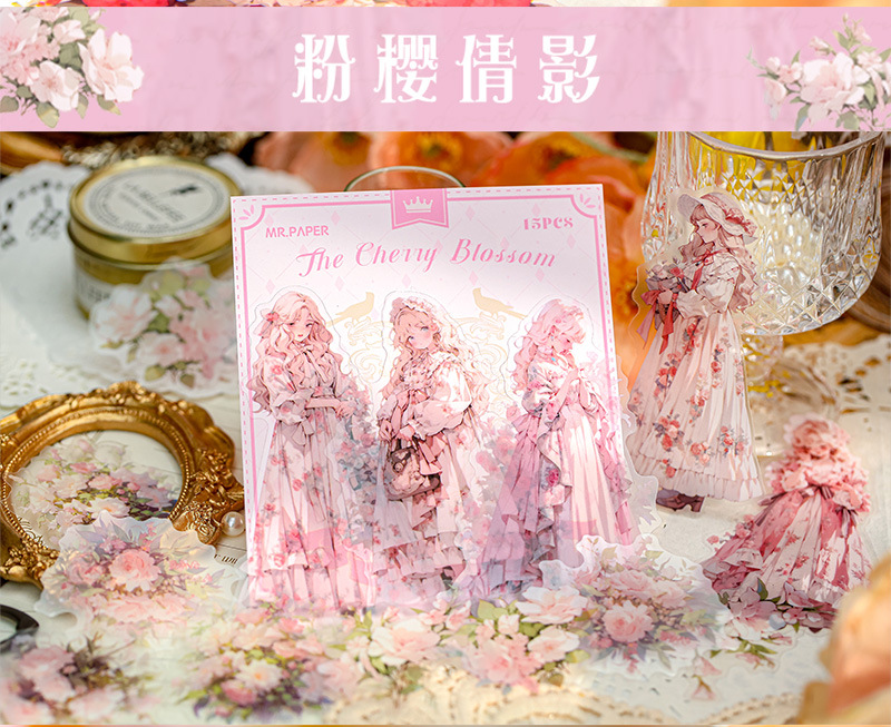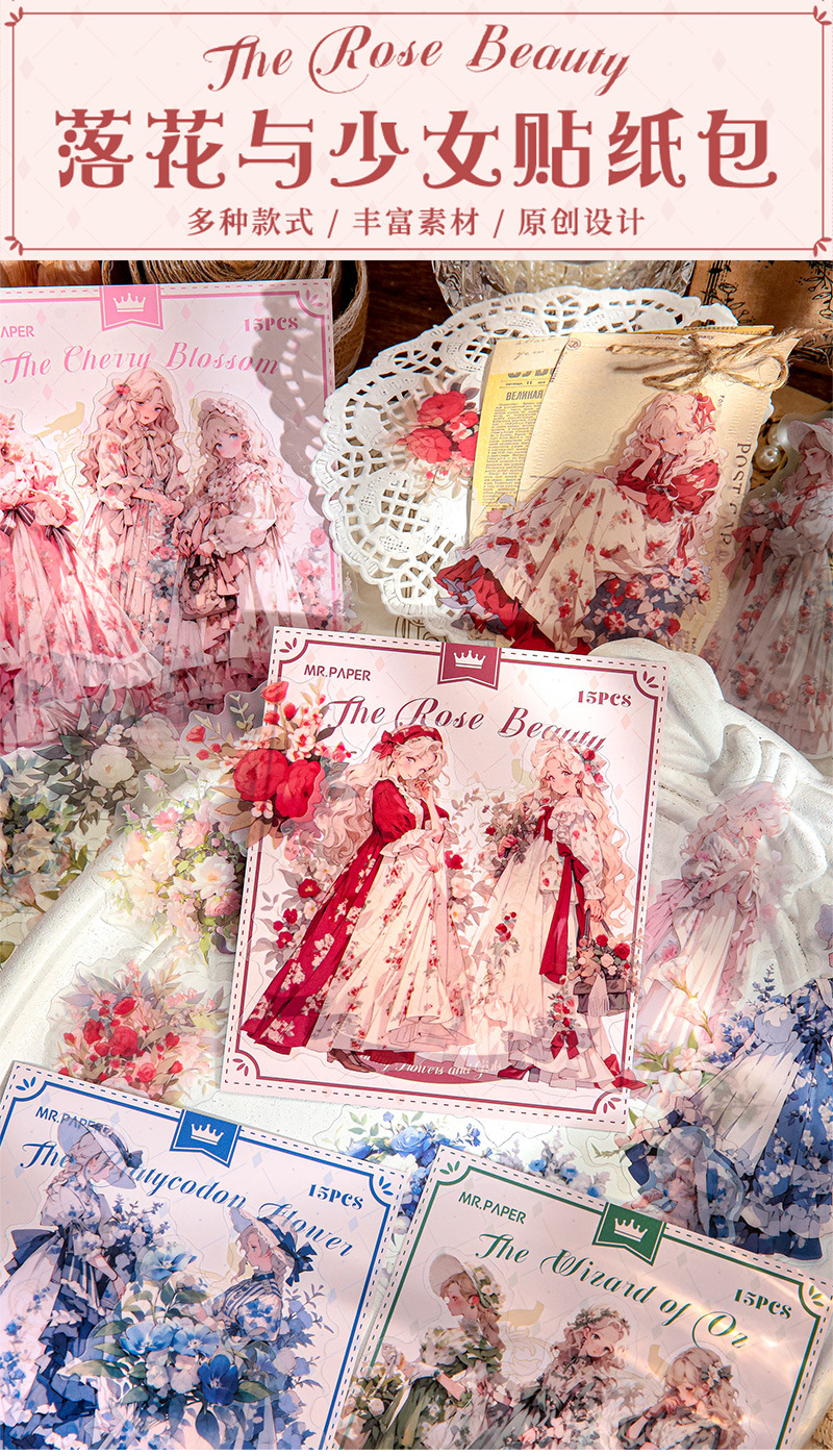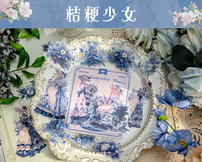 Mr. Paper Personaje Flor Etiqueta engomada grande Bolsa Flor que cae y serie de chicas Cute Girl Elements Etiqueta engomada de la tienda