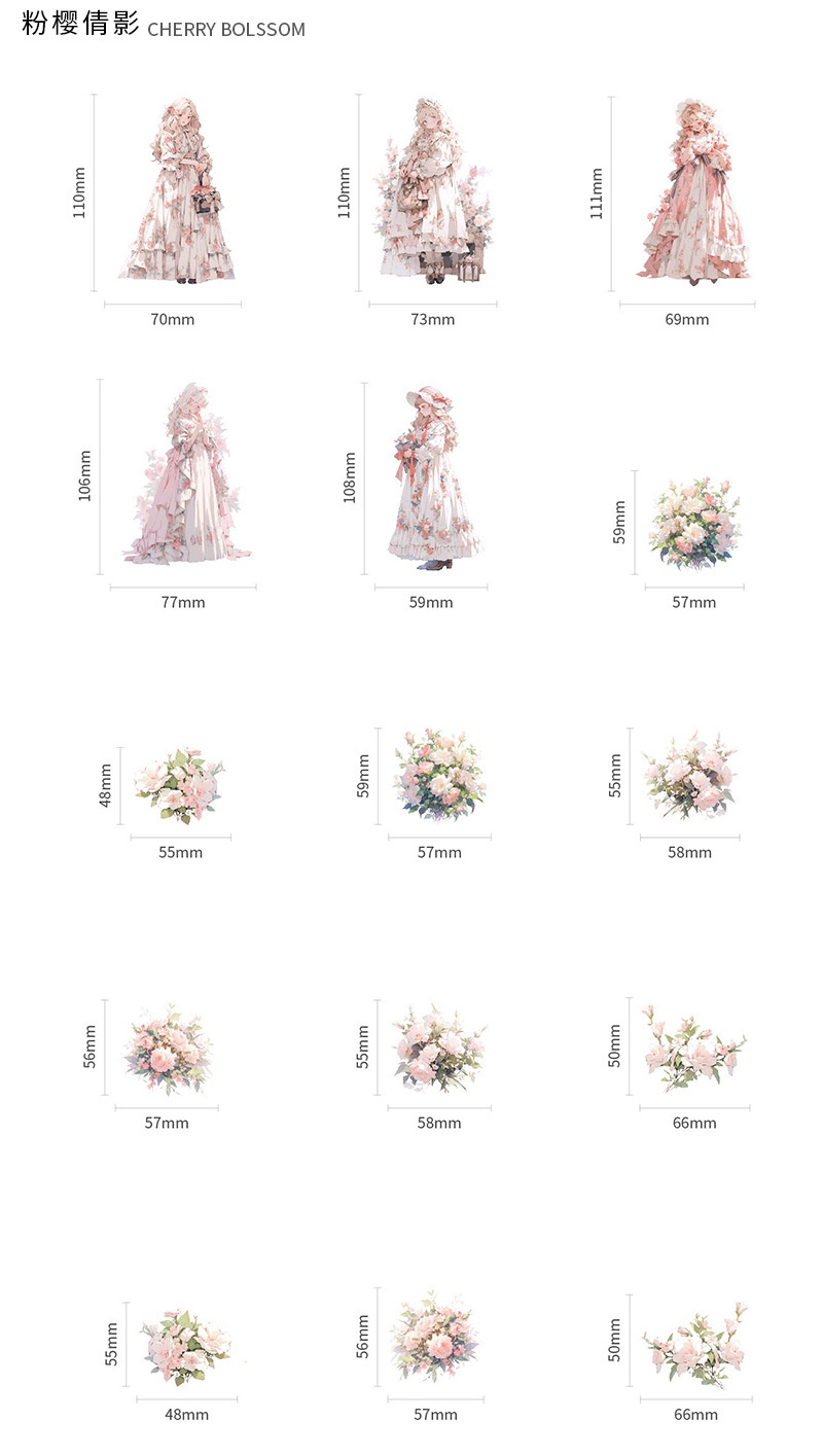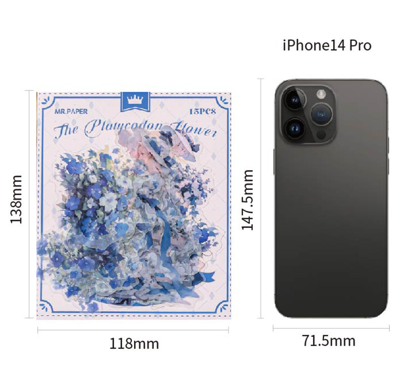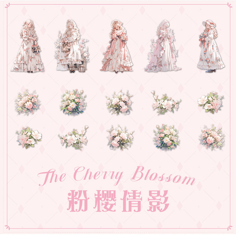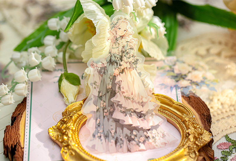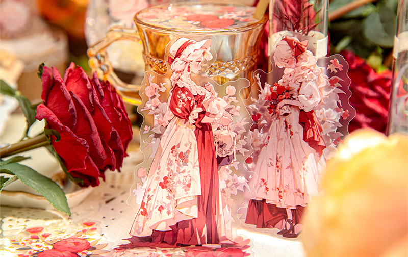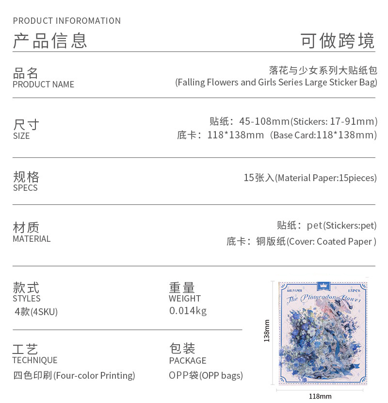 Mr. Paper Personaje Flor Etiqueta engomada grande Bolsa Flor que cae y serie de chicas Cute Girl Elements Etiqueta engomada de la tienda