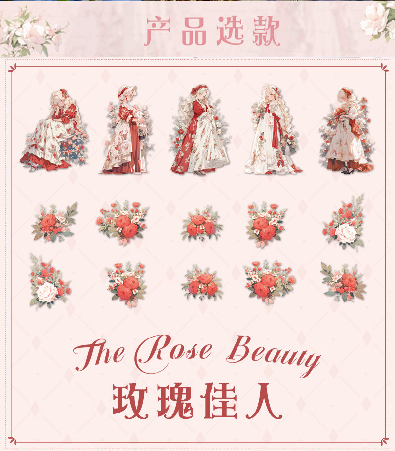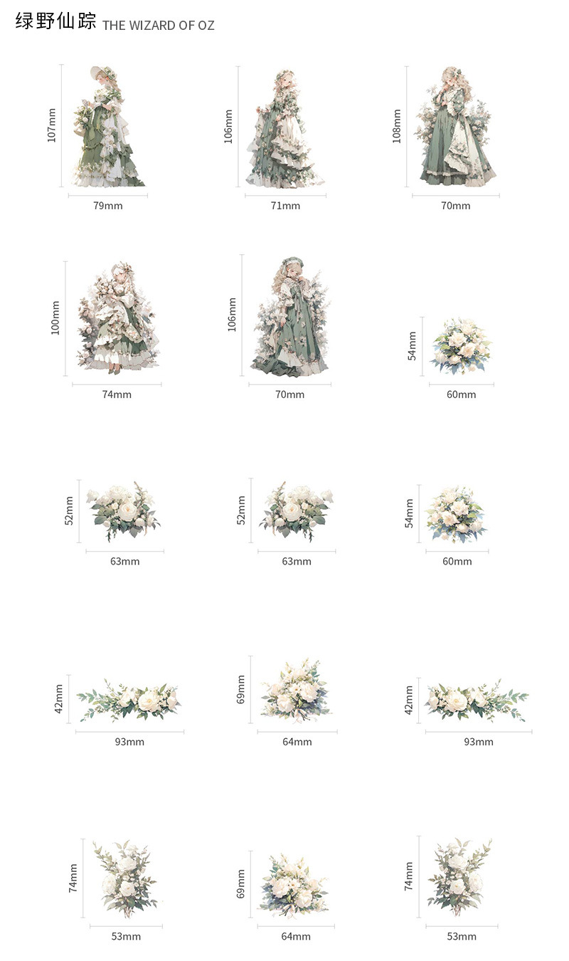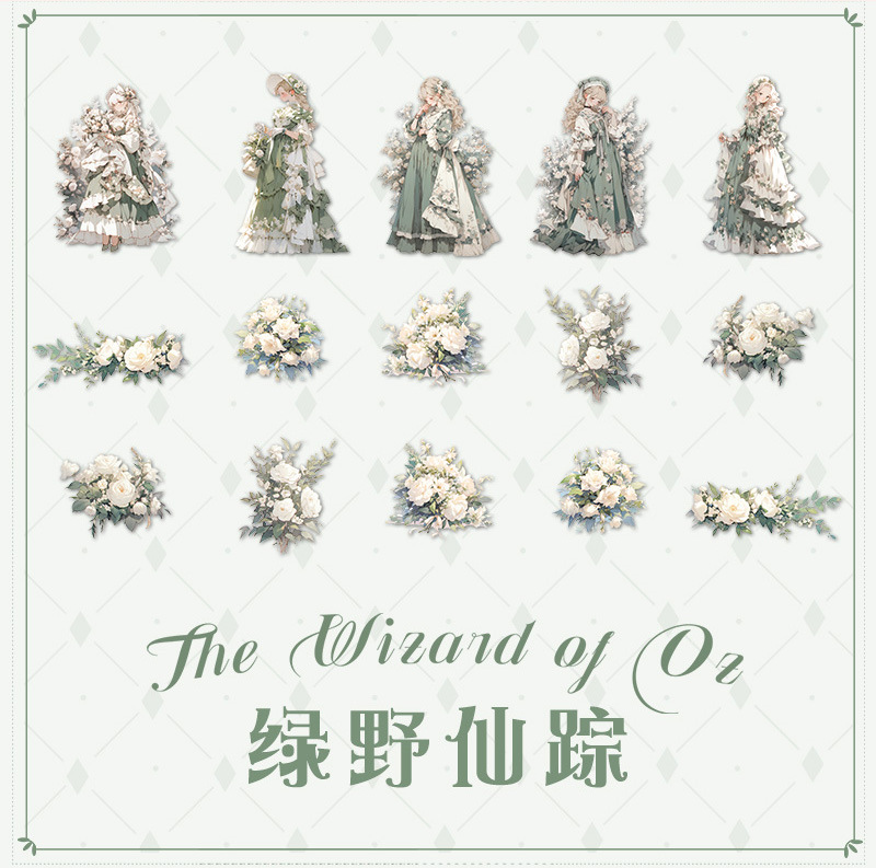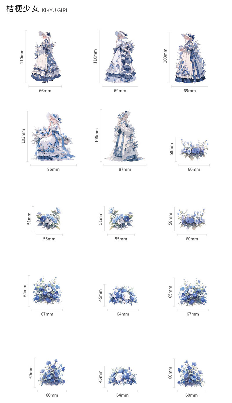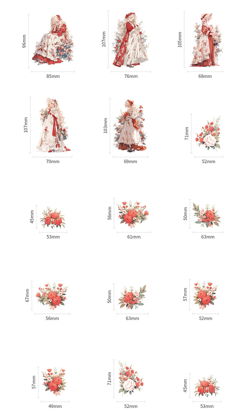 Mr. Paper Personaje Flor Etiqueta engomada grande Bolsa Flor que cae y serie de chicas Cute Girl Elements Etiqueta engomada de la tienda