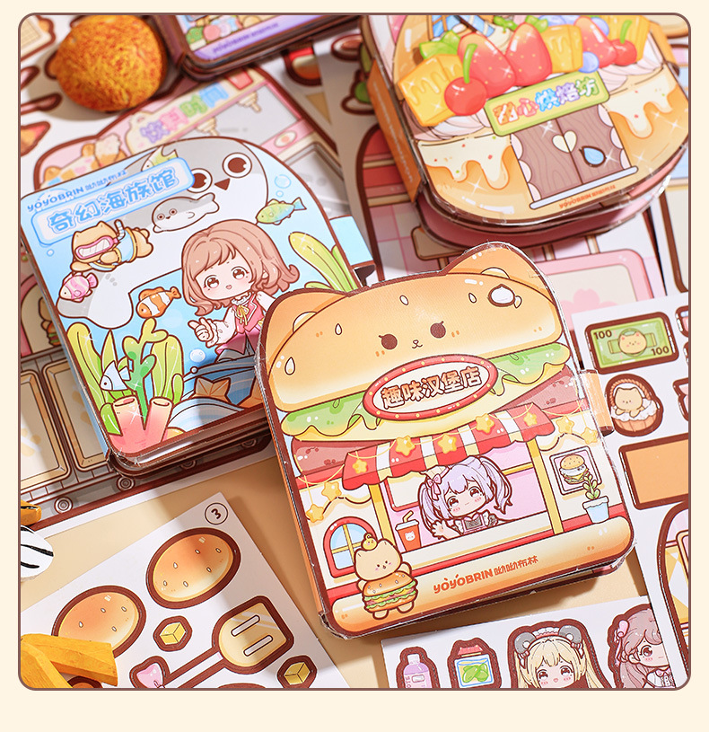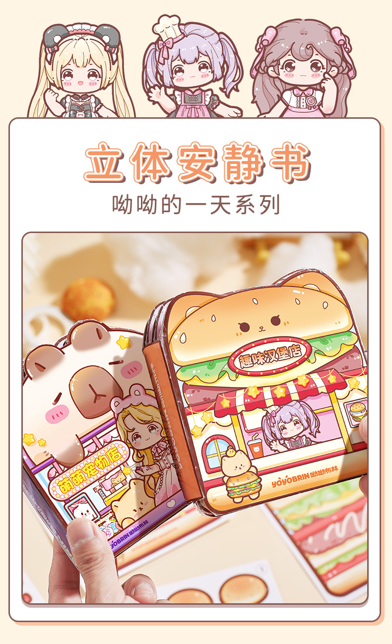Yoyo Brin libro tranquilo traje yoyo un día serie lindo diario de dibujos animados niños escena pegatina libro
