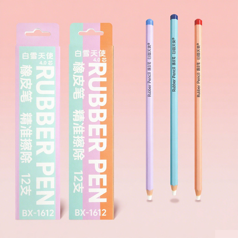 Bolígrafo de goma de varilla hexagonal de White Snow Angel, estilo de combinación de colores de macarons, borrado preciso de materiales de estudiantes, bolígrafo de eliminación de escritura a mano