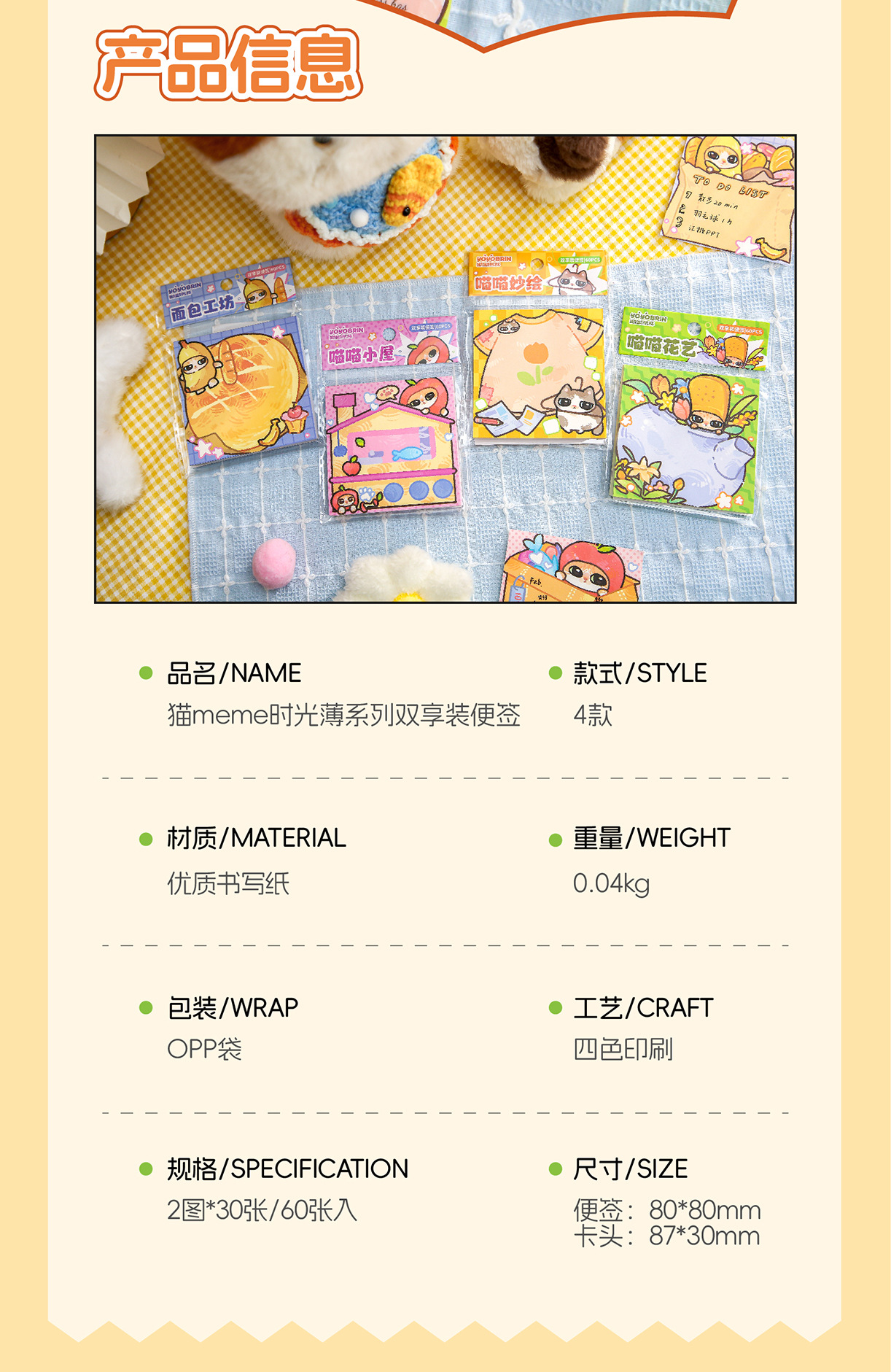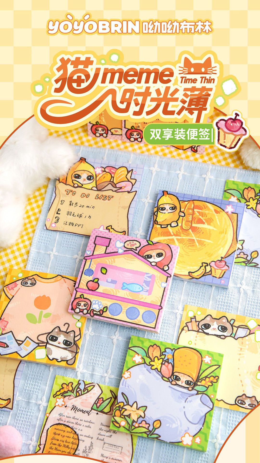 Yoyo Bu Double Enjoy Pit Notes Cat meme Time Thin Original ins Student Post-it Notas de oficina N