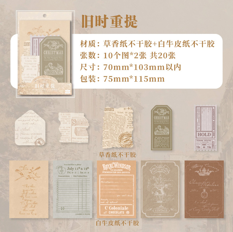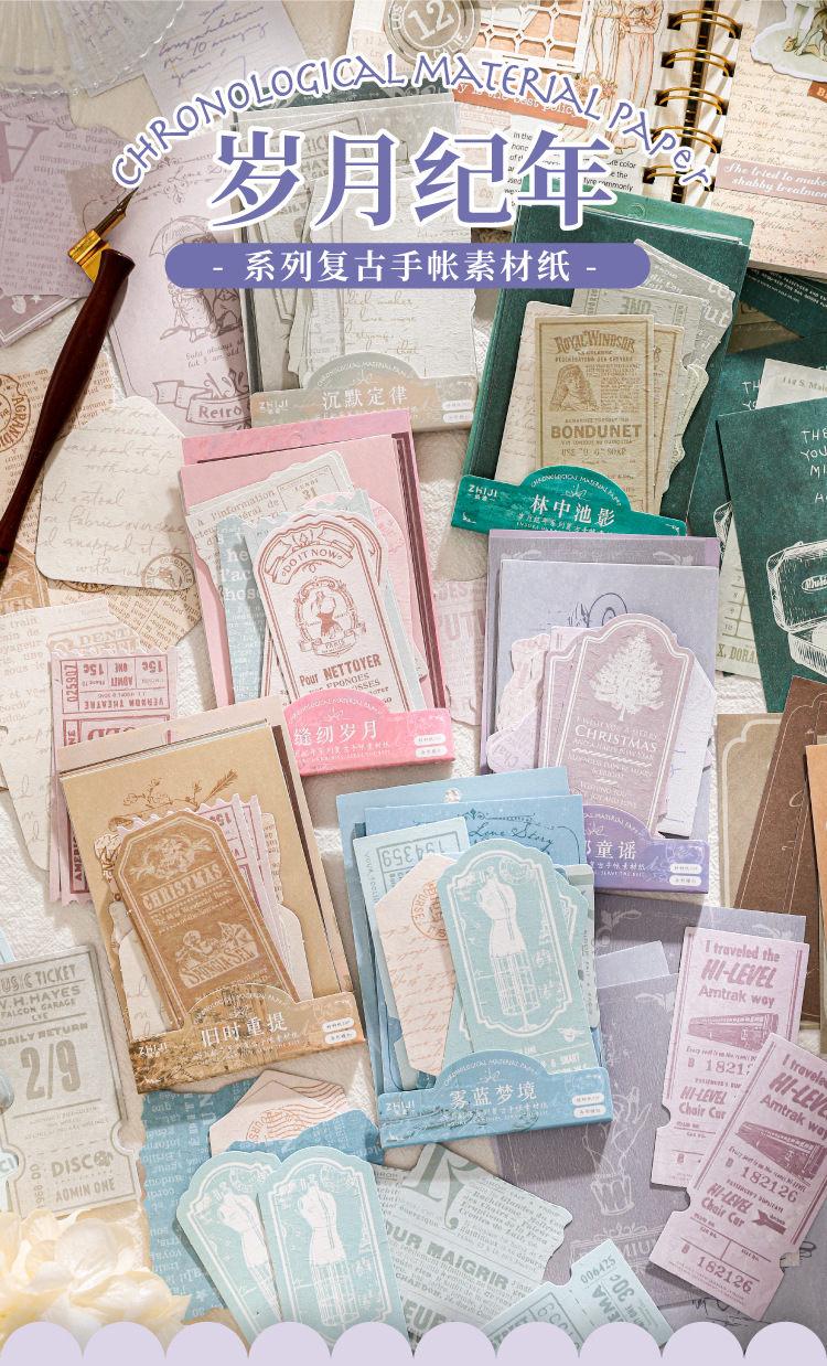 Material de cuenta de mano retro con huellas de papel, años de papel, años, años, decoración de collage de cuenta de mano, fondo de papel, fragancia de hierba, paquete de material