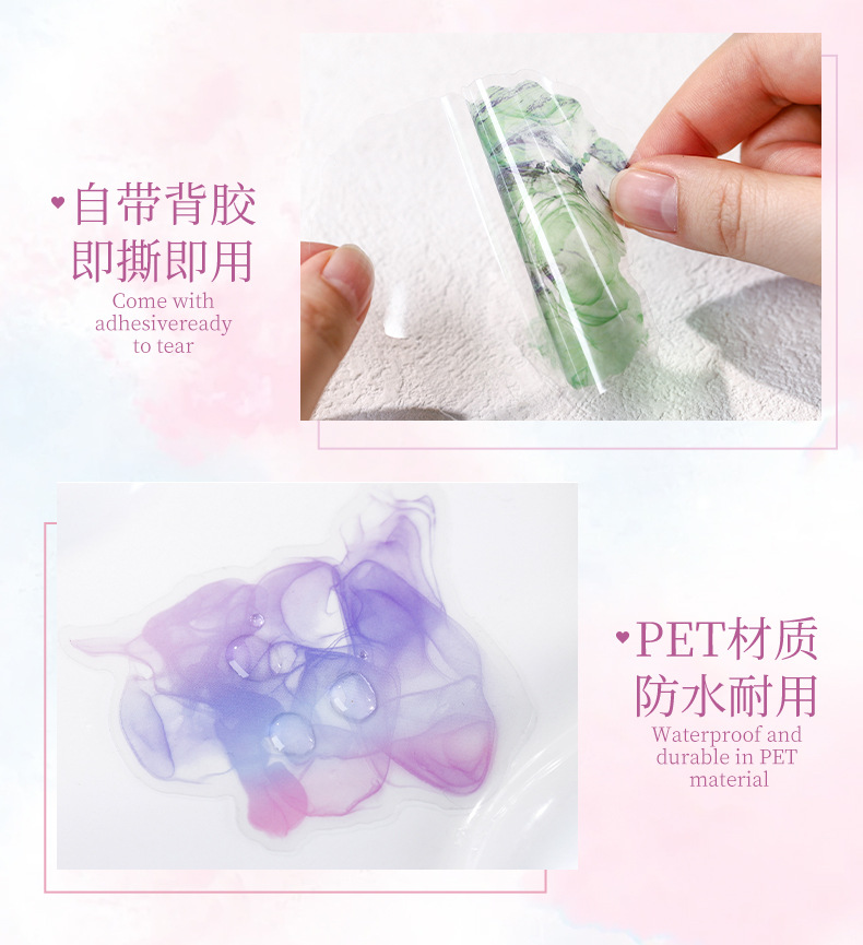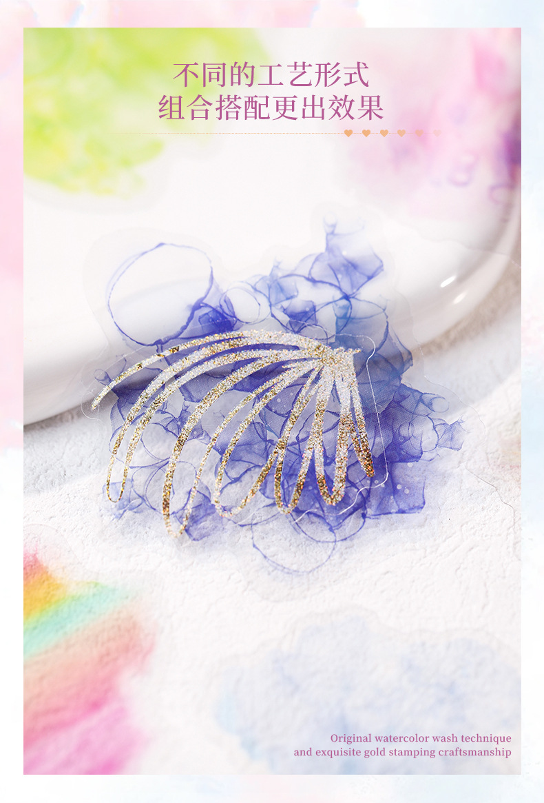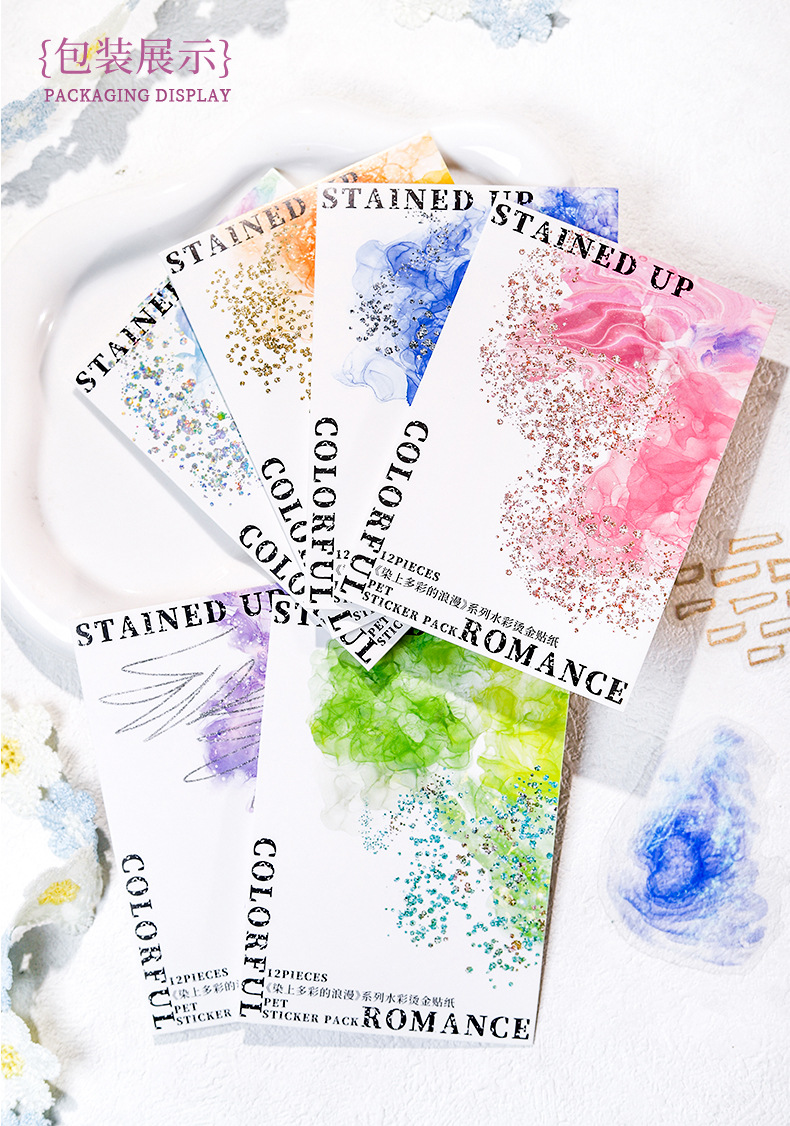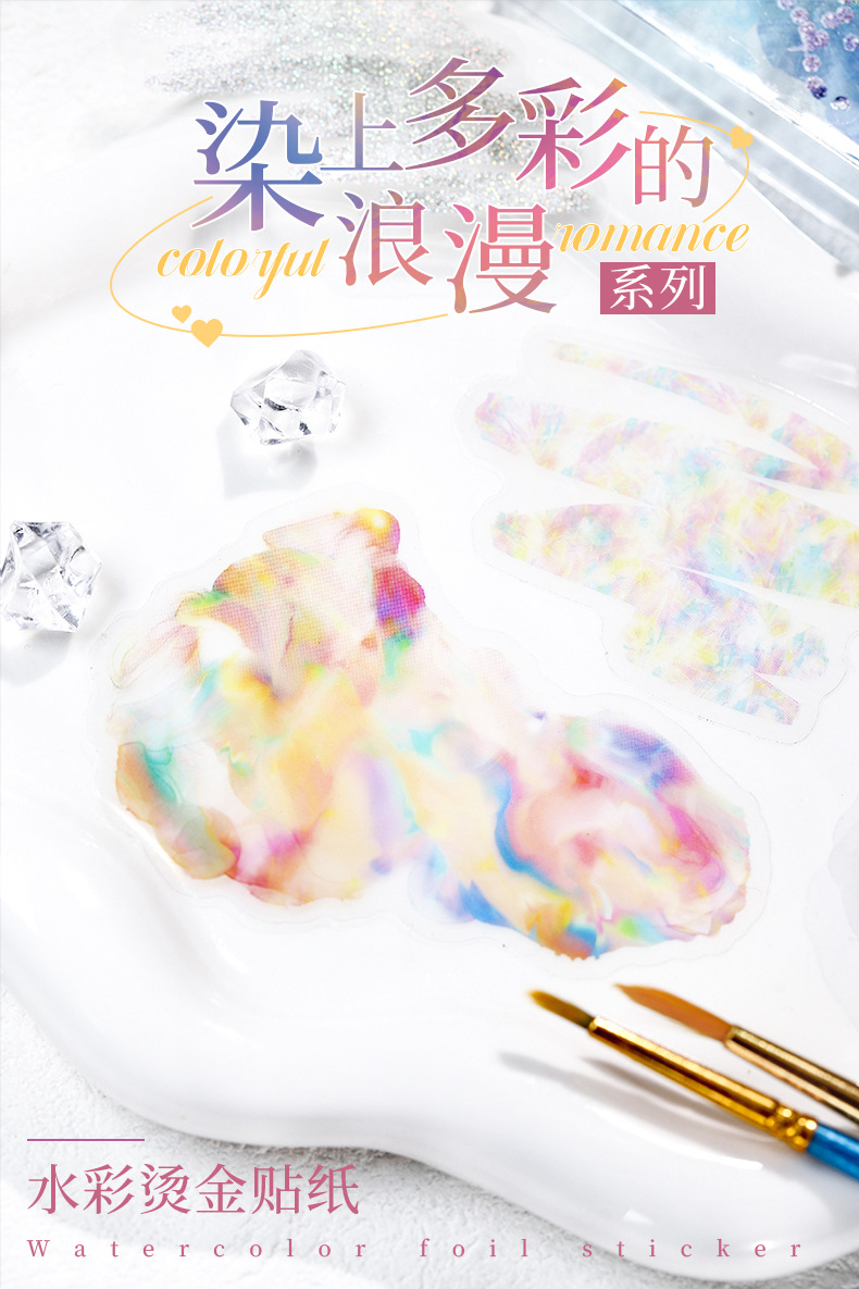 Hermoso día Acuarela mancha bronceado pegatinas teñidas con coloridas pegatinas de material de cuenta manual de la serie romántica
