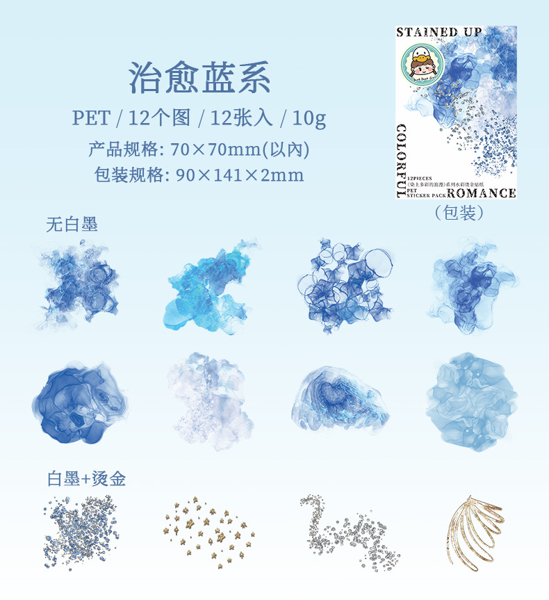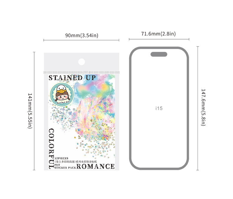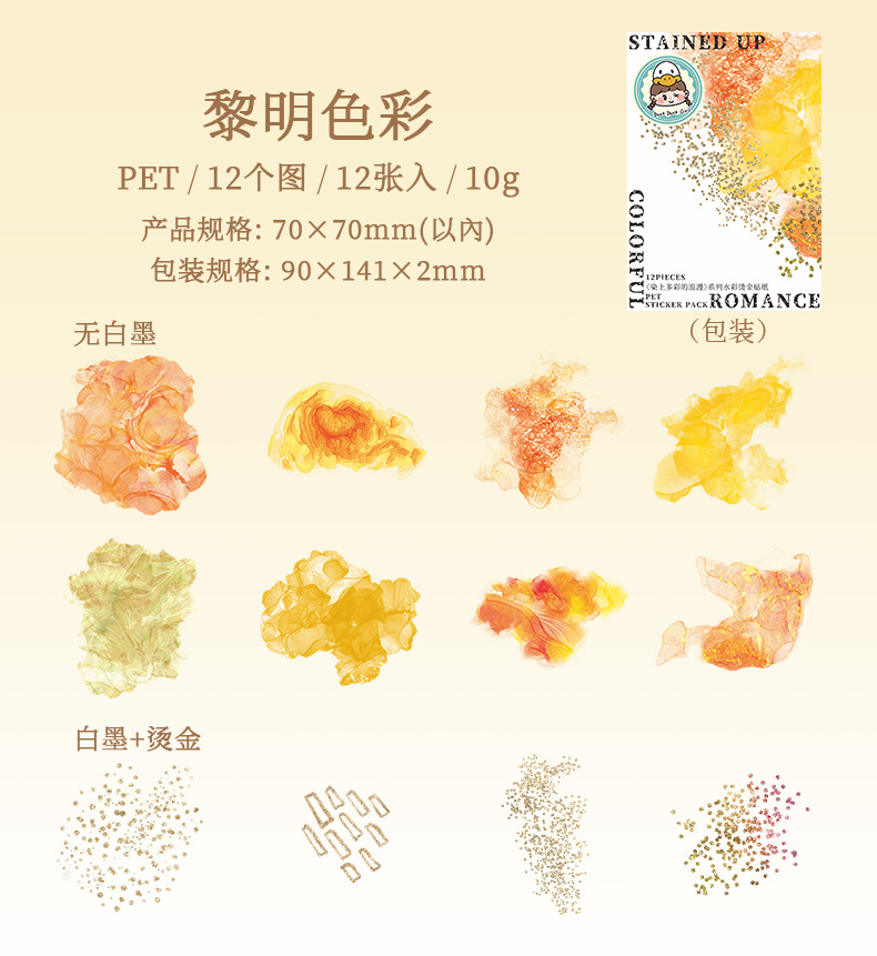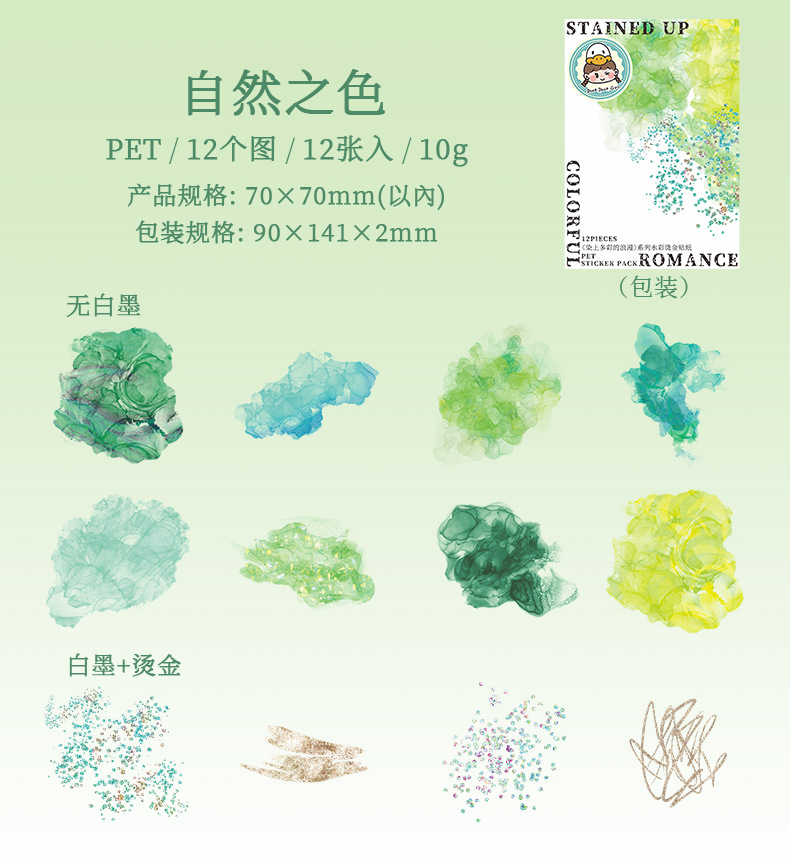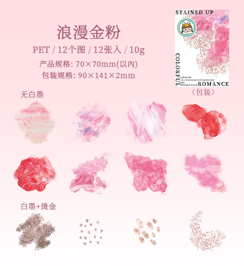 Hermoso día Acuarela mancha bronceado pegatinas teñidas con coloridas pegatinas de material de cuenta manual de la serie romántica