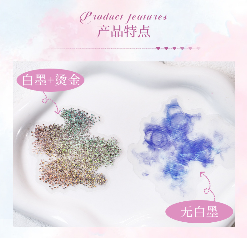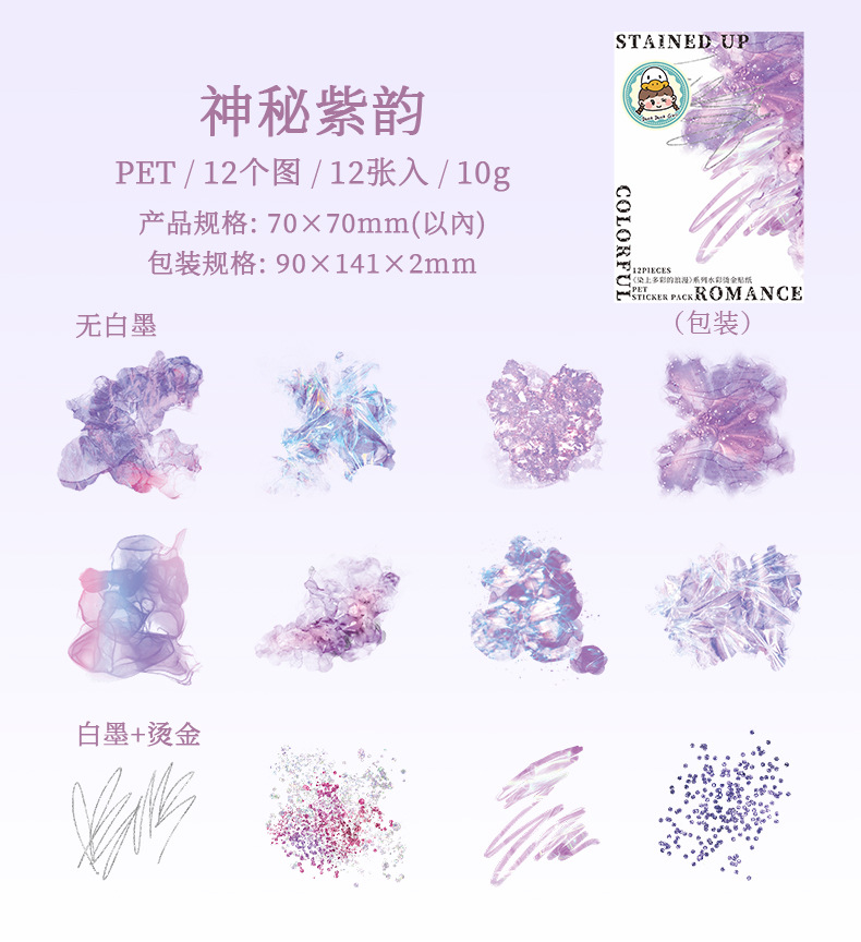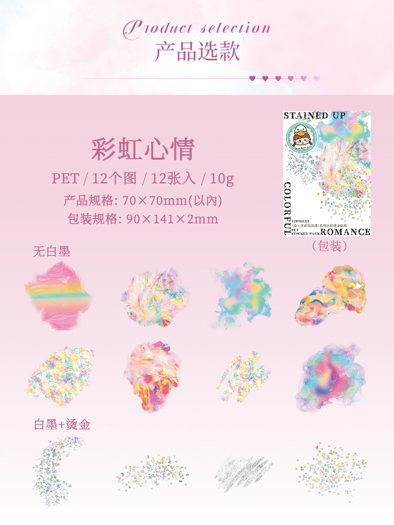 | Colores | Estado de ánimo del arco iris,Color del amanecer,Polvo de oro romántico,Cura azul,Color natural,Misteriosa rima púrpura |