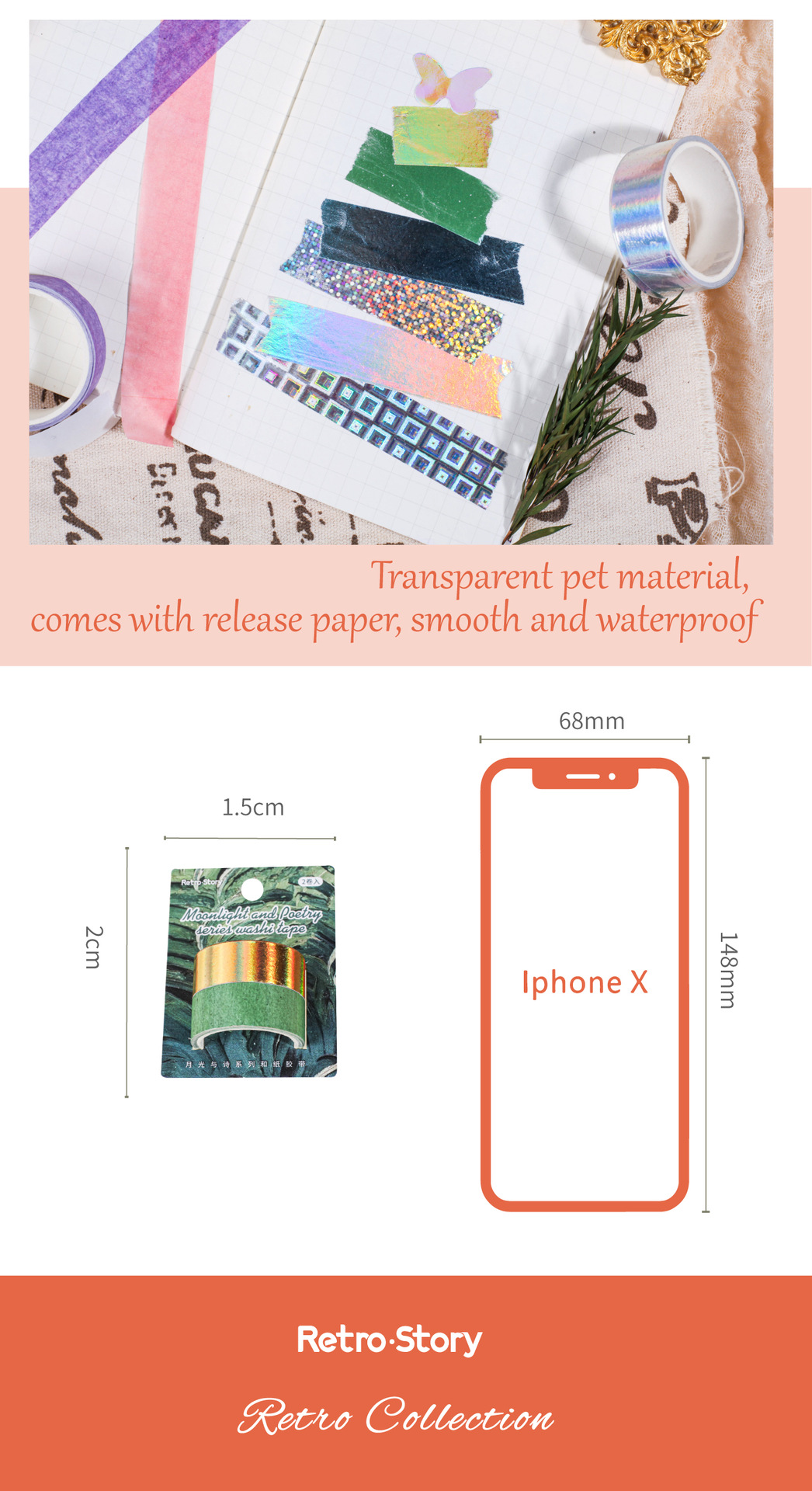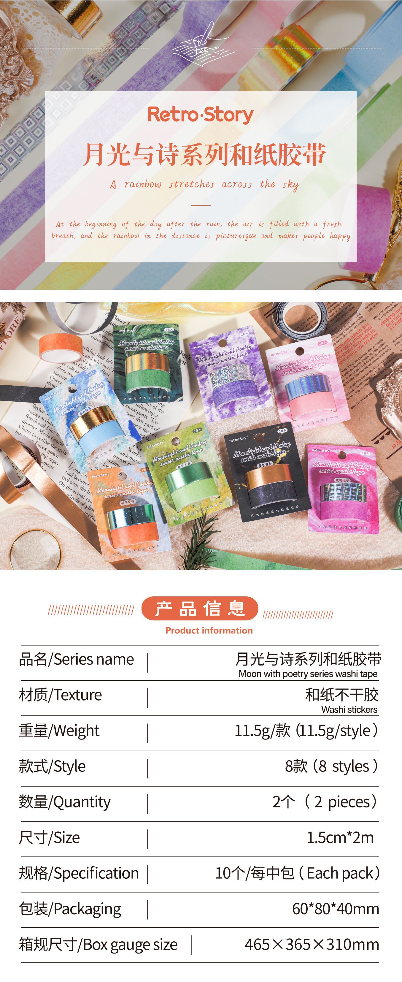 Historia de Retro y cinta de papel Moonlight and Poetry Series Student Hand Cups Diy Decoración Material de paisajismo Cinta