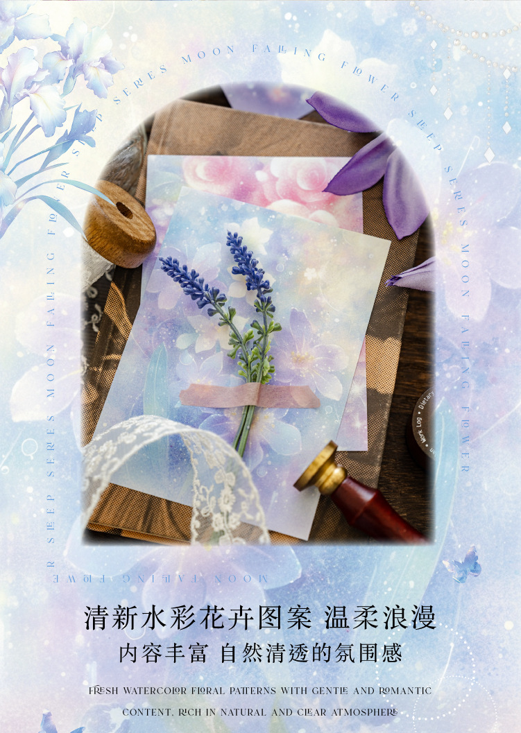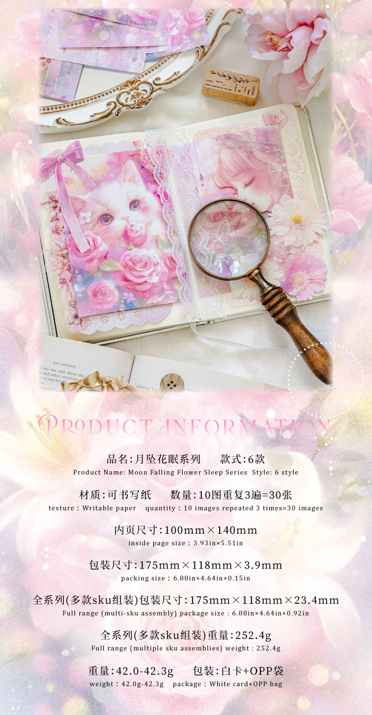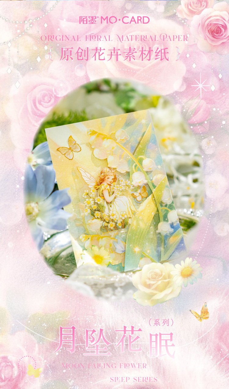 Papel de material de papel kraft blanco Mo Moonflower Colgante de luna Serie de sueño de flores Ilustración de mascotas lindo Papel de material de base de cuenta manual