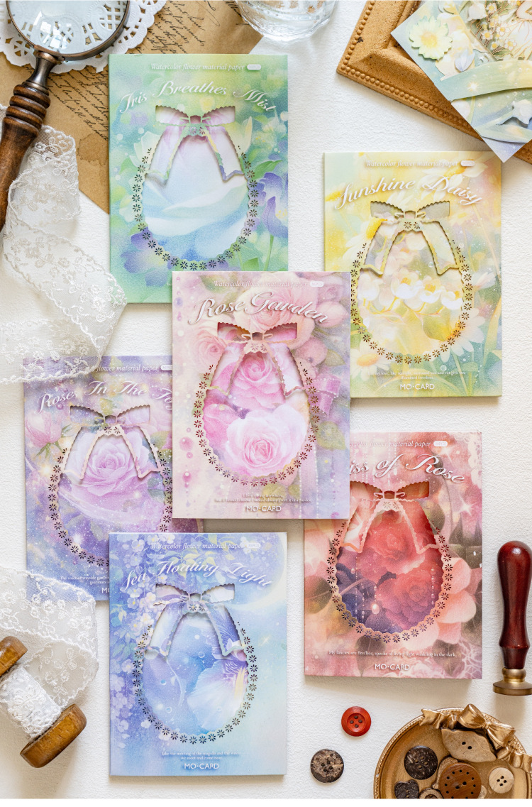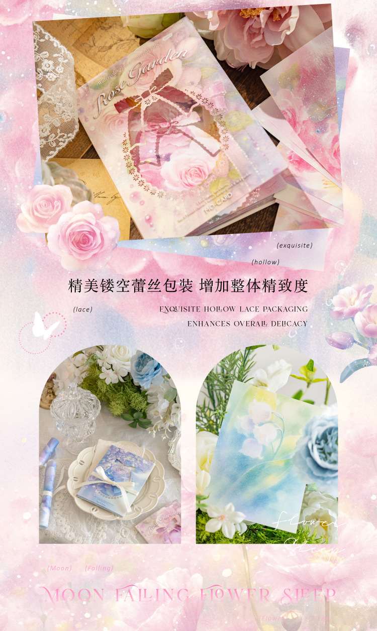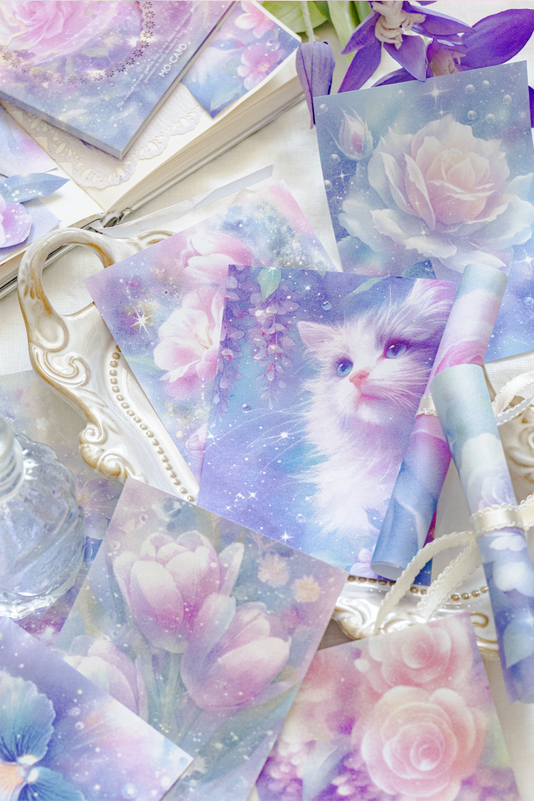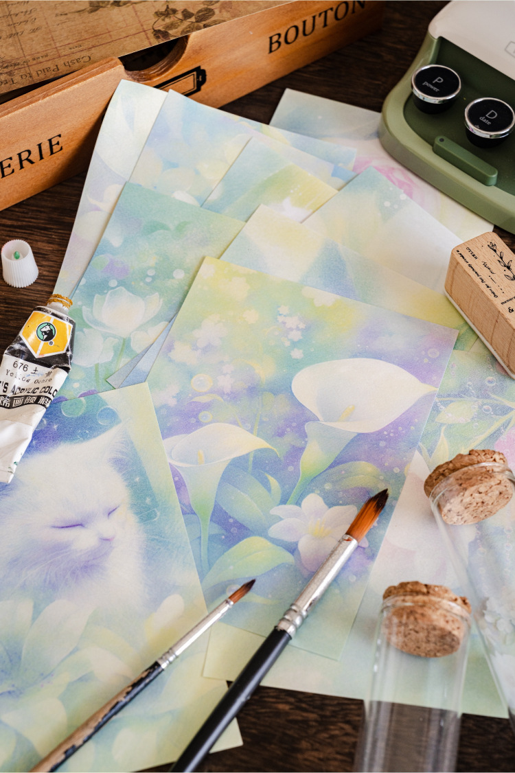 Papel de material de papel kraft blanco Mo Moonflower Colgante de luna Serie de sueño de flores Ilustración de mascotas lindo Papel de material de base de cuenta manual