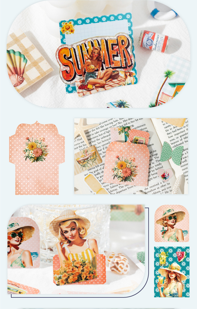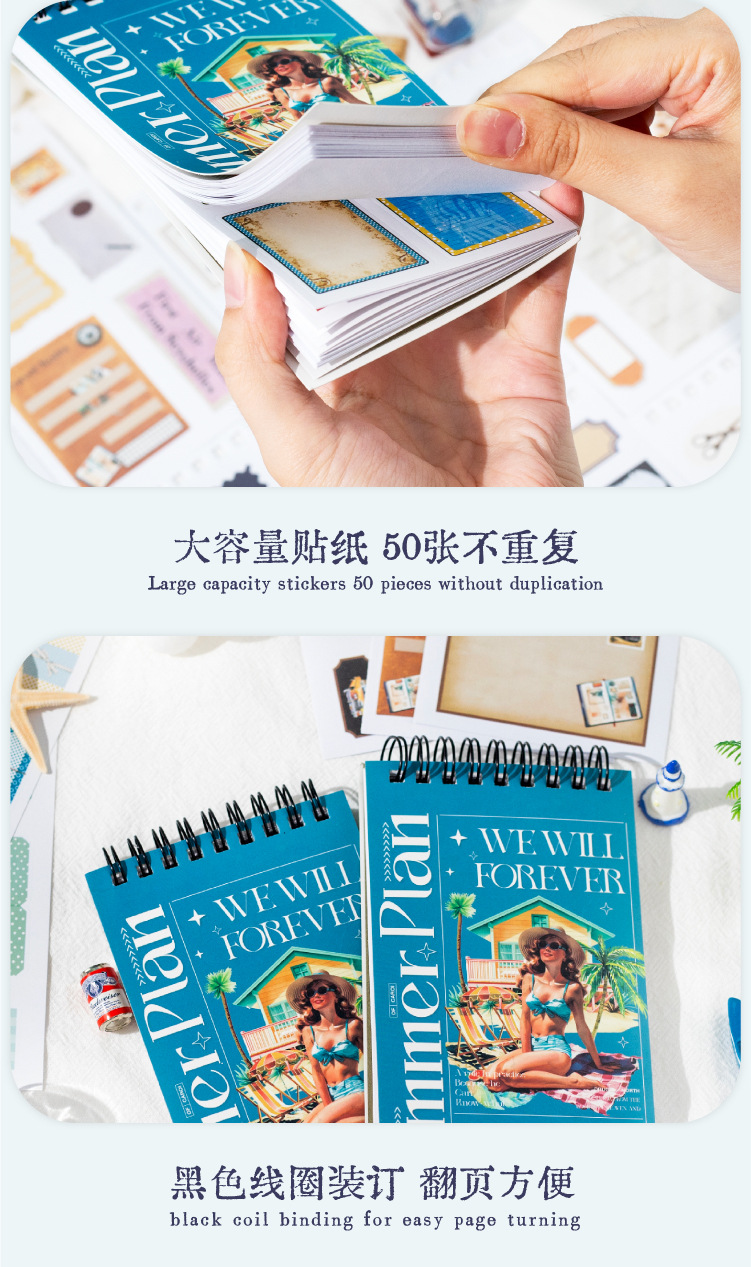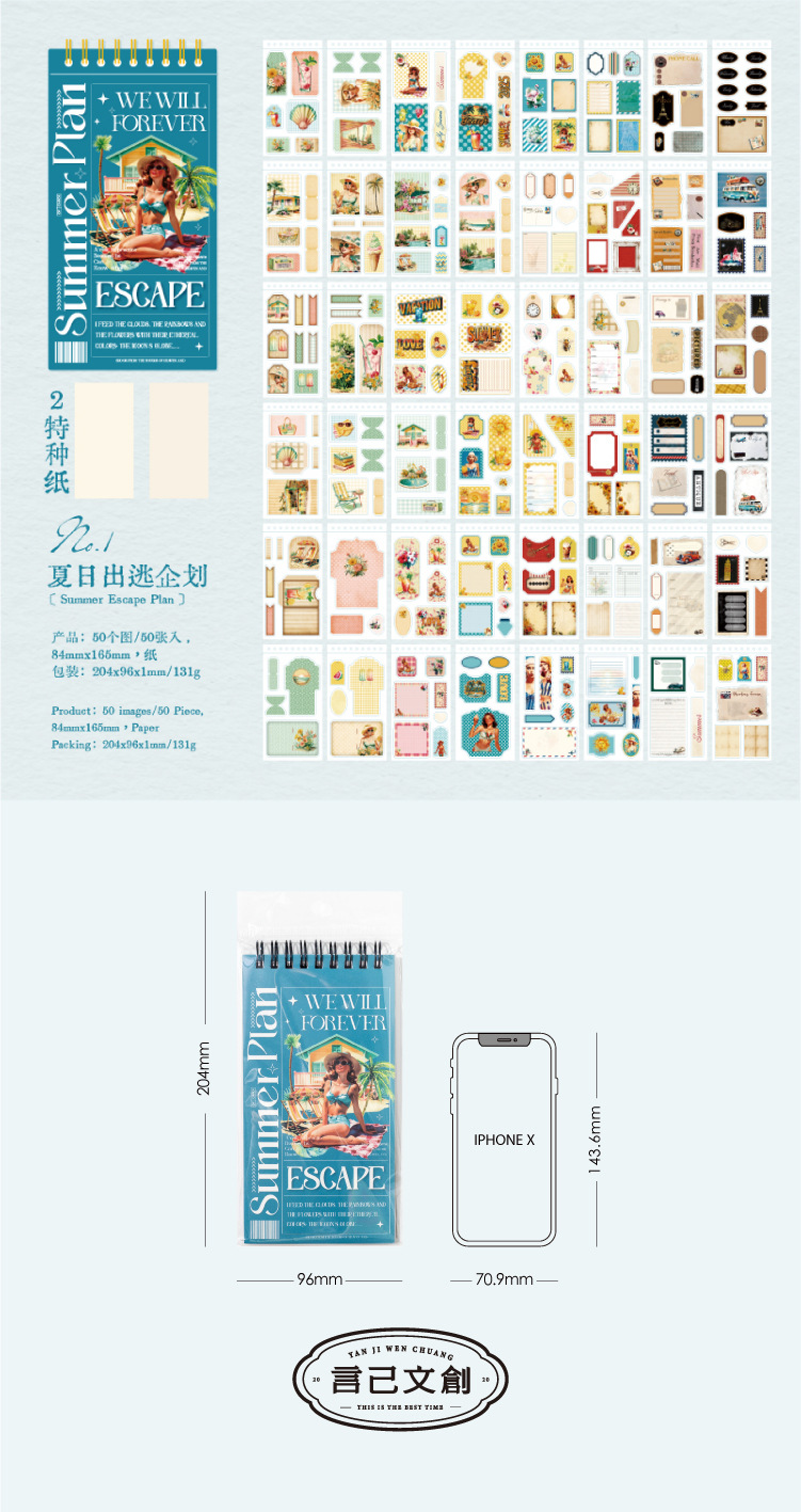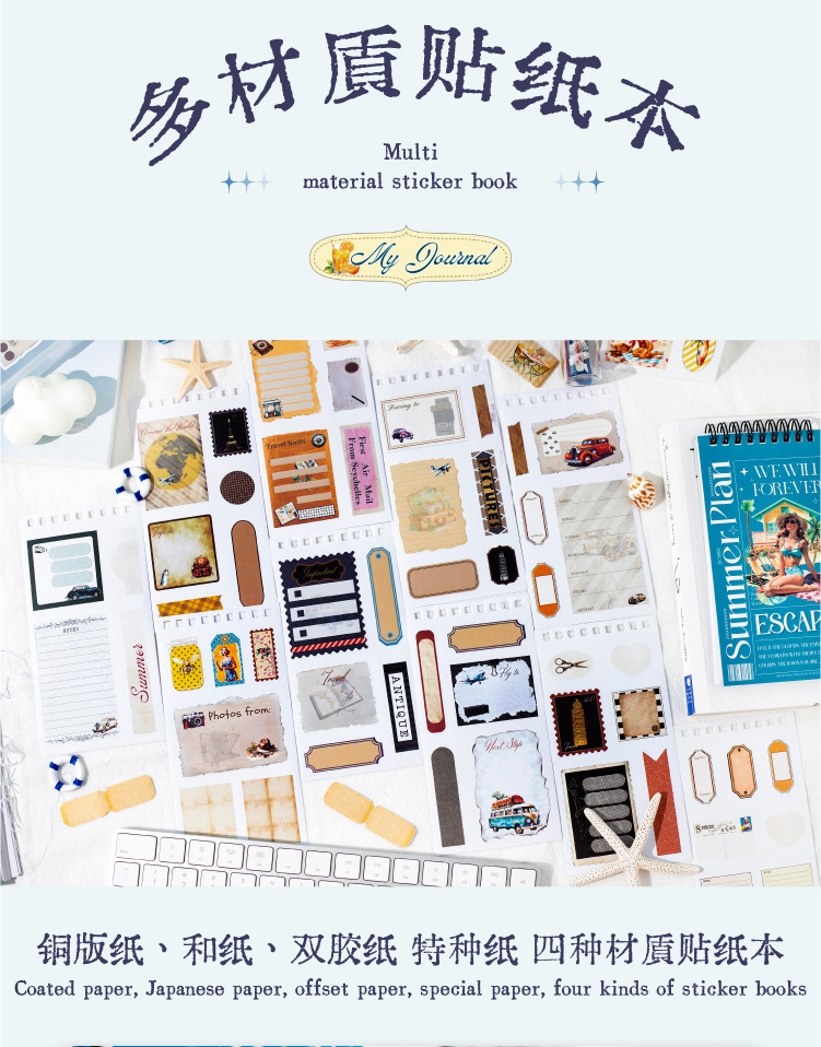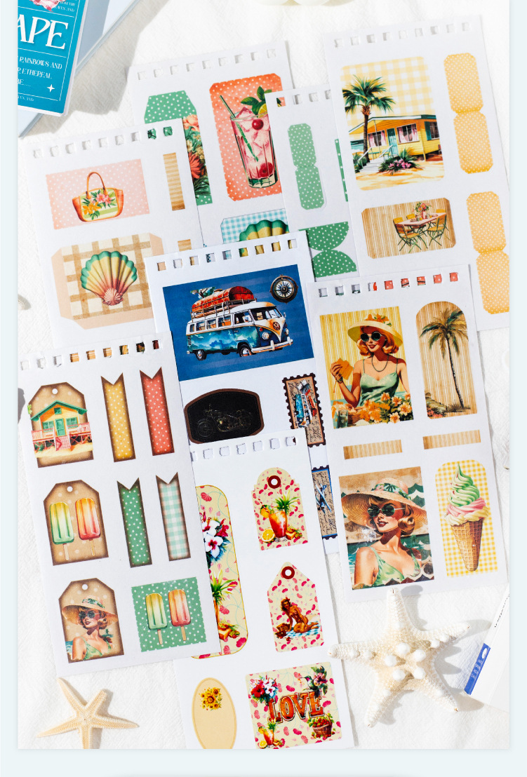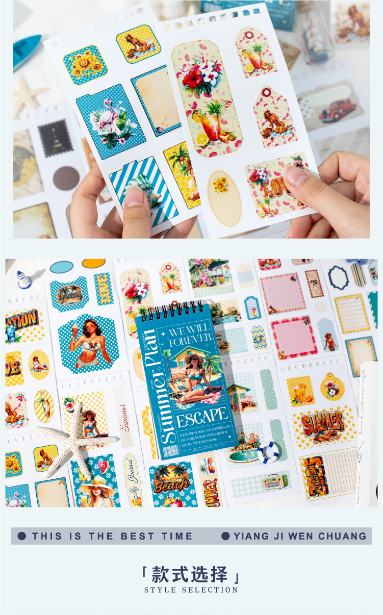 Pegatinas de palabras, serie de planificación de escape de verano, tema de vacaciones, ilustración creativa, material de cuenta manual, pegatinas de collage