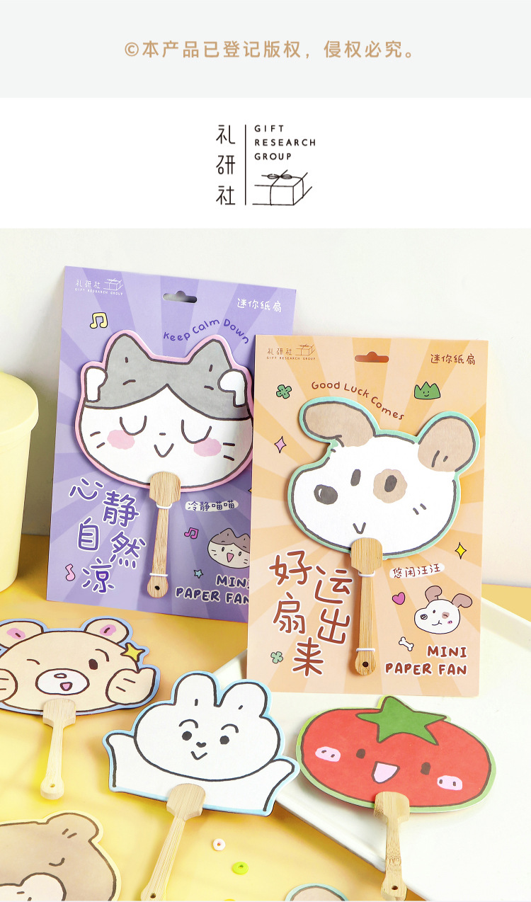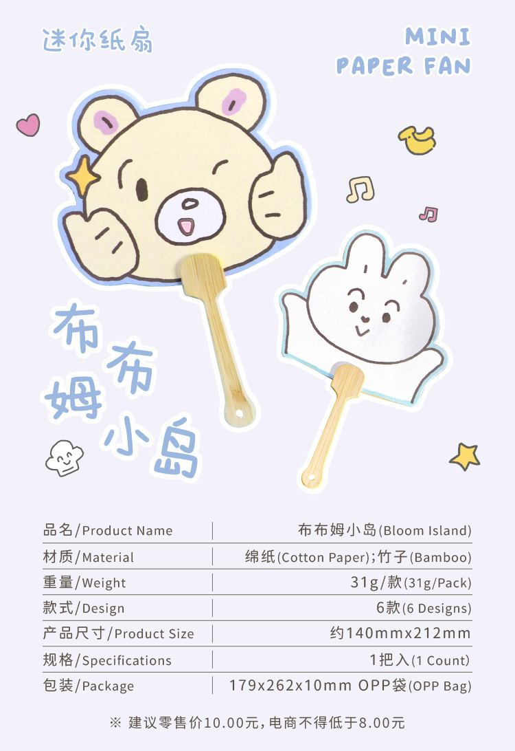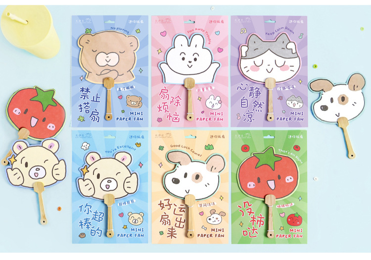 Club de investigación de rituales Mini abanico de papel de forma especial Isla Bubum Animales lindos Abanico de grupo para niños Ventilador pequeño para niños portátil