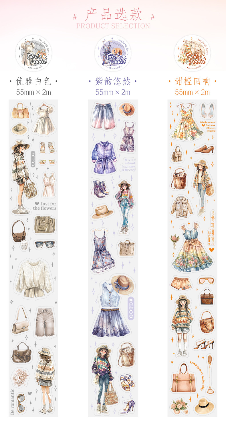 | Colores | Blanco elegante,Rima púrpura pausada,Ecos de naranja dulce,Dulce primer sueño,Tiempo de ocio,Chica Mori |
