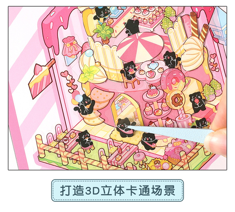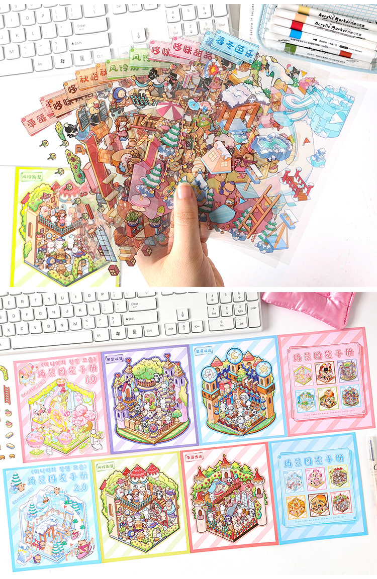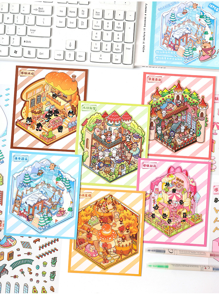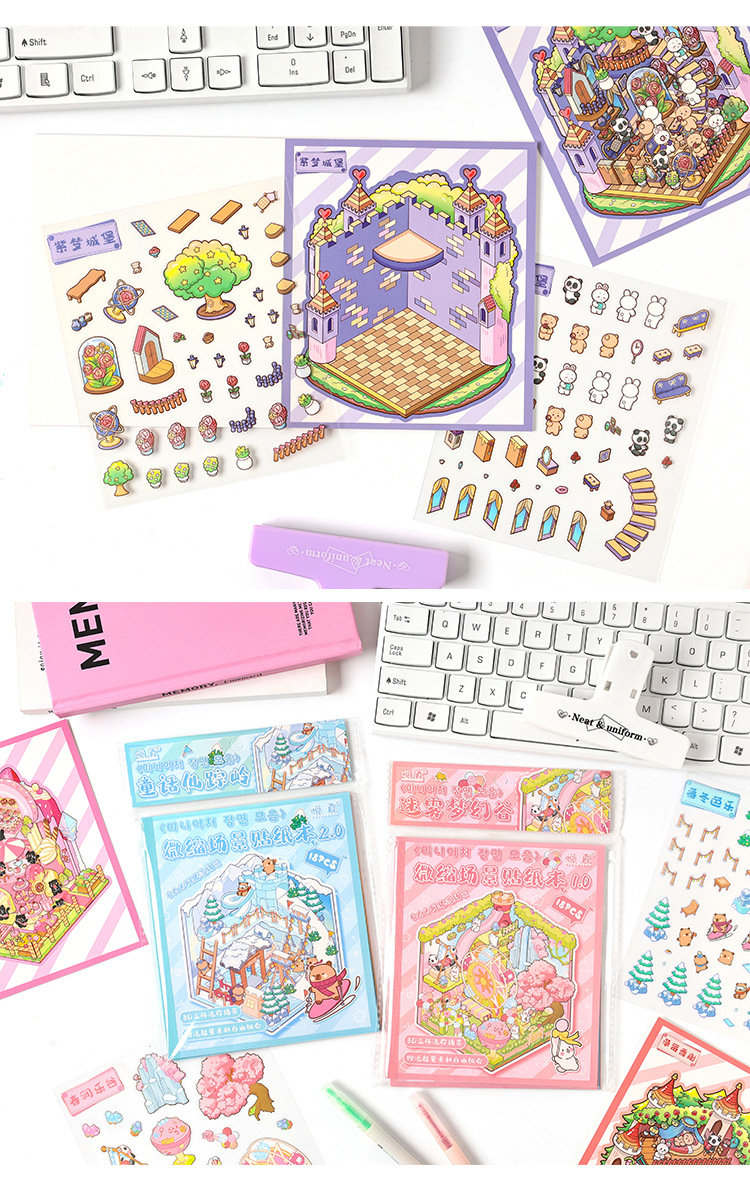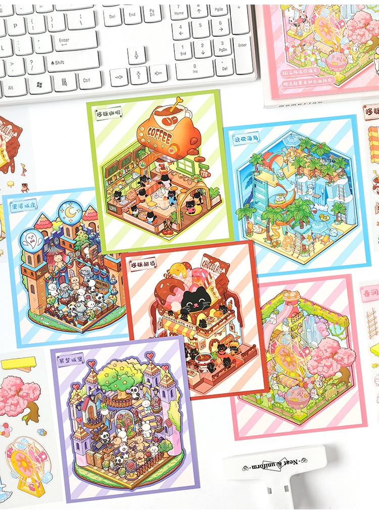 Pegatinas de paisajismo en 3D de Yuezhen, película de corte de dibujos animados de vacaciones felices, descompresión de pegatinas de paisajismo de rompecabezas de bricolaje para niños