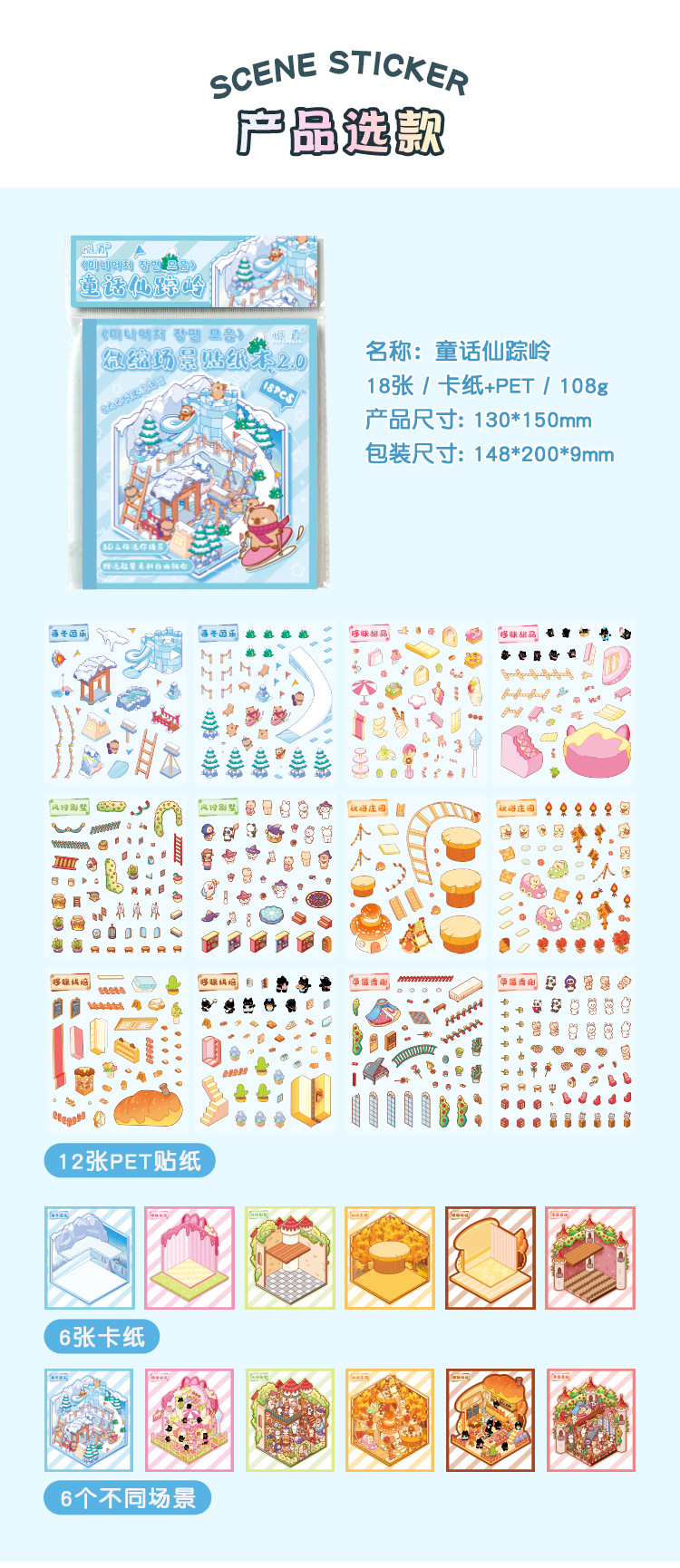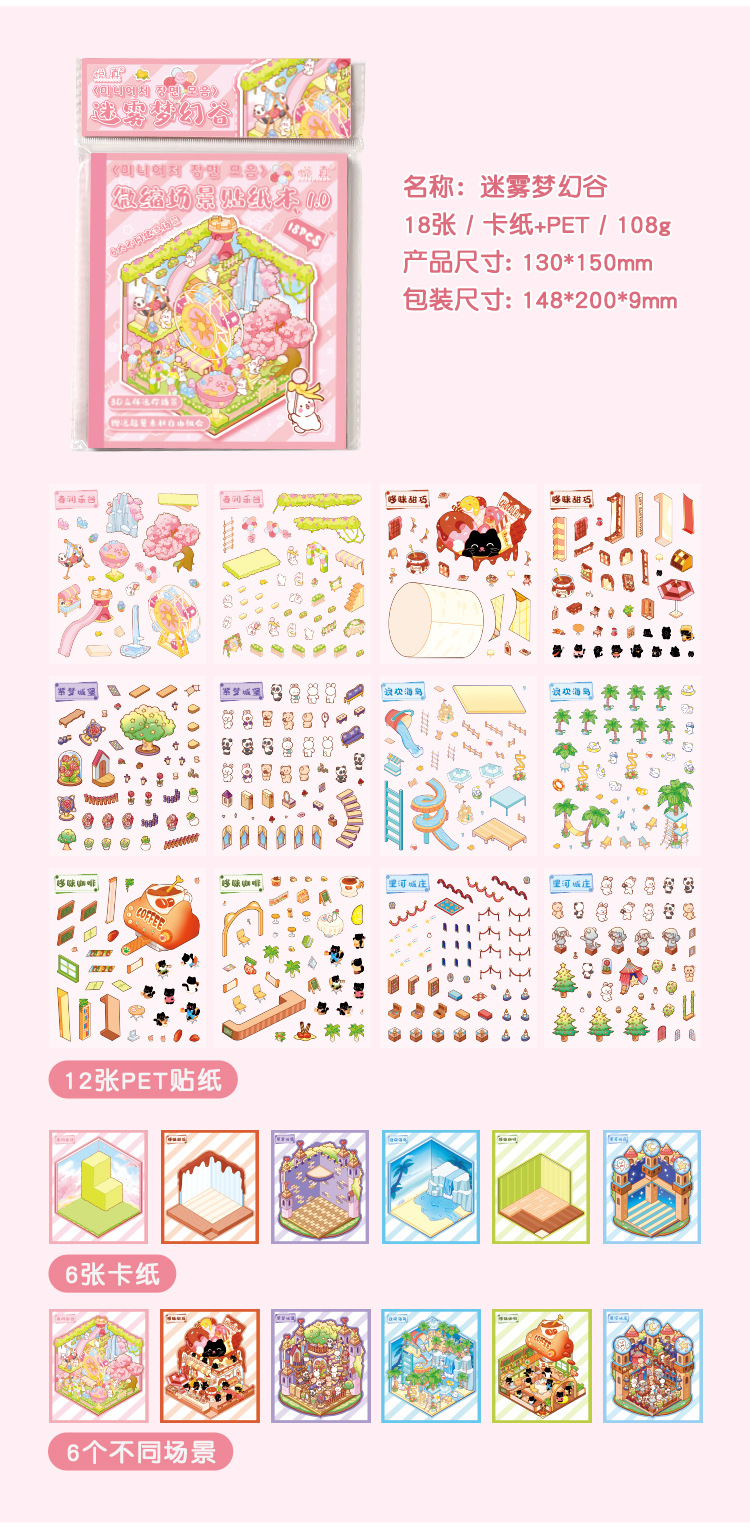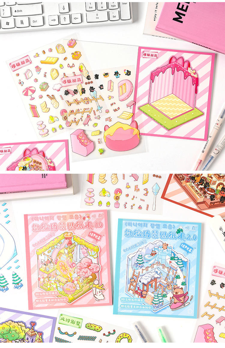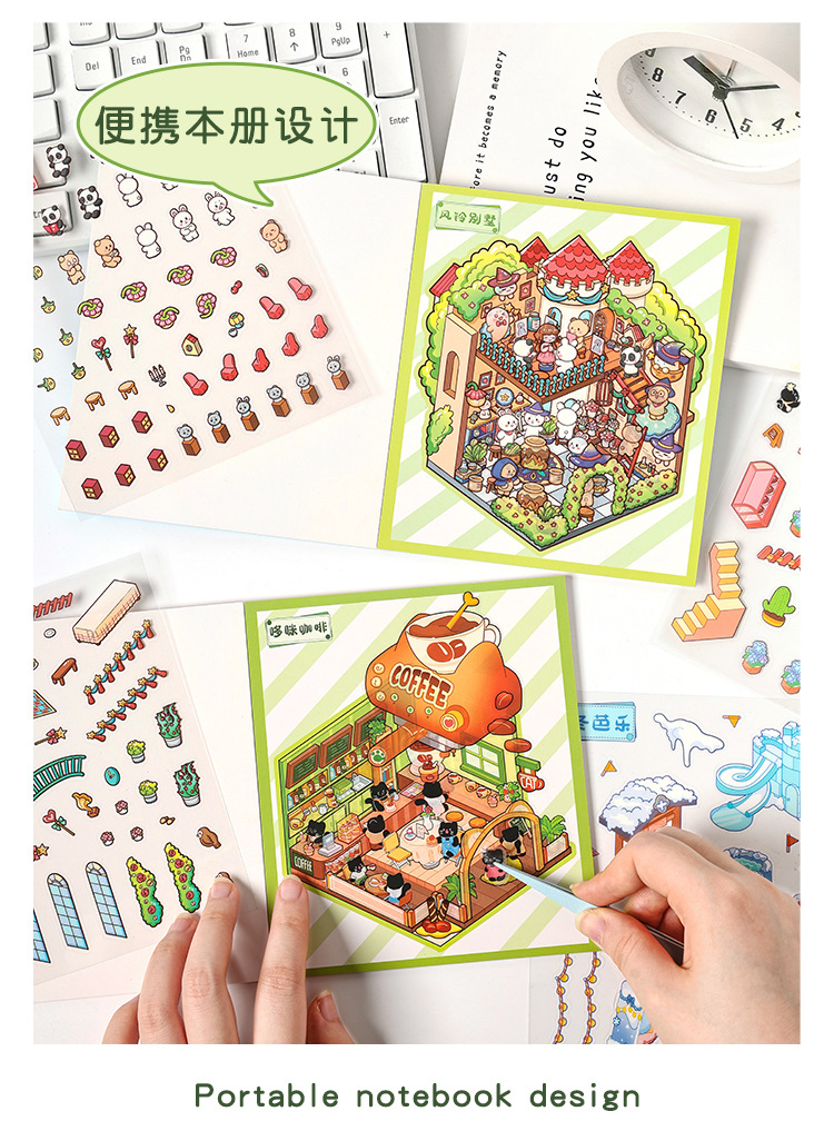Pegatinas de paisajismo en 3D de Yuezhen, película de corte de dibujos animados de vacaciones felices, descompresión de pegatinas de paisajismo de rompecabezas de bricolaje para niños
