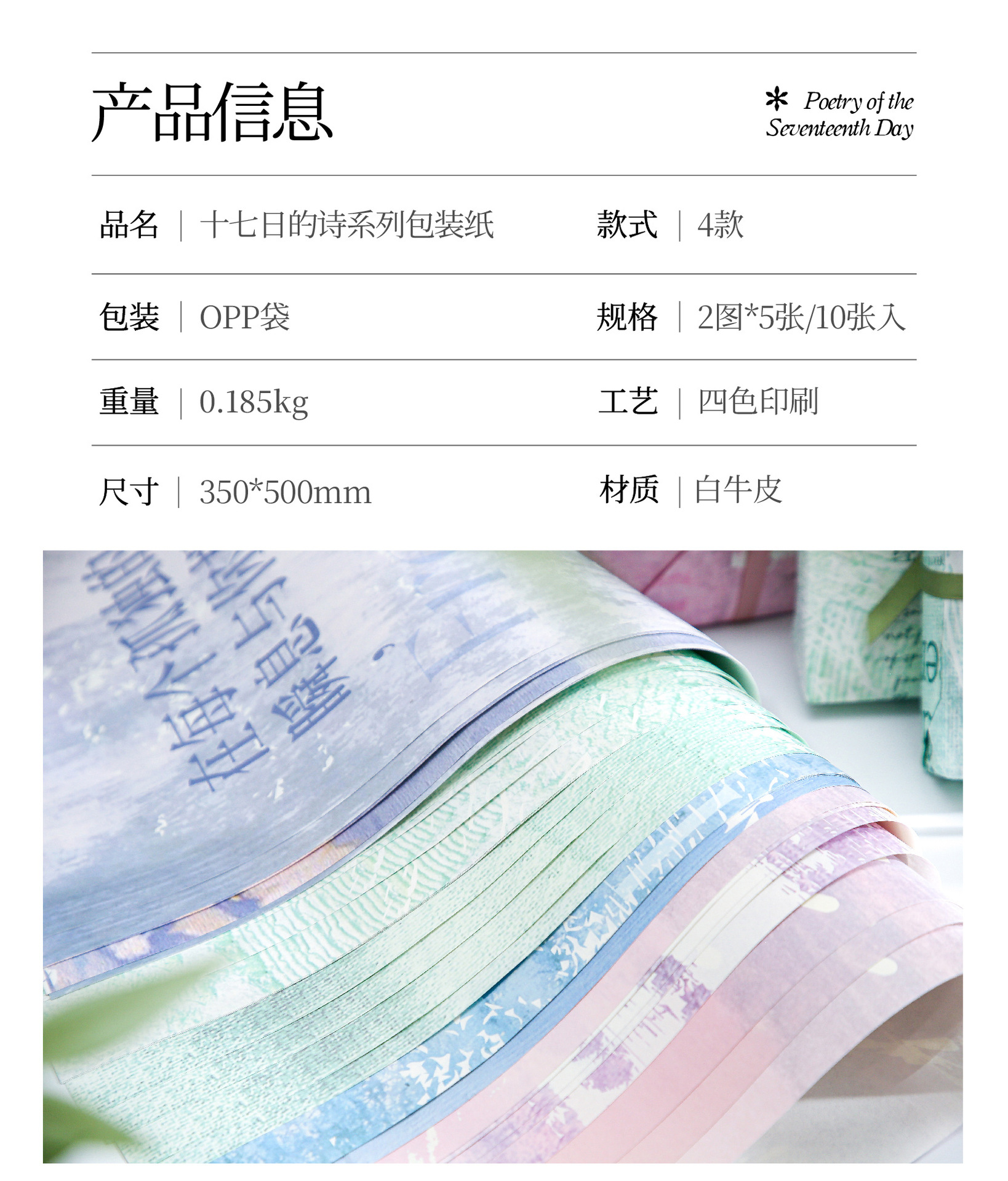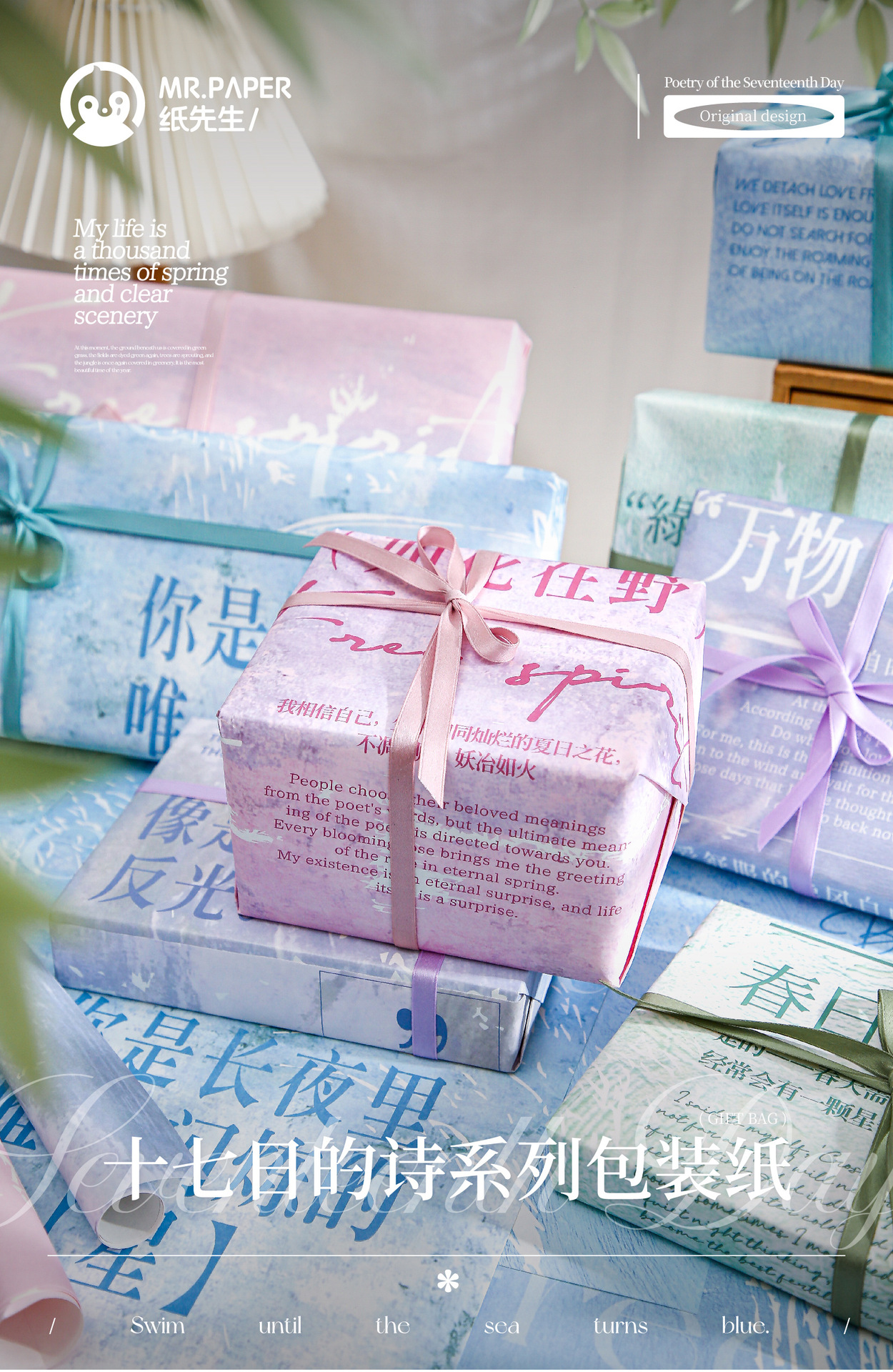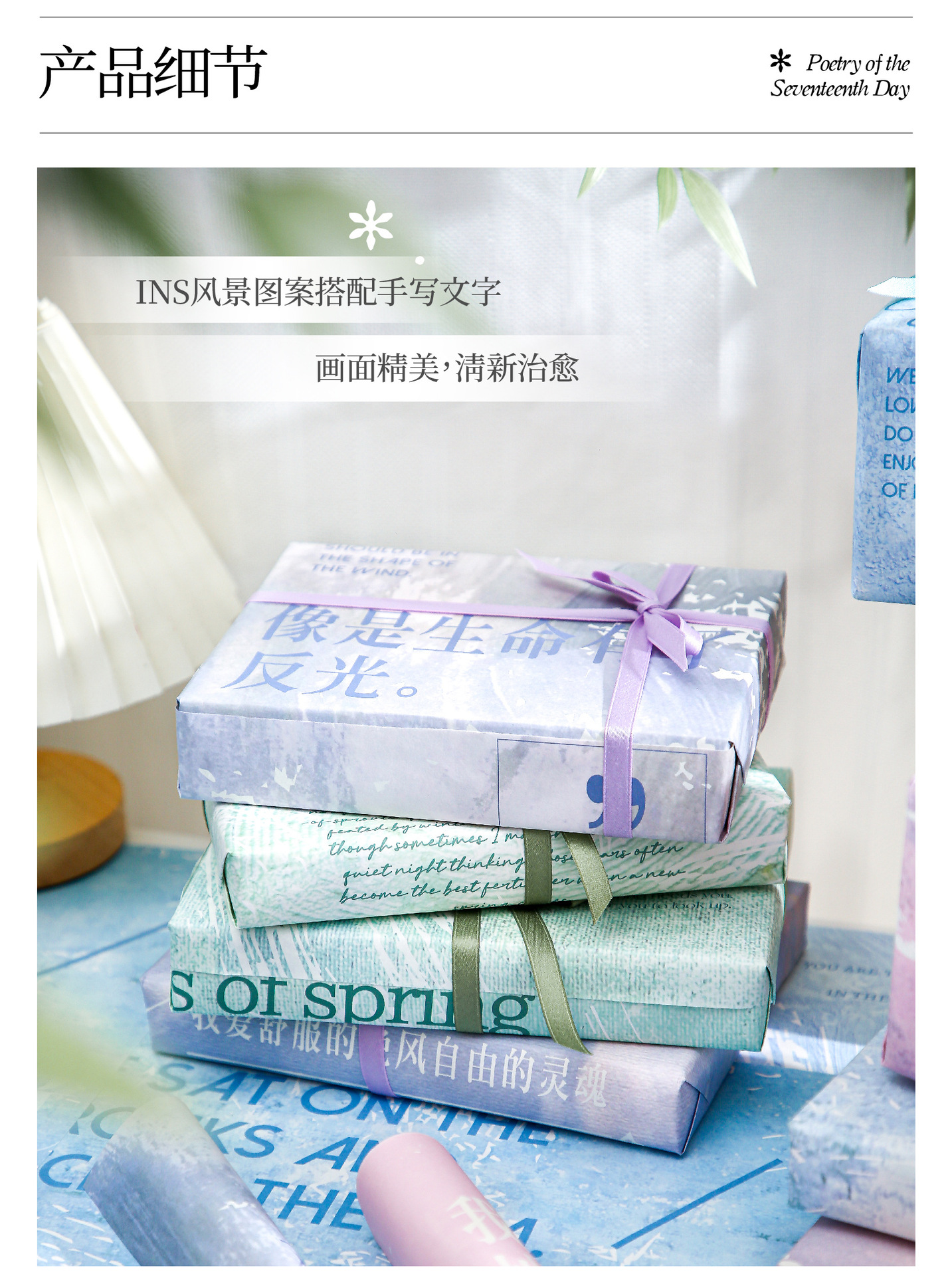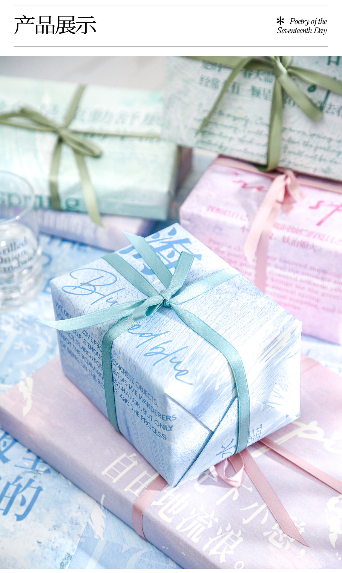 Mr. Paper ins papel de embalaje de texto poema de 17 días papel de embalaje de regalo moderno de gran tamaño papel de embalaje de flores