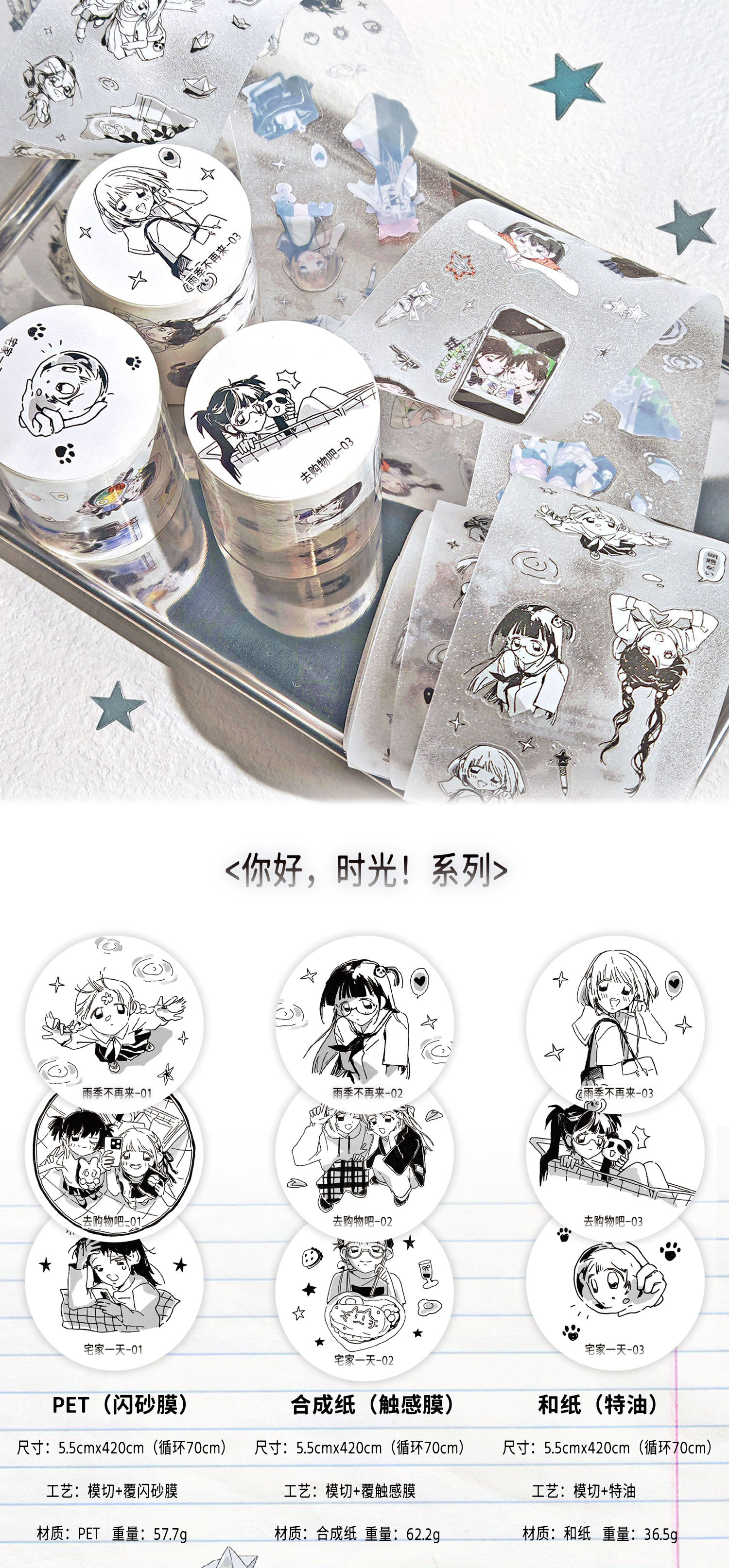 AGUGUins Wind Flash Sand Tape ¡Hola, tiempo! Serie de personajes animados cuentas DiDi pegatinas cinta adhesiva