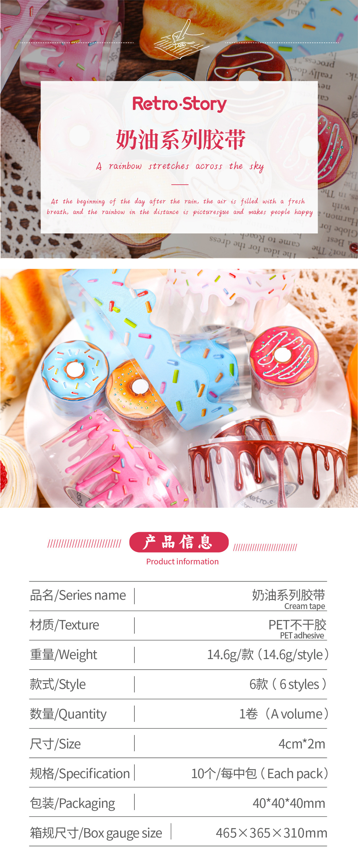 Retro Story Cream Theme Tape Series Cream Handbookdiy Frame Landscape Waterproof PET Tape