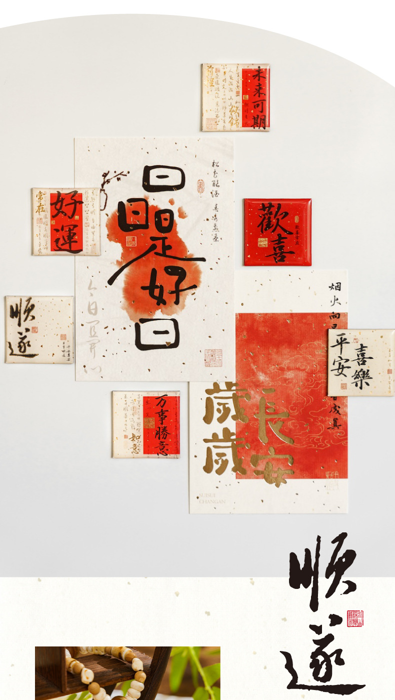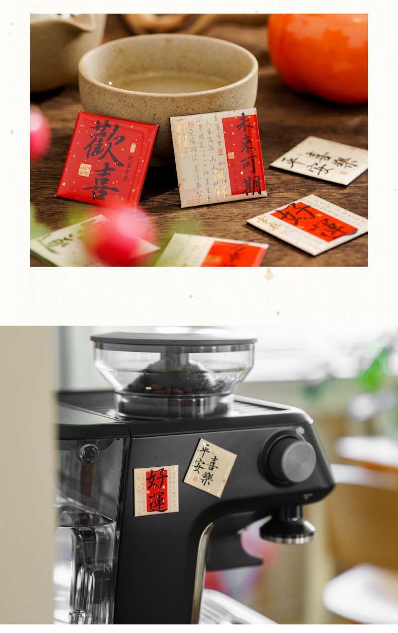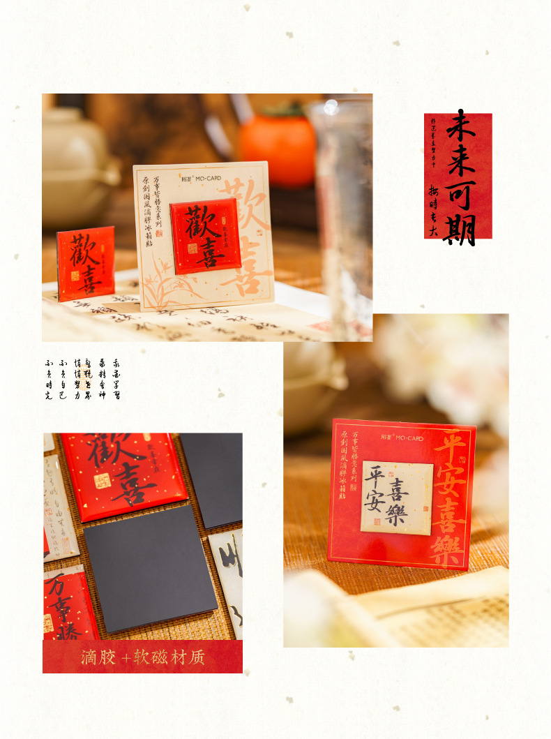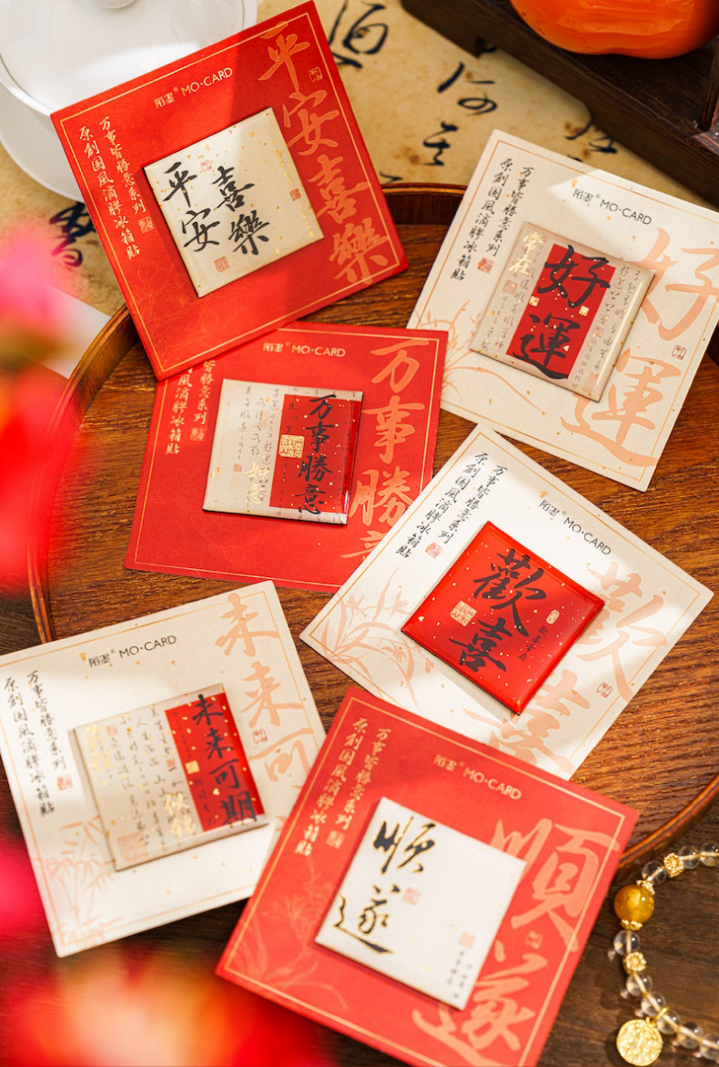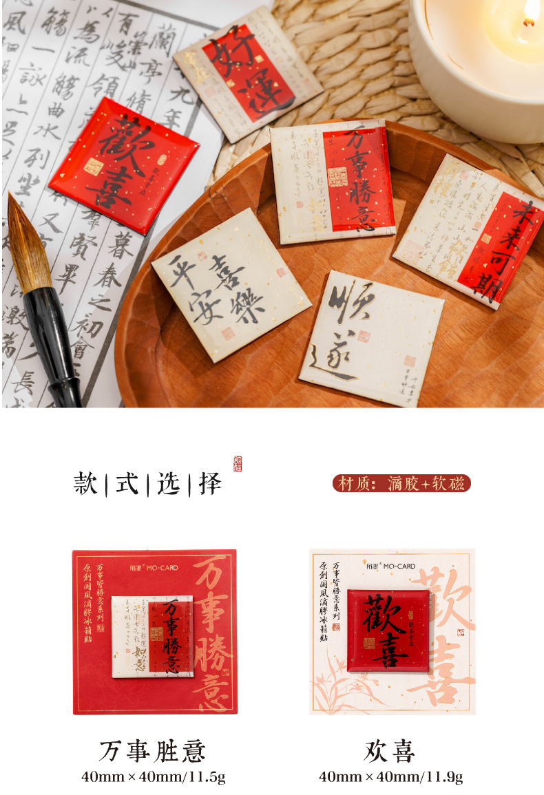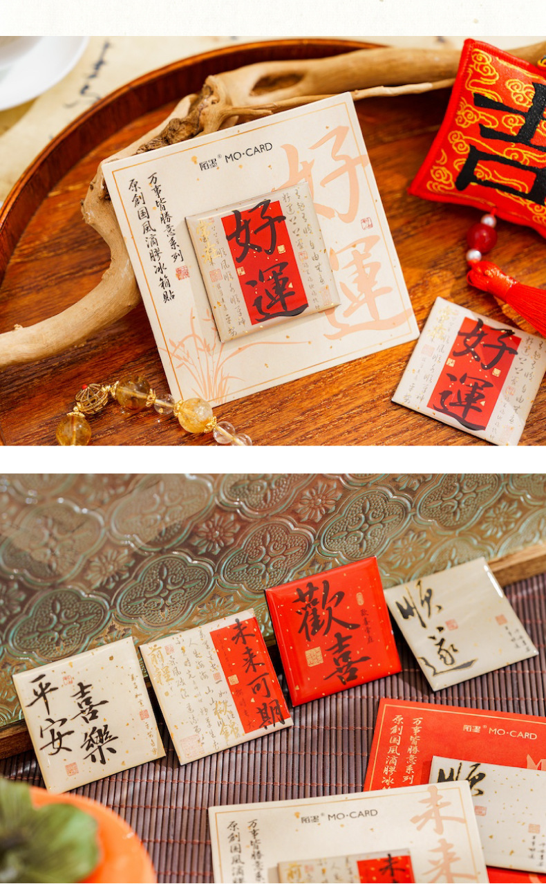 Mo tinta estampado pegatinas de refrigerador de goteo de oro todo es una serie de bendiciones de estilo nacional de texto adsorción pegatinas de decoración de refrigerador