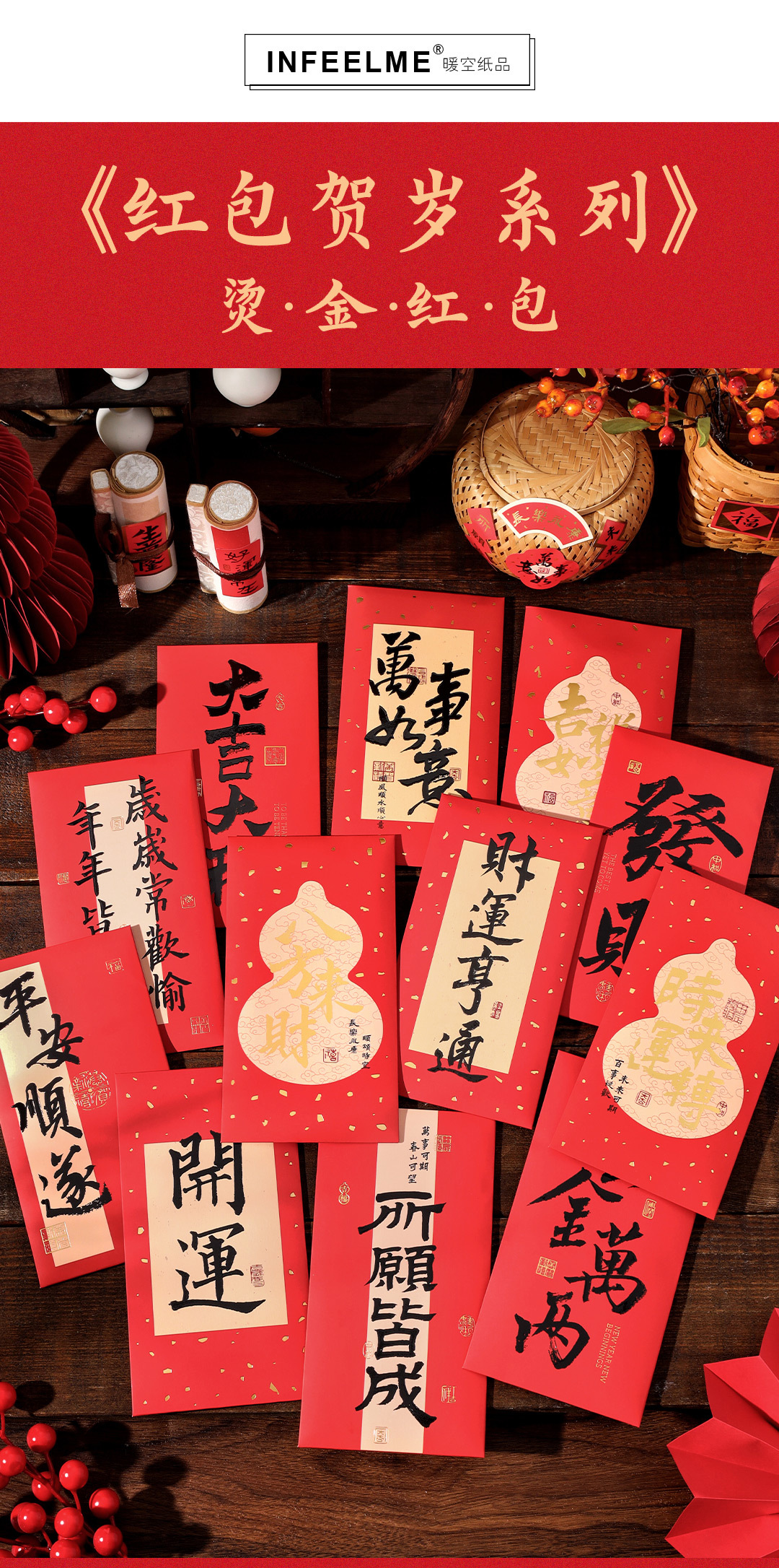 Infeel.Me sobre rojo de oro sobre rojo de Año Nuevo serie de impresión UV del Festival de Primavera sobre rojo general