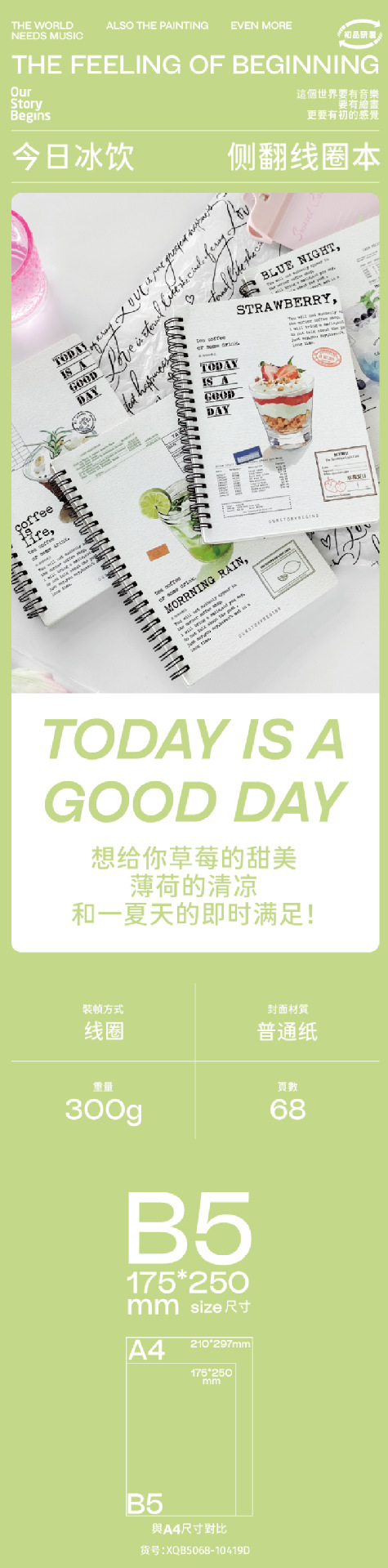Primero producto B5 cuaderno de bobina simple ins viento alimentación impresión de color cuaderno de mano de registro de estudiantes cuaderno de línea horizontal