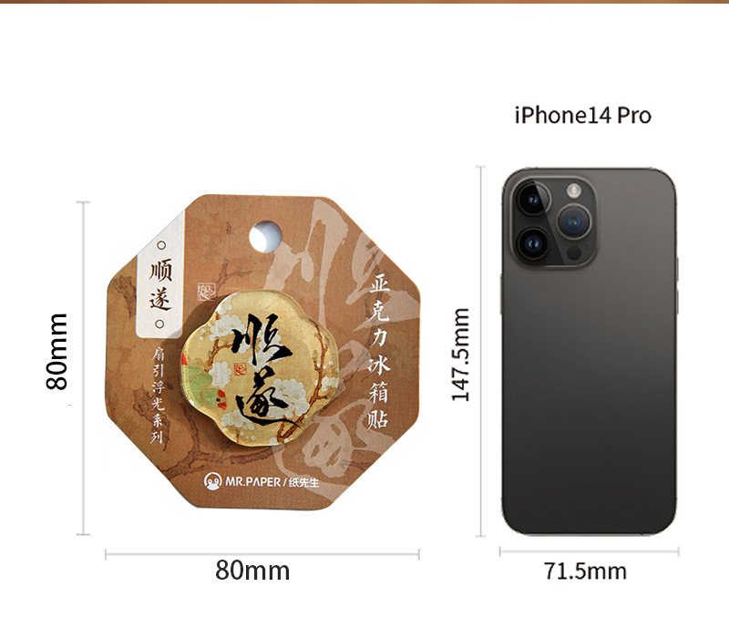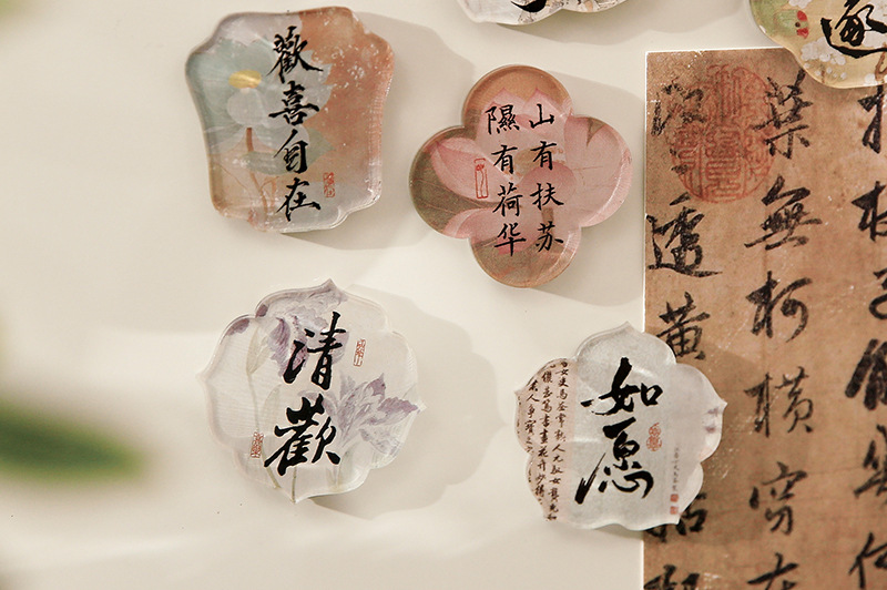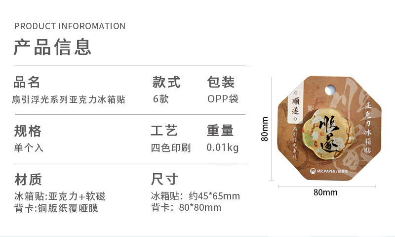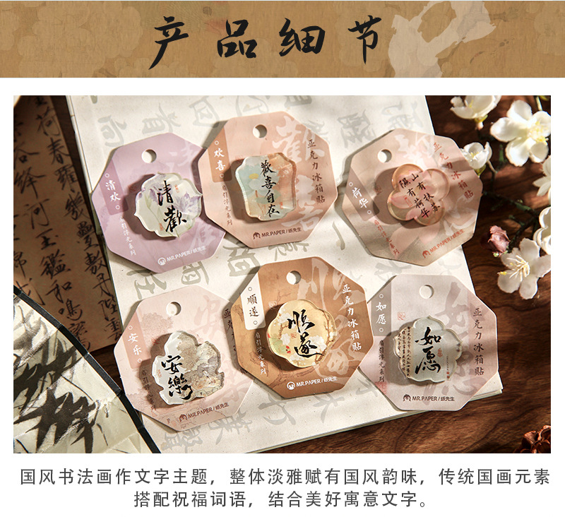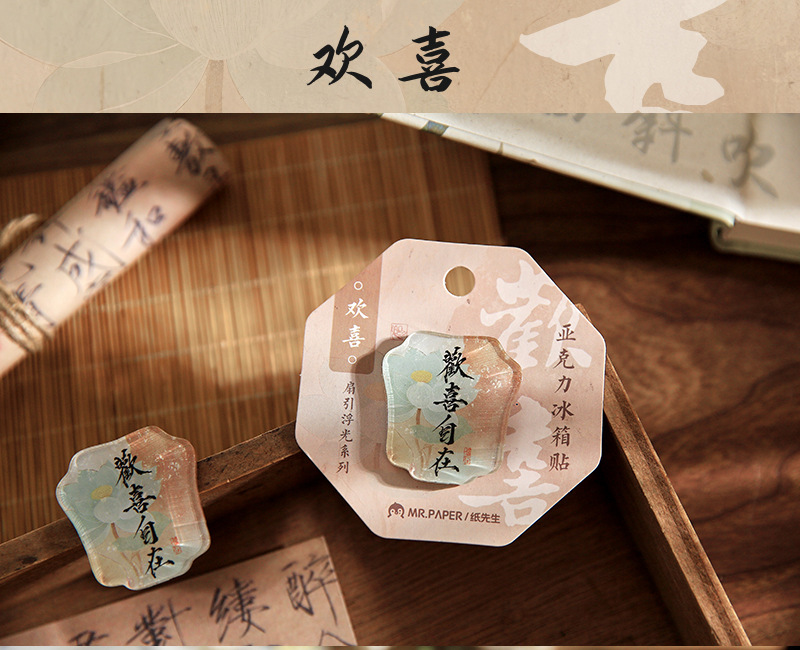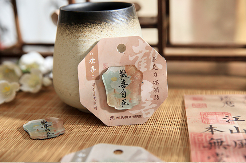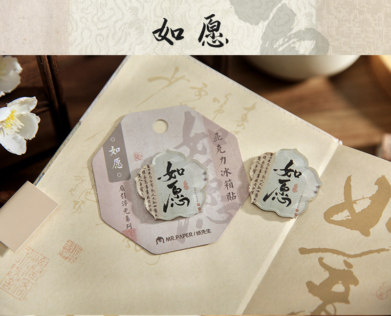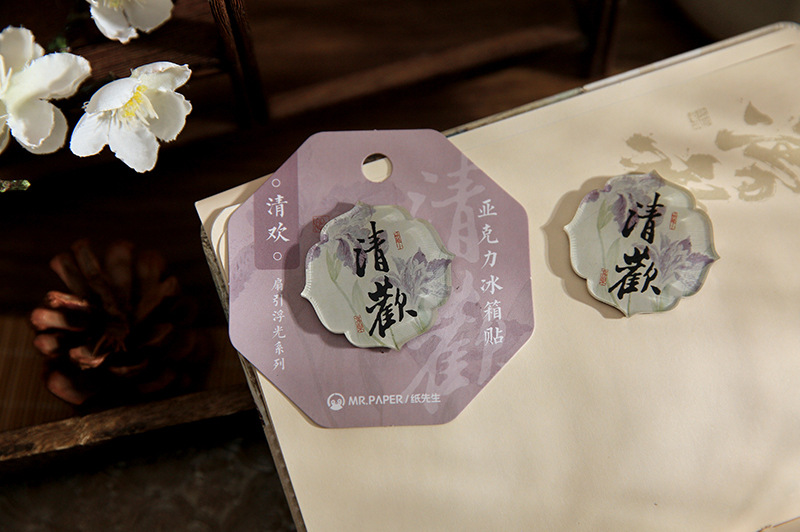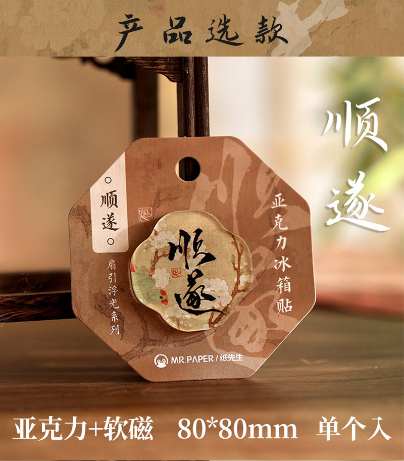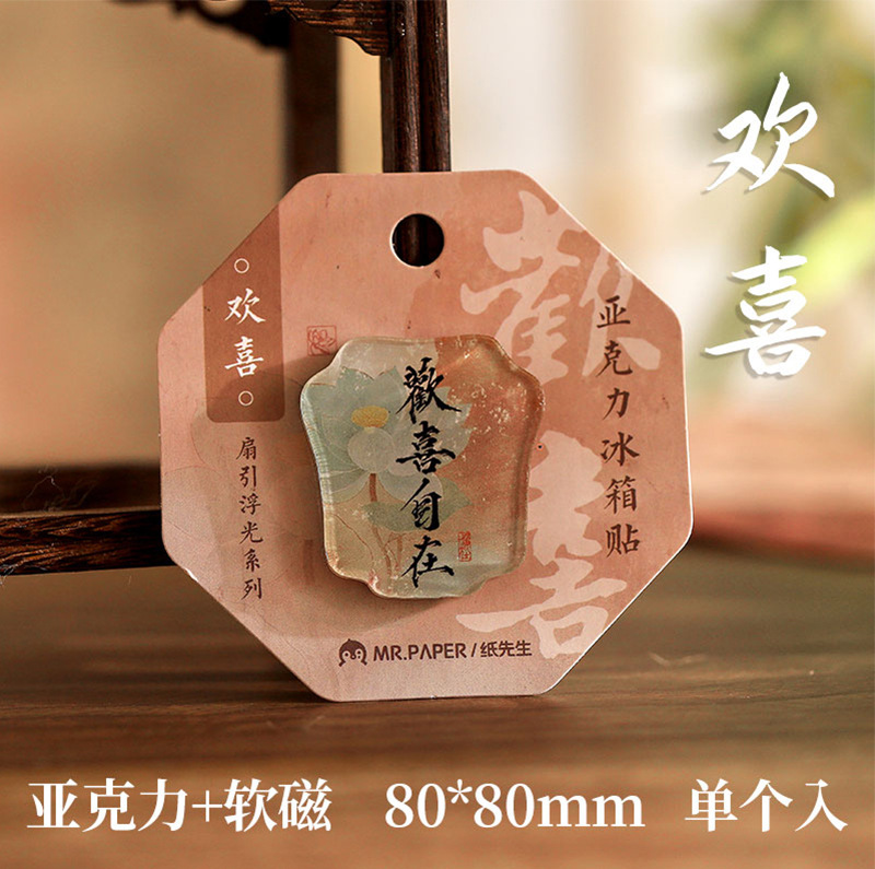 Papel Sr. acrílico pegatinas de refrigerador ventilador de luz flotante serie de caligrafía antiguo tipo especial pegatinas de refrigerador de absorción magnética