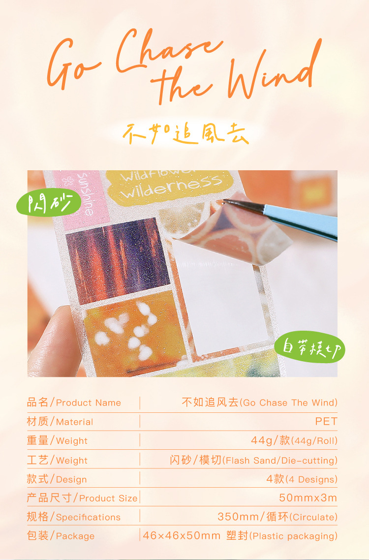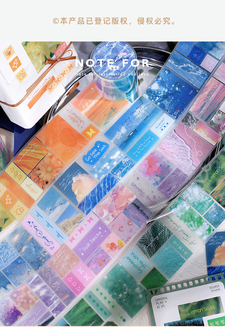 NOTA PARA la cinta adhesiva PET de corte de troquela de arena flash es mejor que perseguir el viento para frescar la cinta adhesiva de la tienda de mano de ensueño paisaje