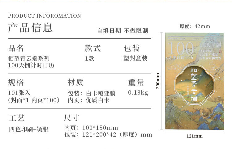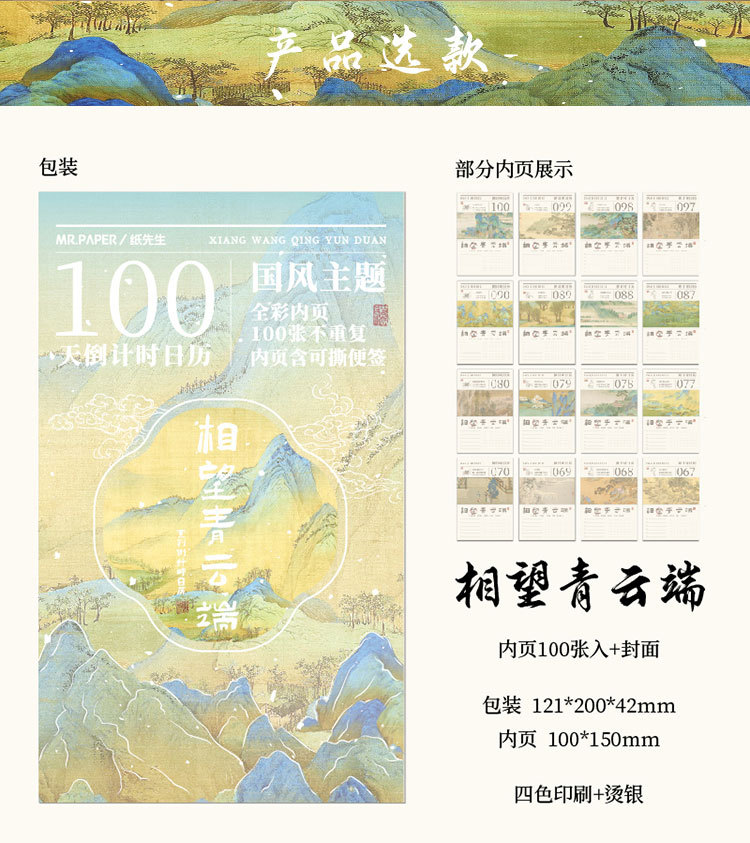 Sr. Paper 100 días de cuenta regresiva calendario personalizado impresor de negocios estampado pequeño lote personalizado calendario de alta gama