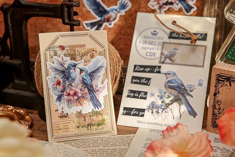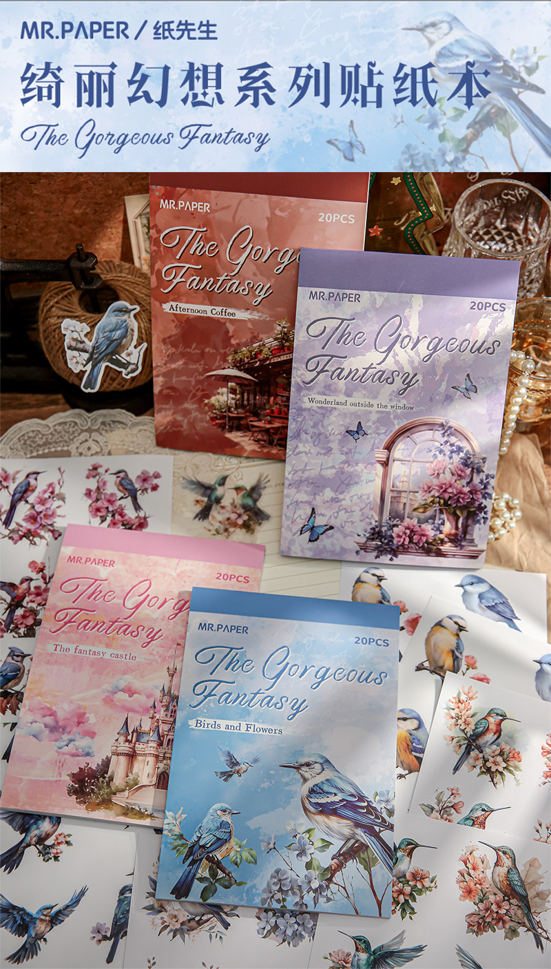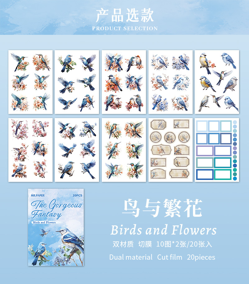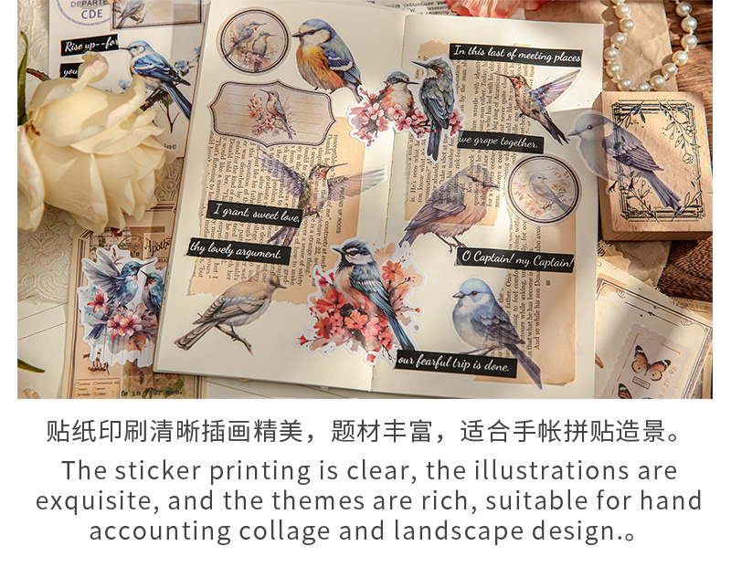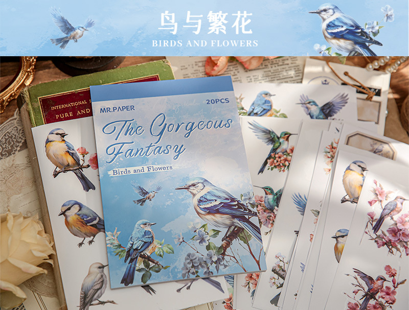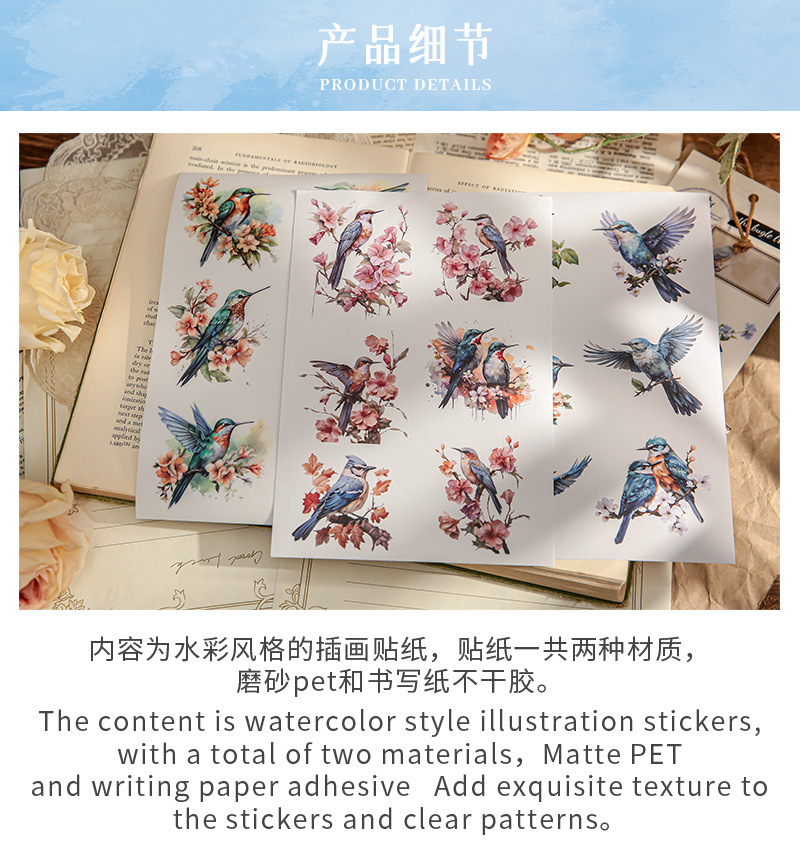 Mr. Paper mate PET calcomanías, hermosa serie de fantasía, ilustración de acuarela, flor y pájaro, tienda de mano, pegatinas decorativas de paisajismo
