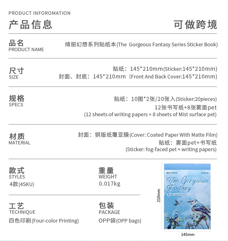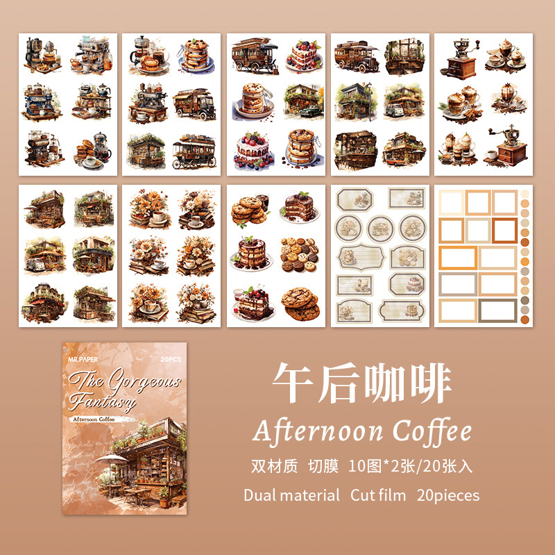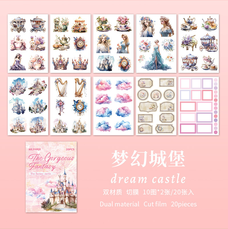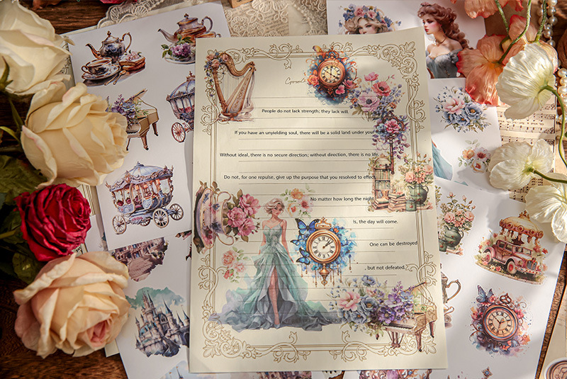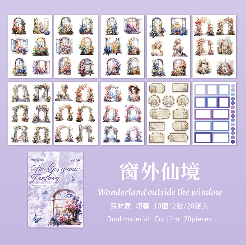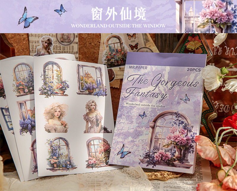 Mr. Paper mate PET calcomanías, hermosa serie de fantasía, ilustración de acuarela, flor y pájaro, tienda de mano, pegatinas decorativas de paisajismo