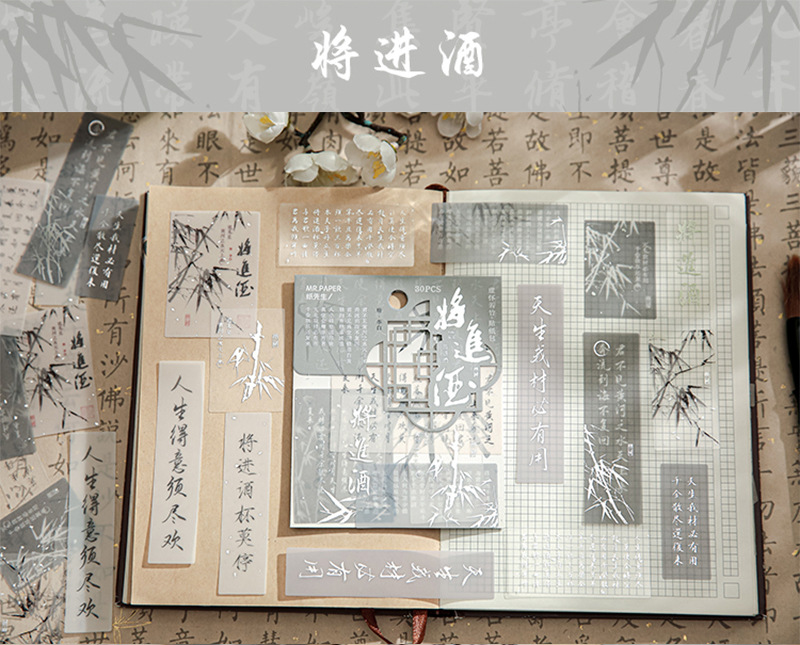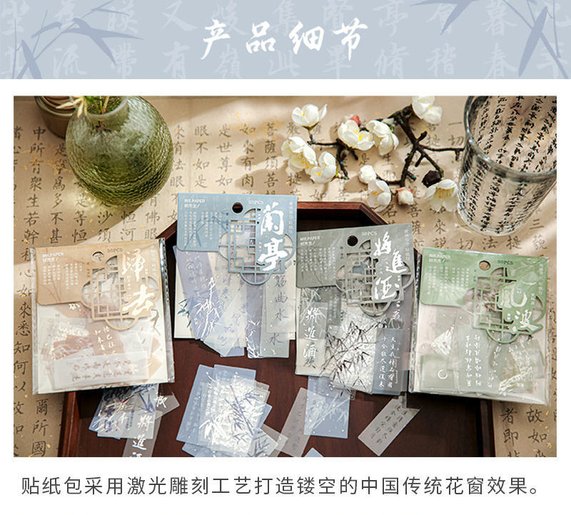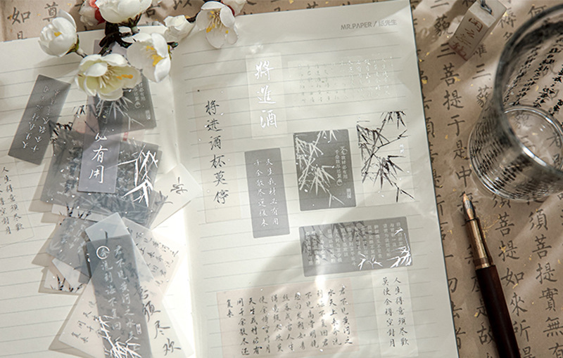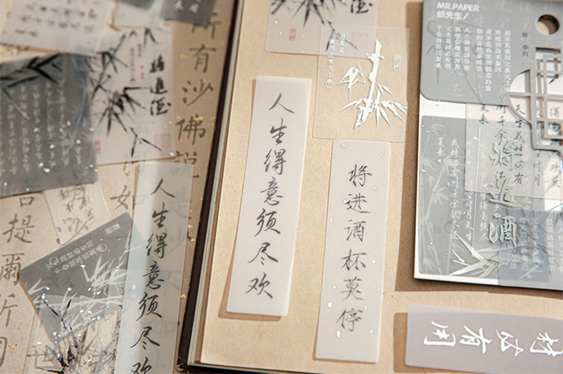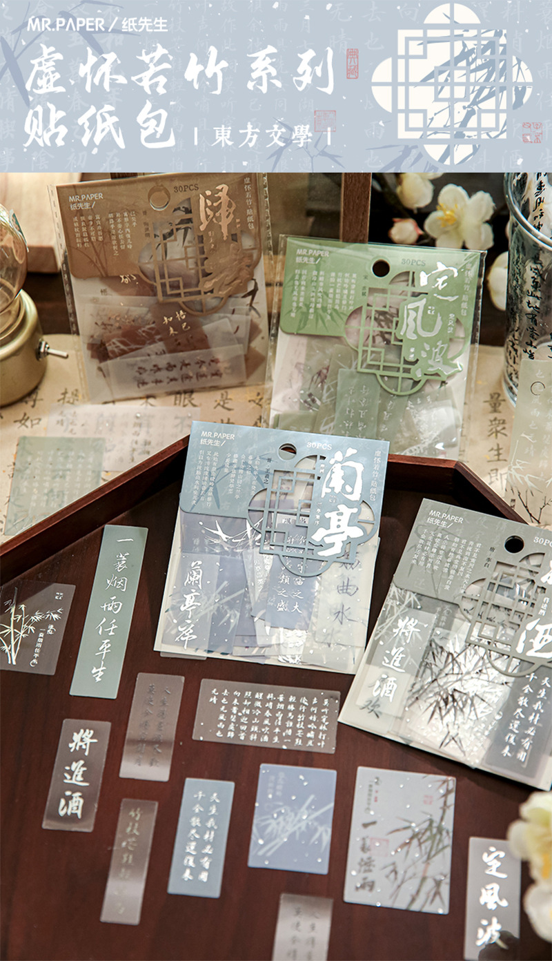 Sr. Papel PVC etiqueta bolsa de papel virtual Huai Ruozhu serie Nacional estilo Oriental literatura Material Diario decoración base etiqueta