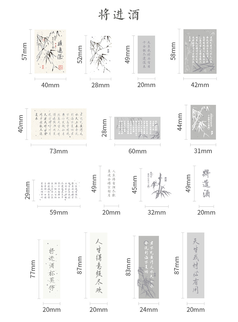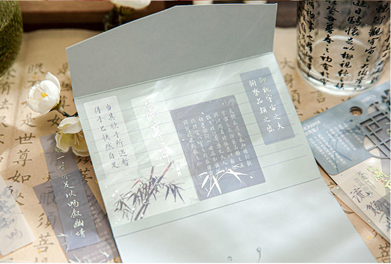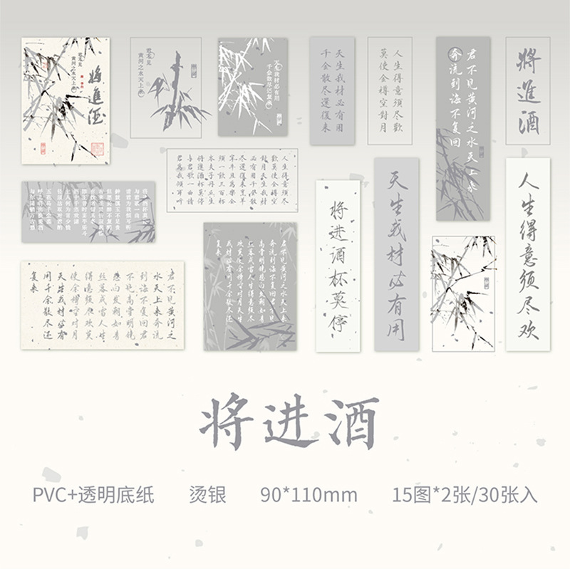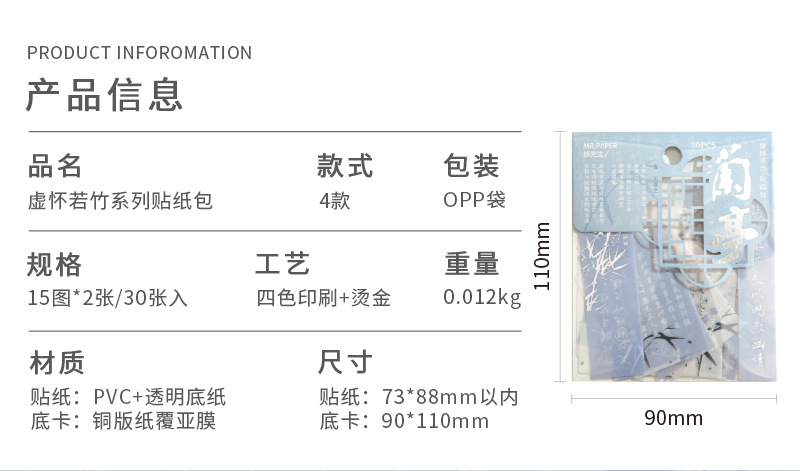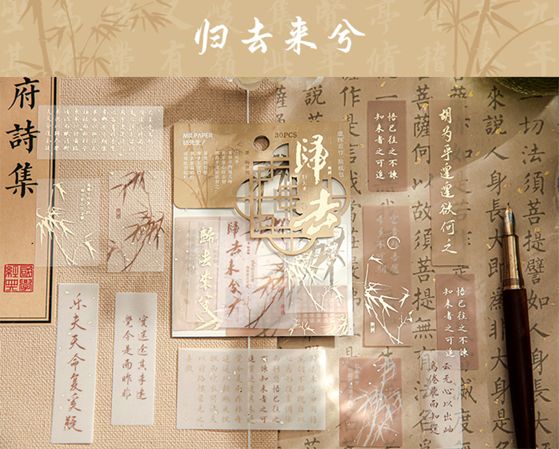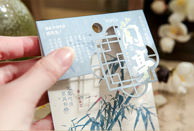 Sr. Papel PVC etiqueta bolsa de papel virtual Huai Ruozhu serie Nacional estilo Oriental literatura Material Diario decoración base etiqueta