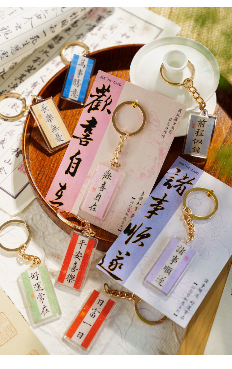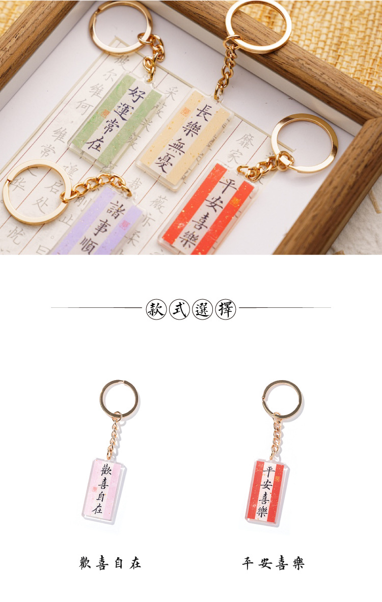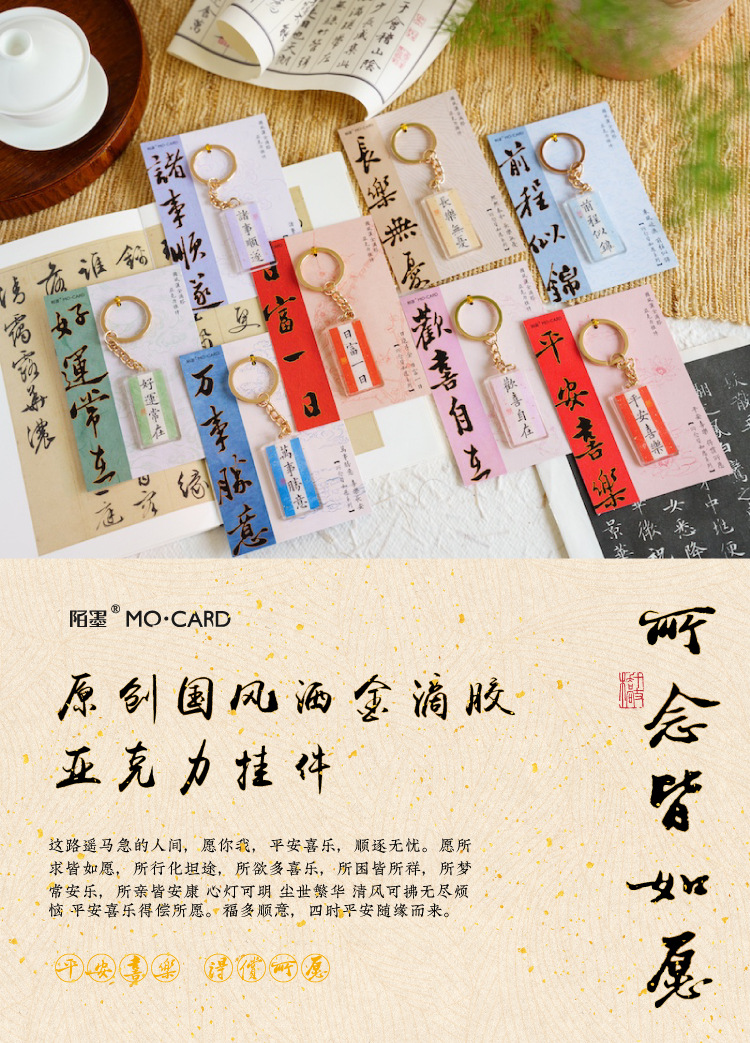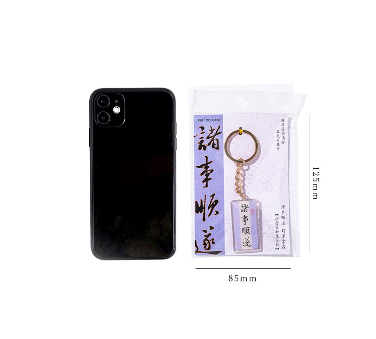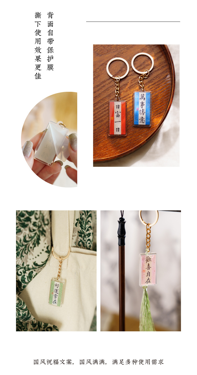 Mo colgante de combinación de acrílico todos los pensamientos son como la serie de deseos Estilo nacional oro-aspersión epoxi mochila llavero decorativo