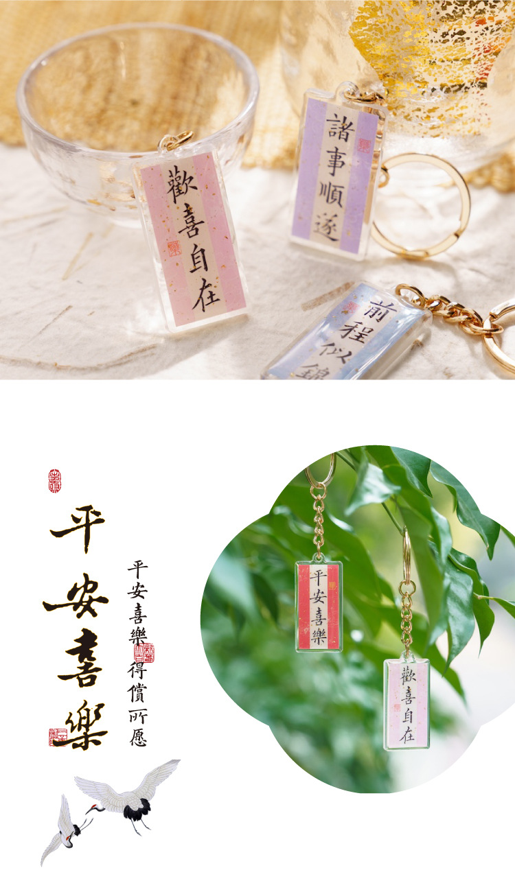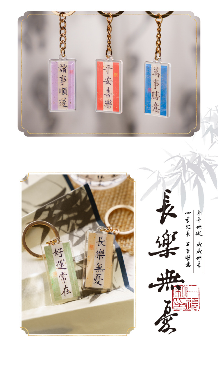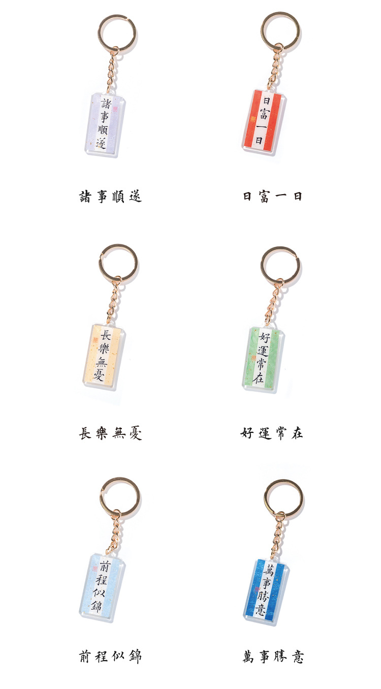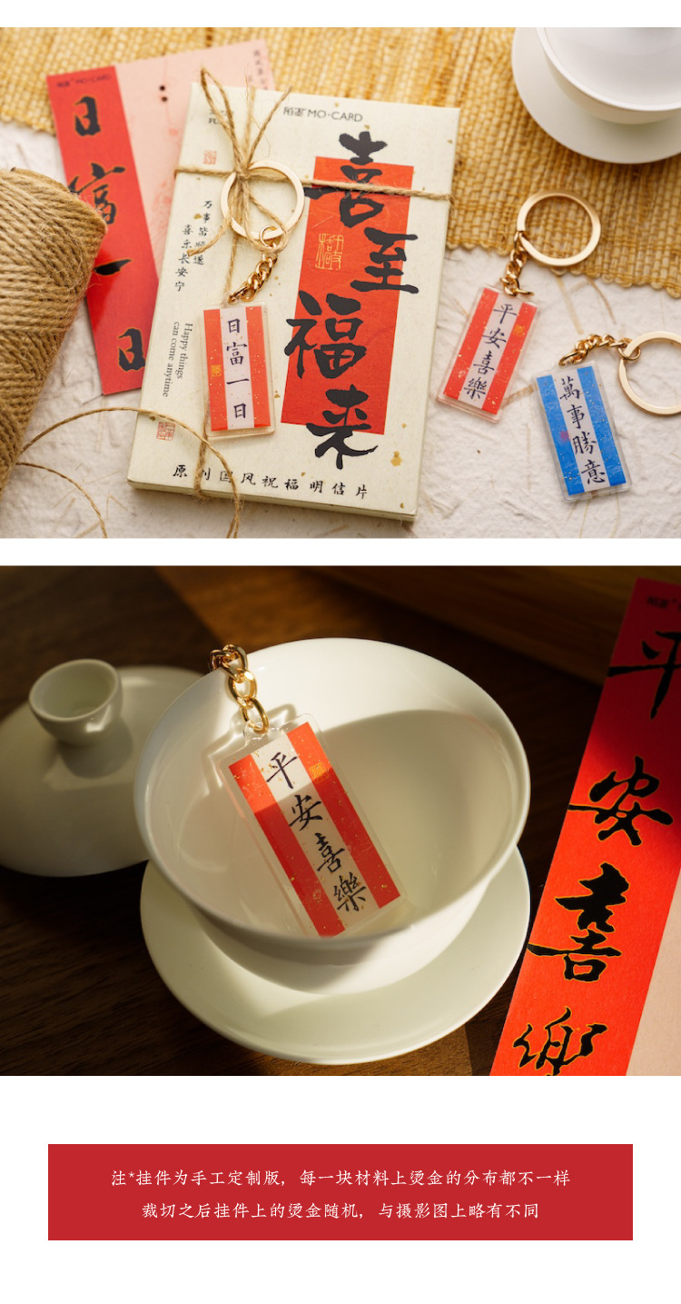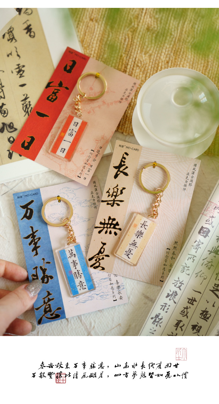 Mo colgante de combinación de acrílico todos los pensamientos son como la serie de deseos Estilo nacional oro-aspersión epoxi mochila llavero decorativo