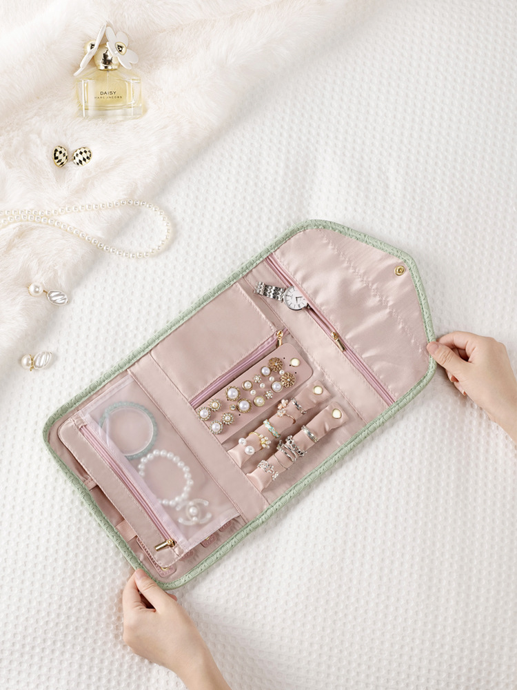 Nueva bolsa de almacenamiento de joyas para el hogar plegable de viaje portátil collar pendientes bolsa de almacenamiento bolsa de joyería de cuero de alto aspecto
