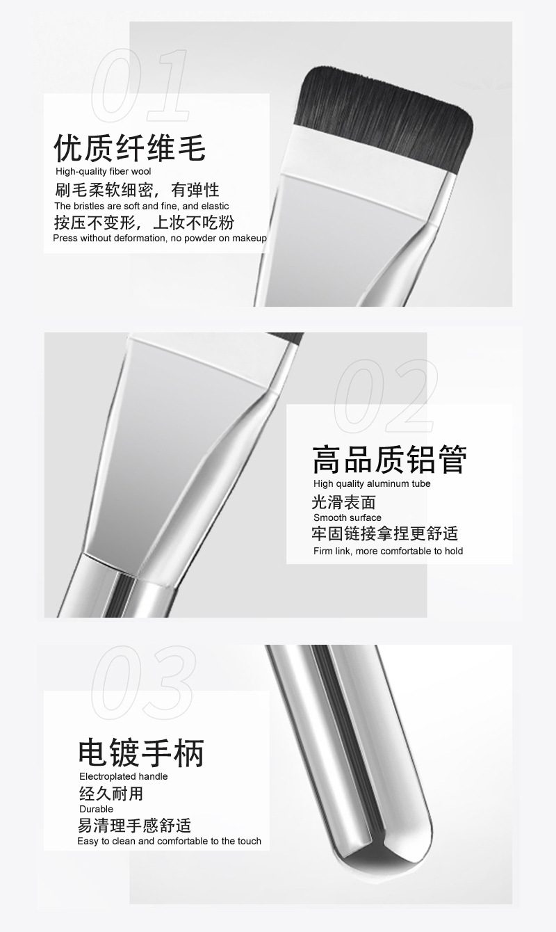 Venta caliente transfronteriza maquillaje base transparente cepillo de base de una palabra cabeza plana cepillo de máscara de pelo suave ultrafino mini cepillo de maquillaje de mango corto