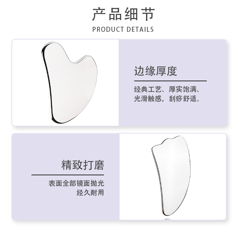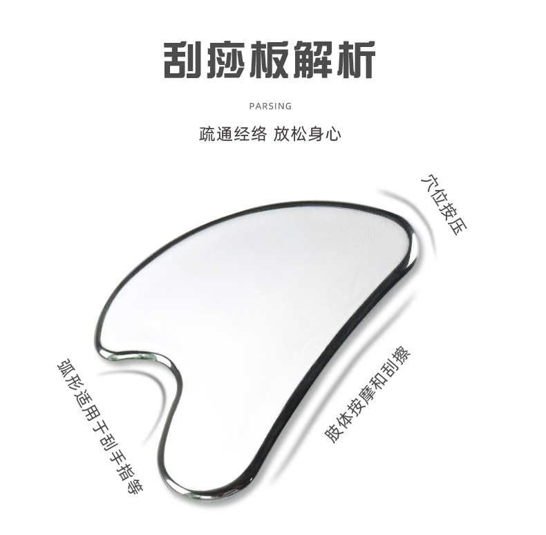 | Uso | 304 placa de raspado de acero inoxidable para masajear los meridianos y dragar los colaterales |