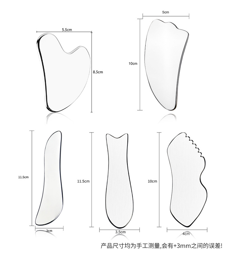 | Nombre del producto | Cuchillo de Fascia de masaje facial, placa de raspado de acero inoxidable |