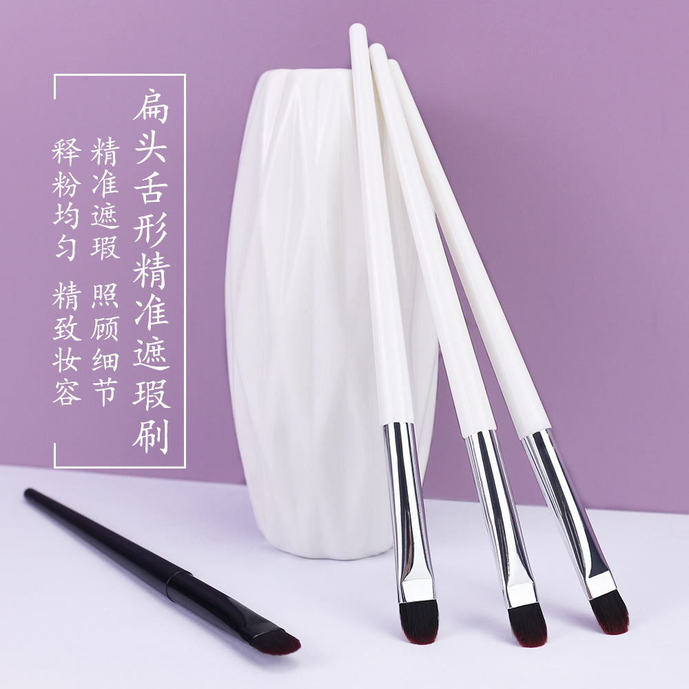 Cepillo de blanqueador en forma de lengua, cepillo de maquillaje suave de cabeza plana, cepillo de maquillaje de fondo sin marca, acné, marca de lágrimas, cepillo de círculo negro.