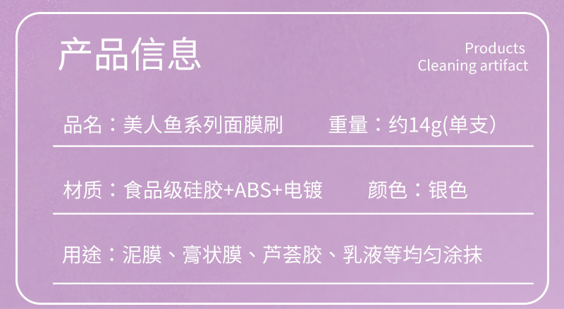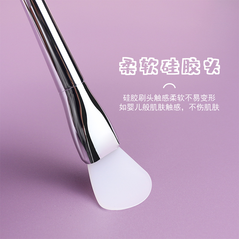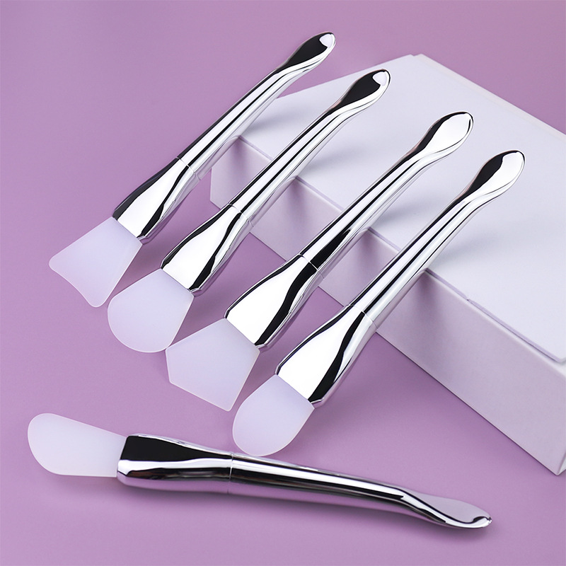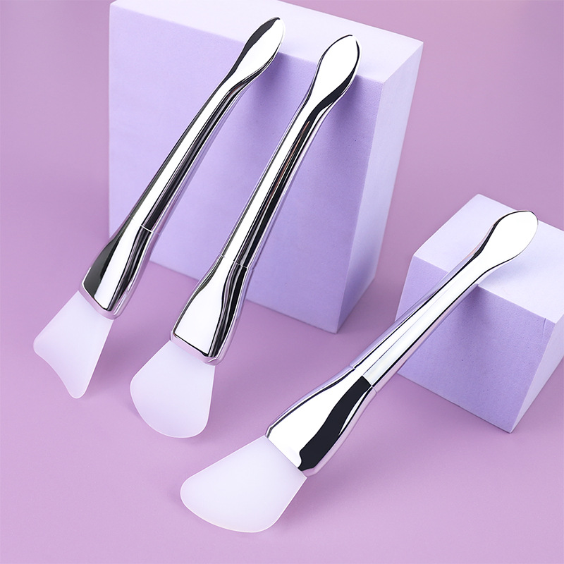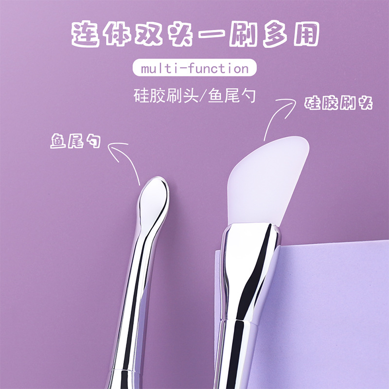 Cepillo de mascarilla de silicona de cola de pez plateado de doble cabezal, herramienta de mascarilla de arcilla de aplicación facial de doble propósito, cuchara de mascarilla de silicona de cabeza suave