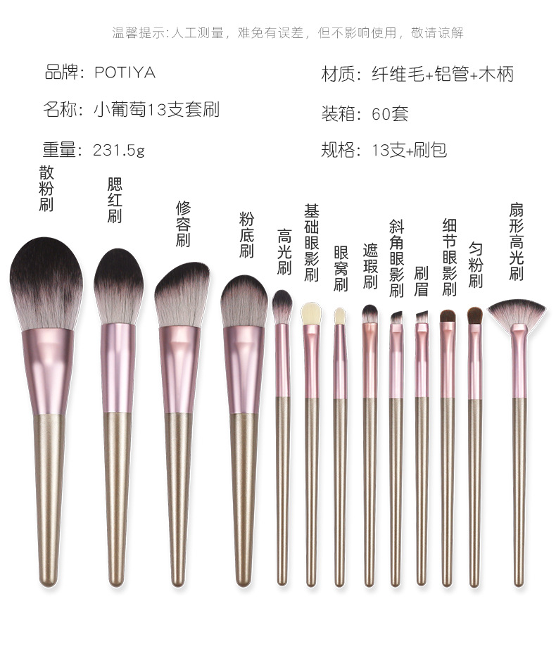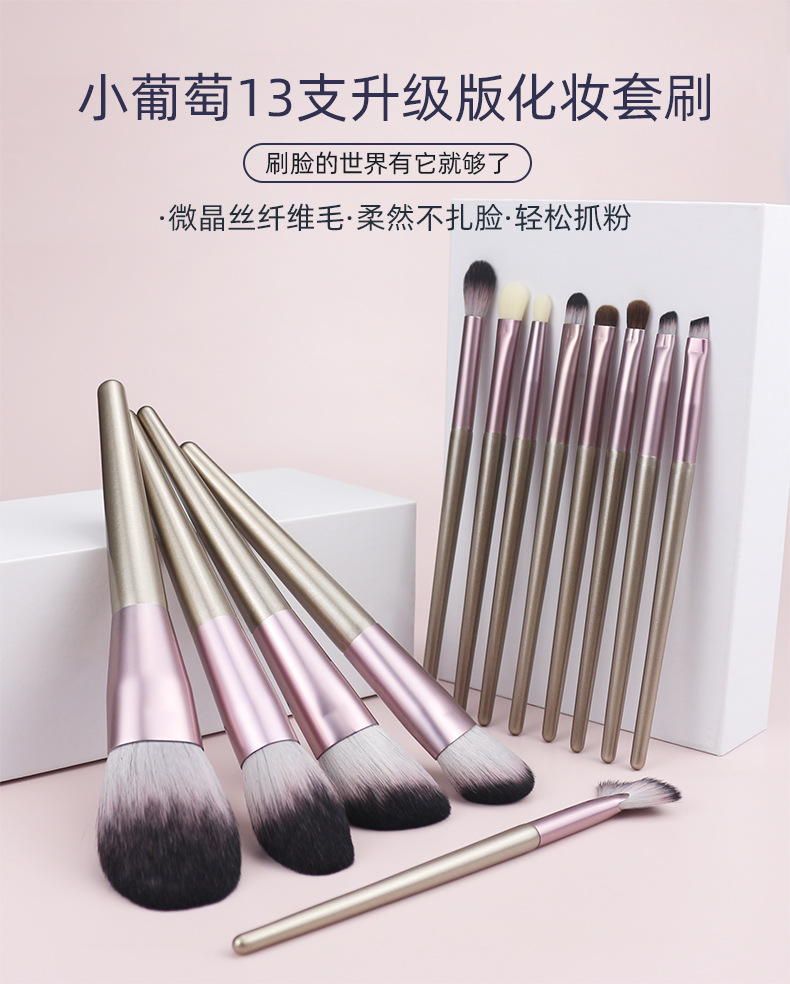 13 pudín pequeño conjunto de cepillo de maquillaje de madera suave mango de uva pequeño conjunto de cepillo de maquillaje conjunto completo de herramientas de maquillaje al por mayor